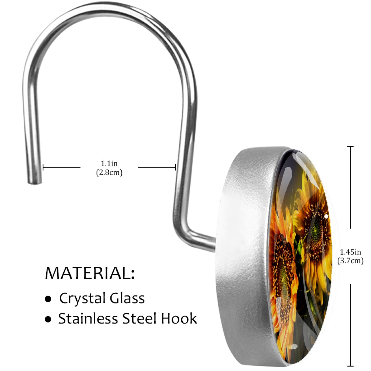 <p>This set of 12 durable hooks attach easily to any standard shower curtain, liner, and rod system to keep the curtain securely attached and evenly draped. </p><p> </p><p>- Impressively durable with sturdiness to hold up any shower curtain.</p><p> </p><p>- <b>Easy to install</b>: simply thread through existing holes and hang over shower rod.</p><p> </p><p>- Vibrant print on one side which adds style to your shower rod.</p><p> </p><p>- Astoundingly gorgeous design to <b>Decorate your bathroom</b>.</p><p> </p><p><b>Package Including</b></p><p>12*Shower Curtain Hooks</p><p> </p><p><b>Notes</b></p><p>1. Due to the different monitor and light effect, the actual color of the item might be slightly different from the color showed on the pictures. Thank you!</p><p>2. Please allow 2-3cm measuring deviation due to manual measurement.</p>