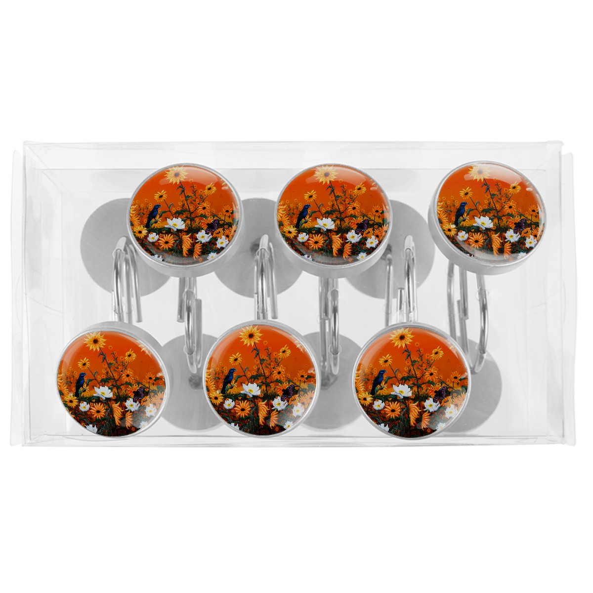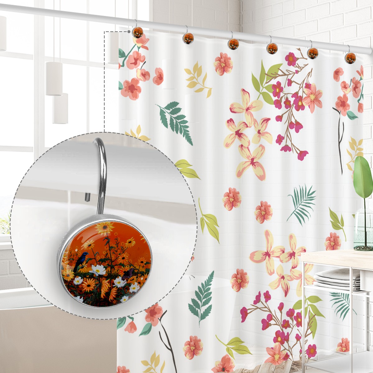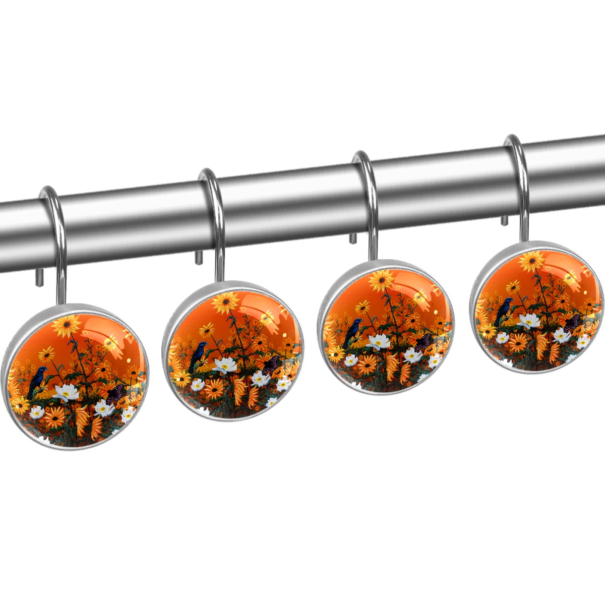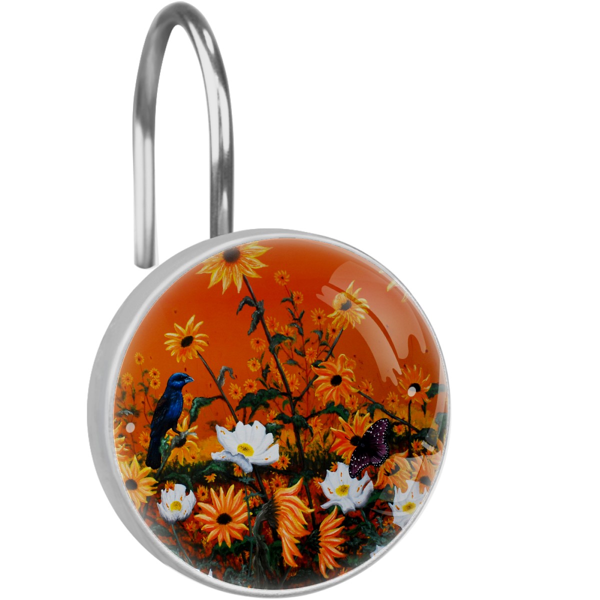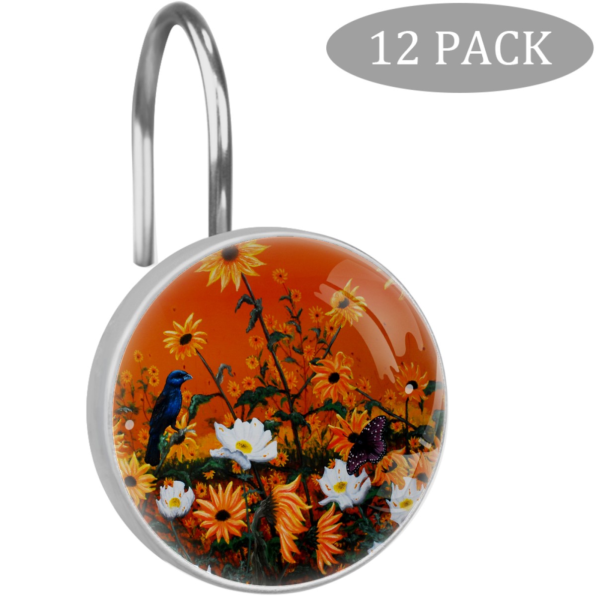 Decorative Shower Curtain Hooks Set of 12 Sunflowers Bird Butterfly Resin Shower Hooks for Curtain Shower Rings for Bathroom Home Hotel Shower Rods