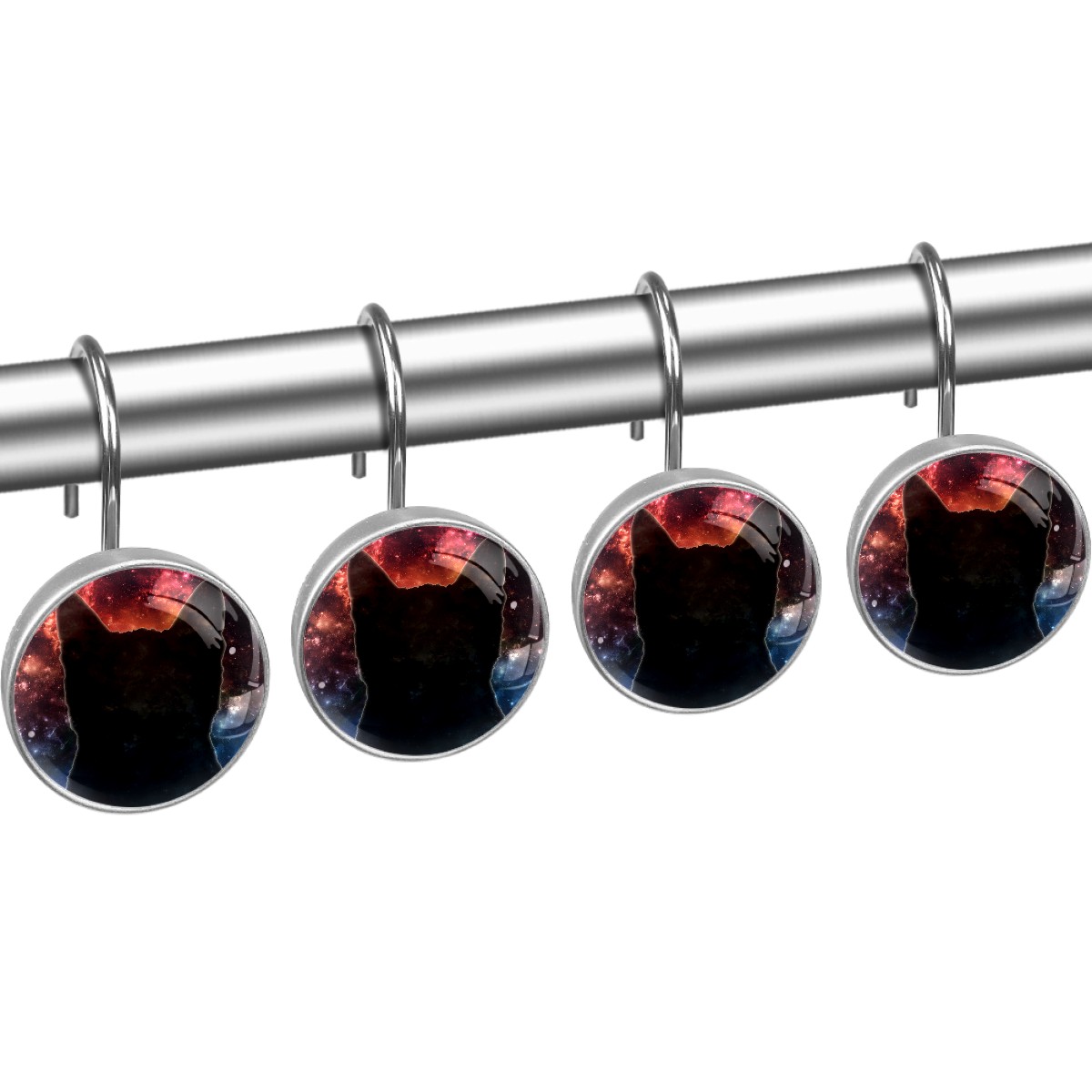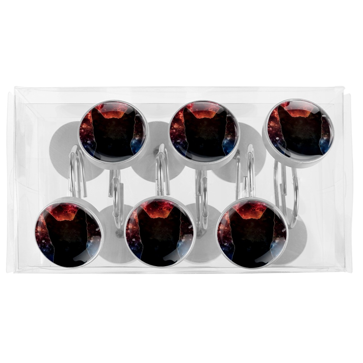 Decorative Shower Curtain Hooks Set of 12 Starry Cat Silhouette Resin Shower Hooks for Curtain Shower Rings for Bathroom Home Hotel Shower Rods