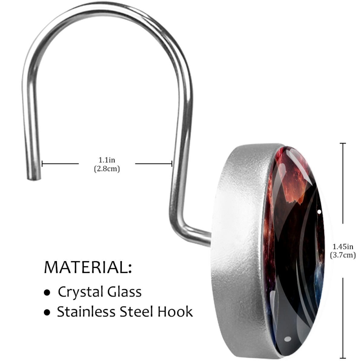 <p>This set of 12 durable hooks attach easily to any standard shower curtain, liner, and rod system to keep the curtain securely attached and evenly draped. </p><p>&nbsp;</p><p>- Impressively durable with sturdiness to hold up any shower curtain.</p><p>&nbsp;</p><p>- <b>Easy to install</b>: simply thread through existing holes and hang over shower rod.</p><p>&nbsp;</p><p>- Vibrant print on one side which adds style to your shower rod.</p><p>&nbsp;</p><p>- Astoundingly gorgeous design to <b>Decorate your bathroom</b>.</p><p>&nbsp;</p><p><b>Package Including</b></p><p>12*Shower Curtain Hooks</p><p>&nbsp;</p><p><b>Notes</b></p><p>1. Due to the different monitor and light effect, the actual color of the item might be slightly different from the color showed on the pictures. Thank you!</p><p>2. Please allow 2-3cm measuring deviation due to manual measurement.</p>