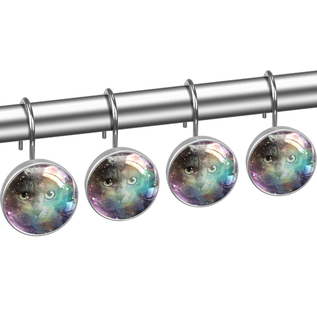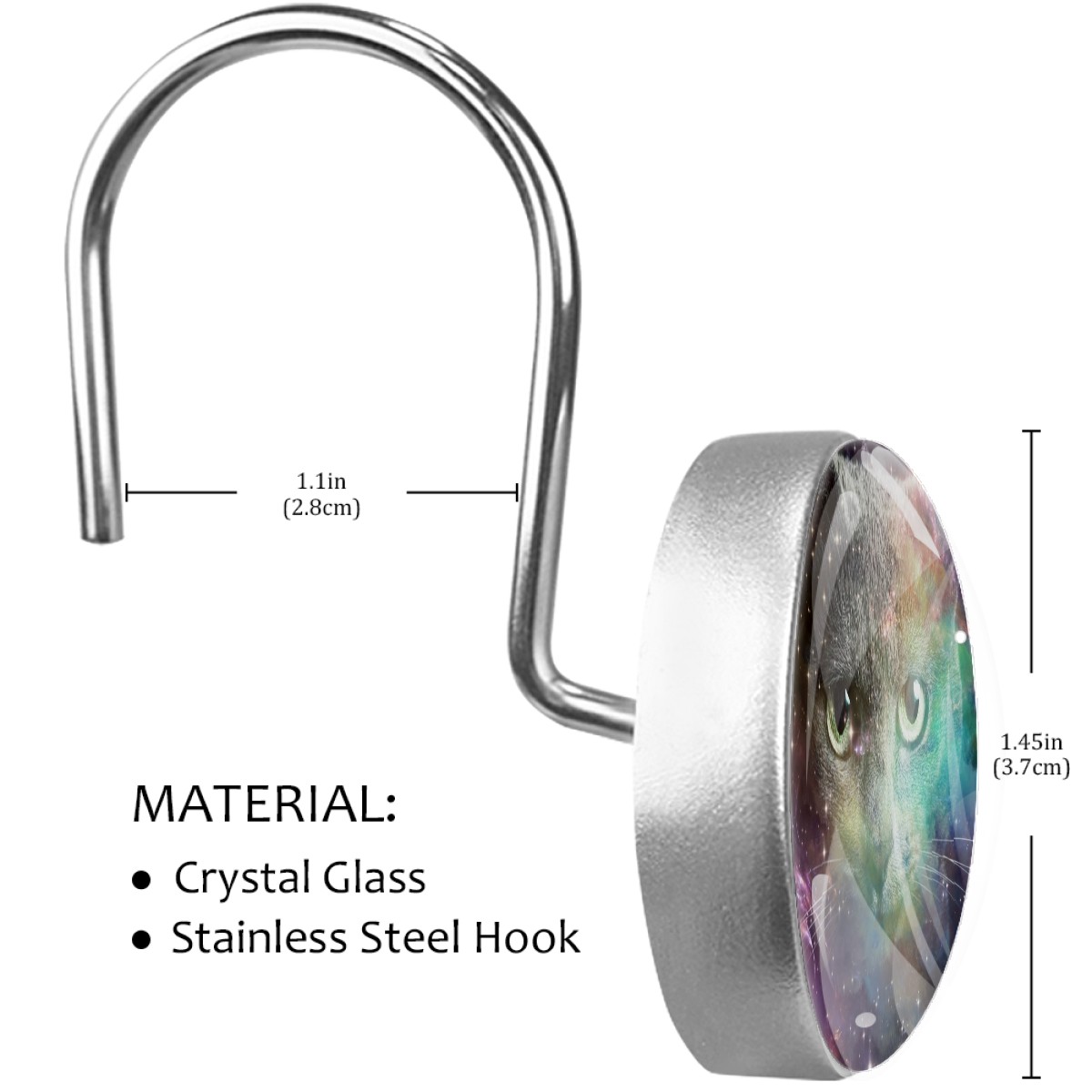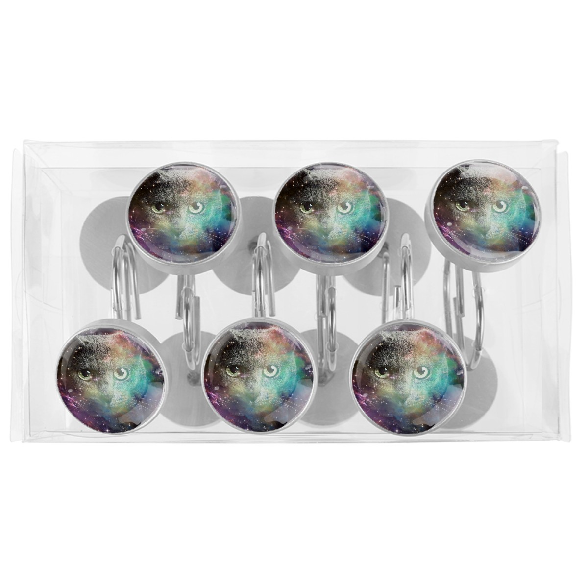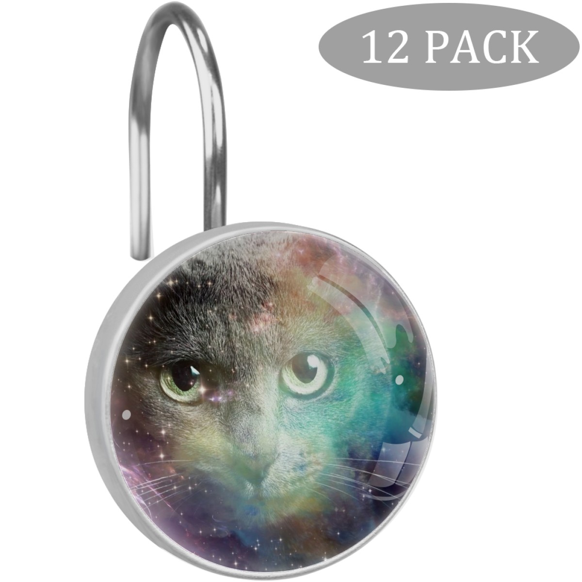 Decorative Shower Curtain Hooks Set of 12 Starry Cat (2) Resin Shower Hooks for Curtain Shower Rings for Bathroom Home Hotel Shower Rods
