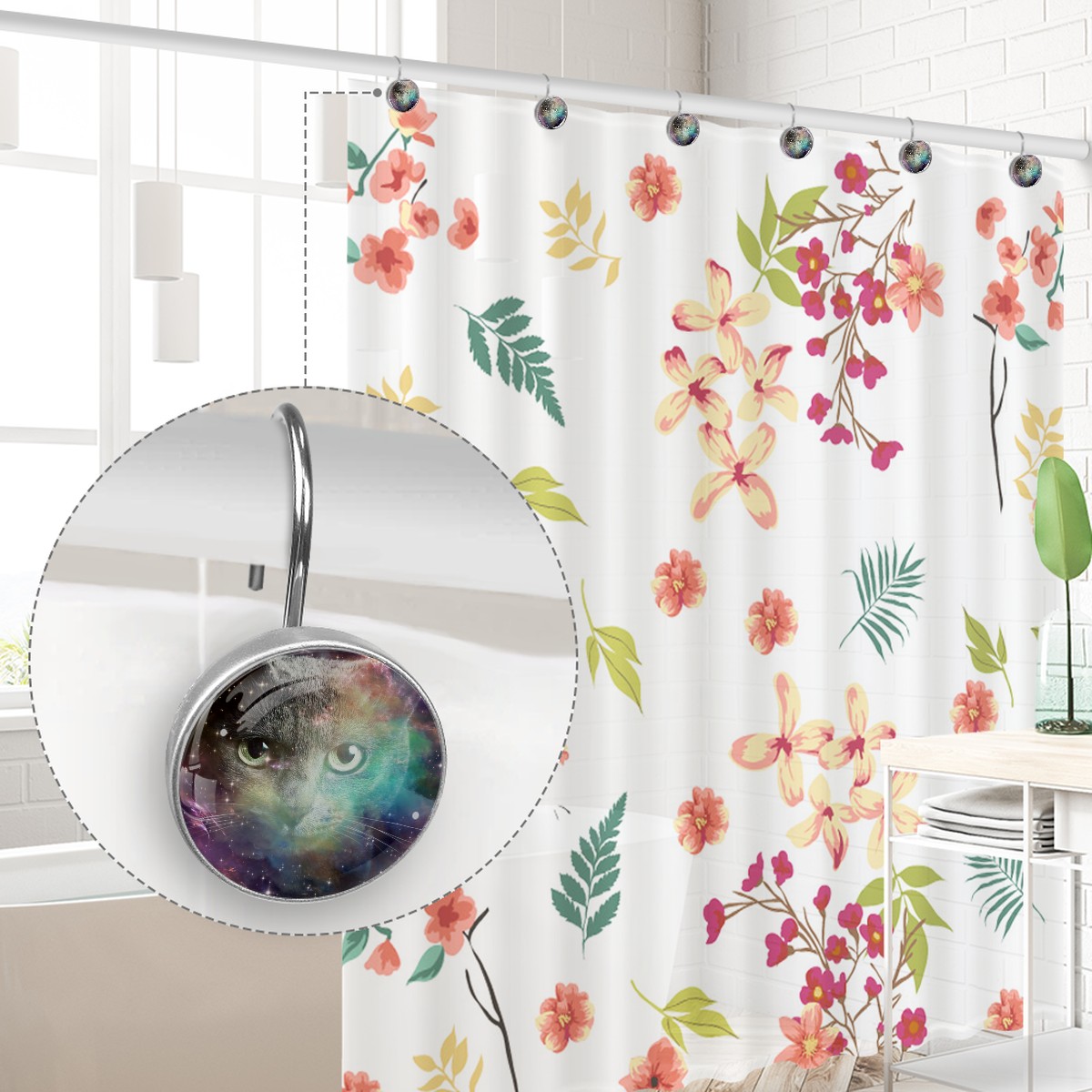 <p>This set of 12 durable hooks attach easily to any standard shower curtain, liner, and rod system to keep the curtain securely attached and evenly draped. </p><p>&nbsp;</p><p>- Impressively durable with sturdiness to hold up any shower curtain.</p><p>&nbsp;</p><p>- <b>Easy to install</b>: simply thread through existing holes and hang over shower rod.</p><p>&nbsp;</p><p>- Vibrant print on one side which adds style to your shower rod.</p><p>&nbsp;</p><p>- Astoundingly gorgeous design to <b>Decorate your bathroom</b>.</p><p>&nbsp;</p><p><b>Package Including</b></p><p>12*Shower Curtain Hooks</p><p>&nbsp;</p><p><b>Notes</b></p><p>1. Due to the different monitor and light effect, the actual color of the item might be slightly different from the color showed on the pictures. Thank you!</p><p>2. Please allow 2-3cm measuring deviation due to manual measurement.</p>