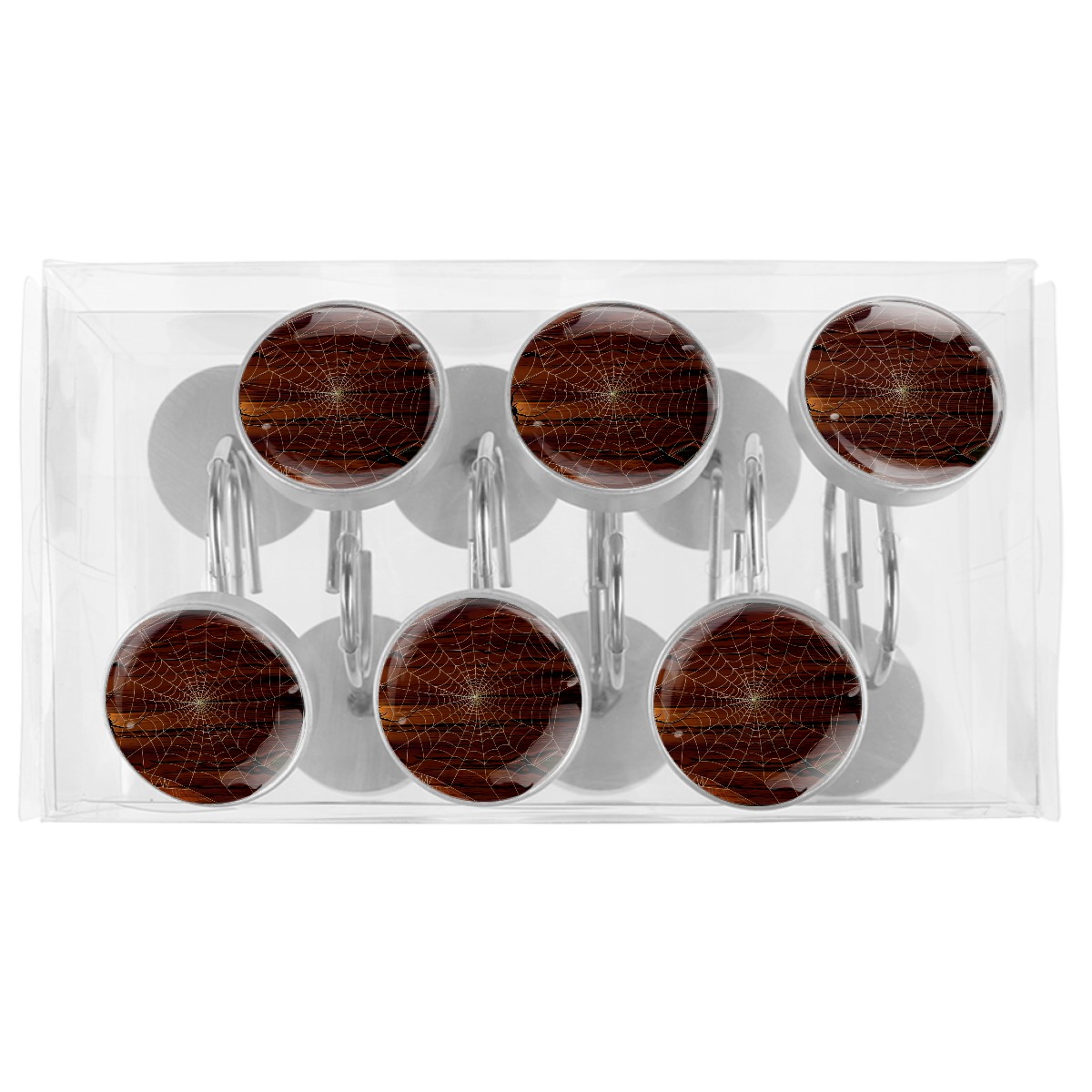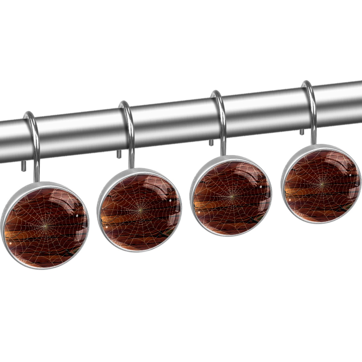 Decorative Shower Curtain Hooks Set of 12 Spider Silk Spider Web Resin Shower Hooks for Curtain Shower Rings for Bathroom Home Hotel Shower Rods