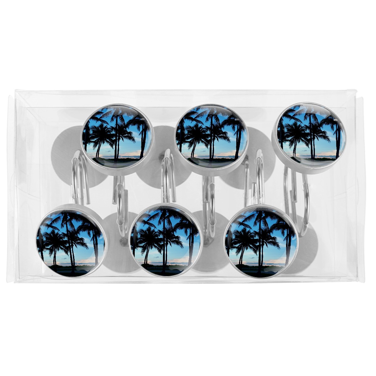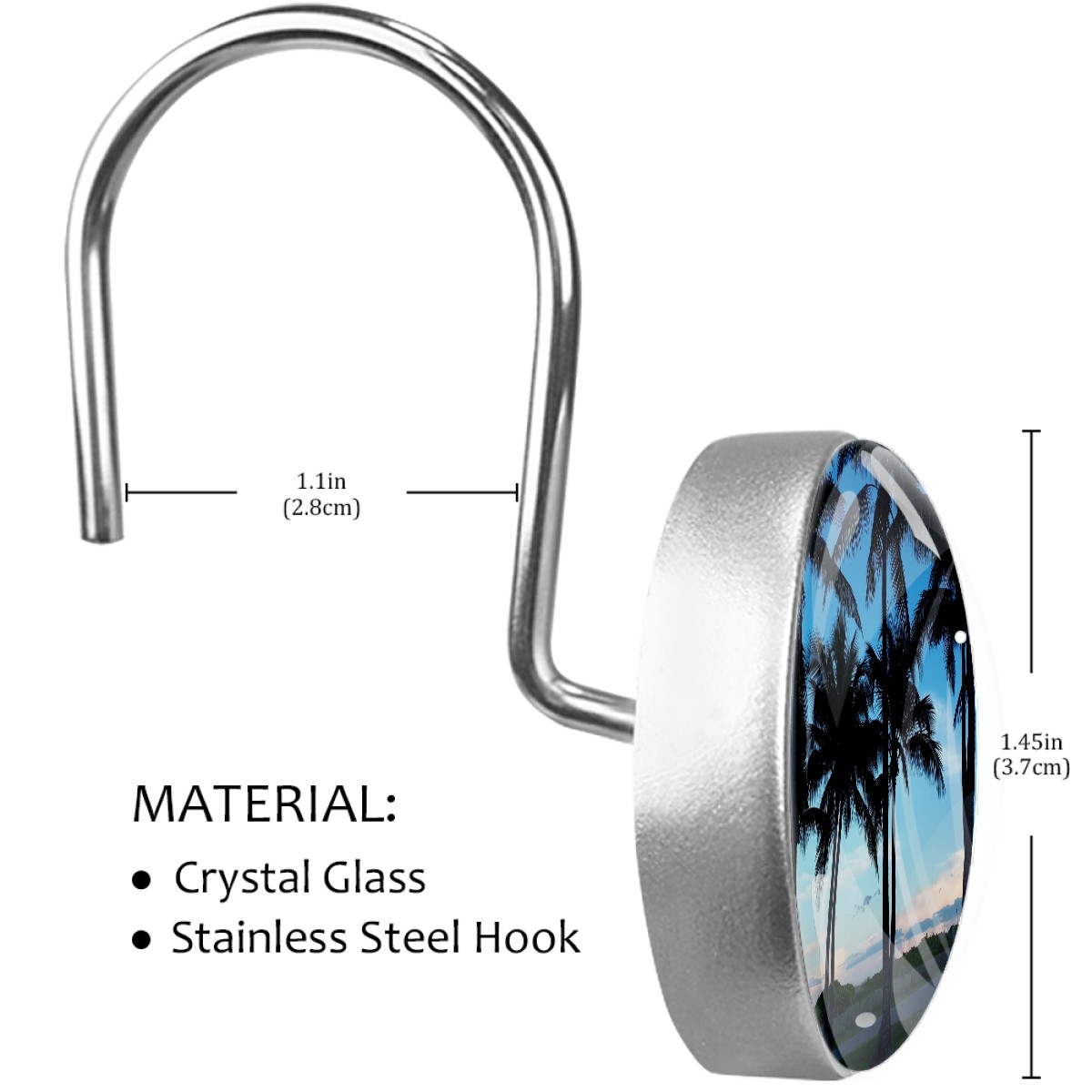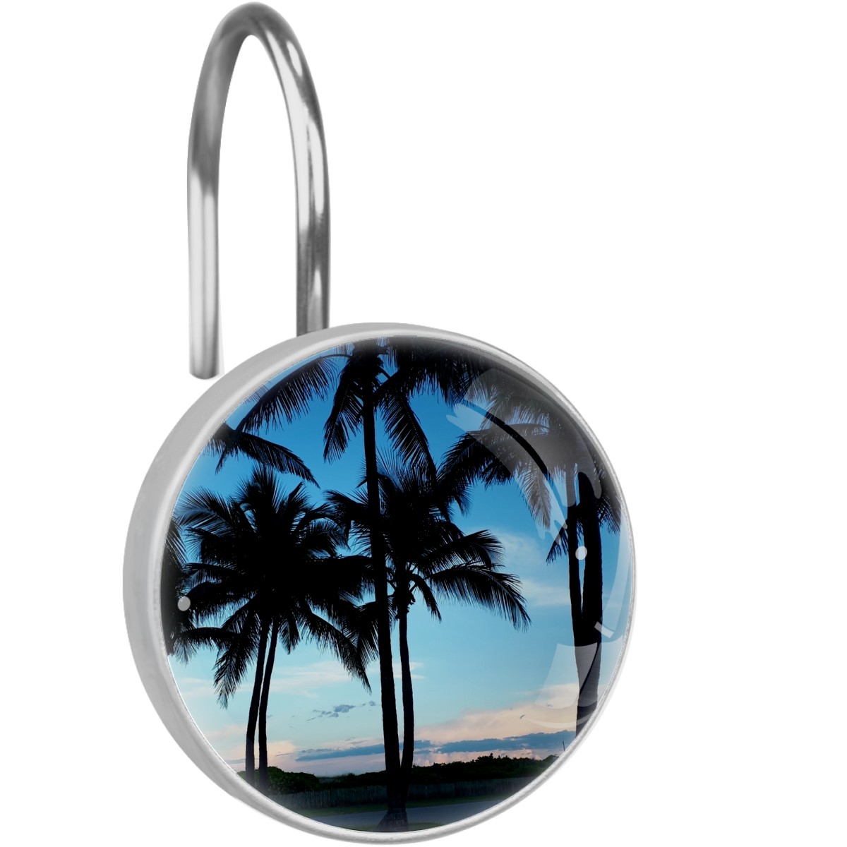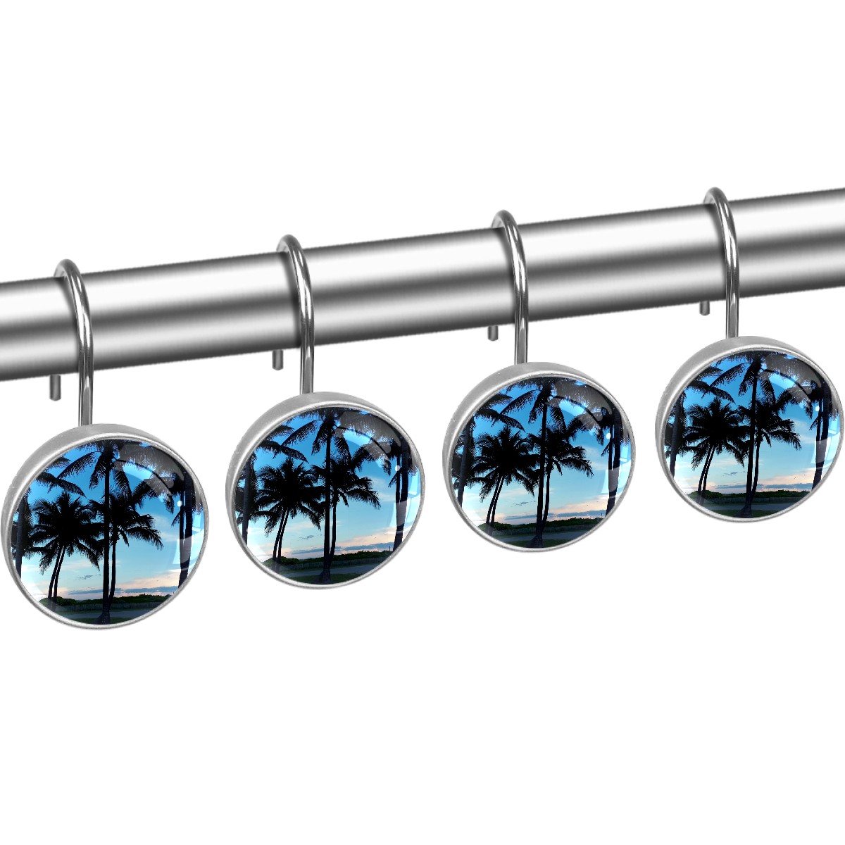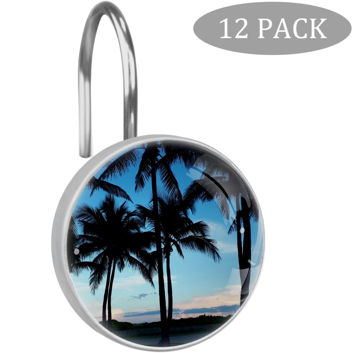 Decorative Shower Curtain Hooks Set of 12 Sea Palm Tree Sky Cloud Resin Shower Hooks for Curtain Shower Rings for Bathroom Home Hotel Shower Rods
