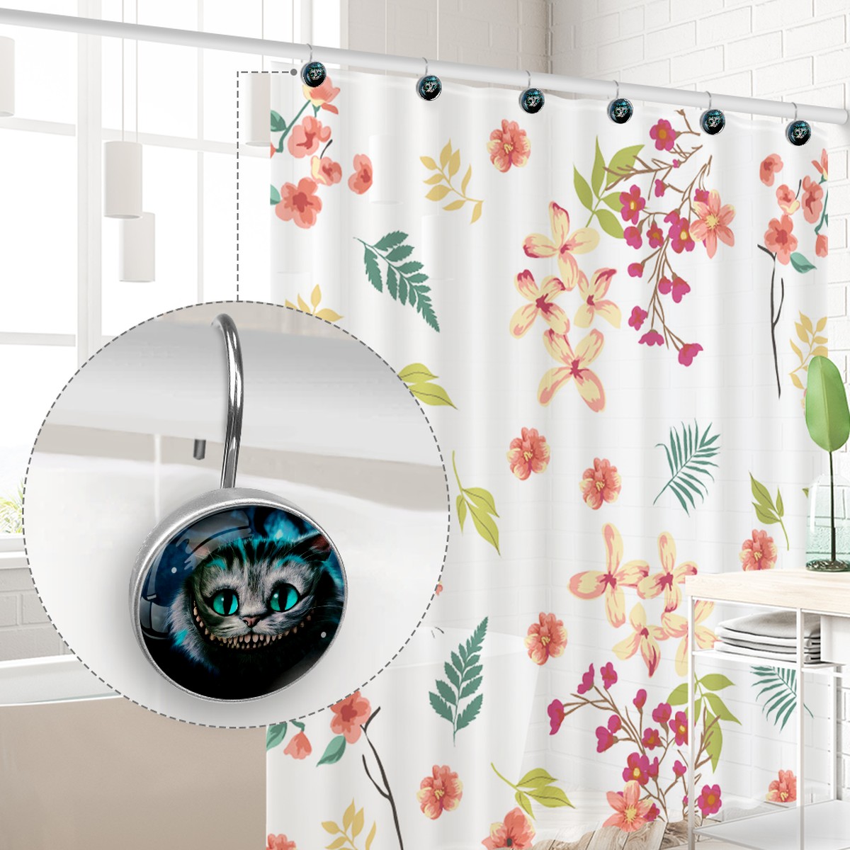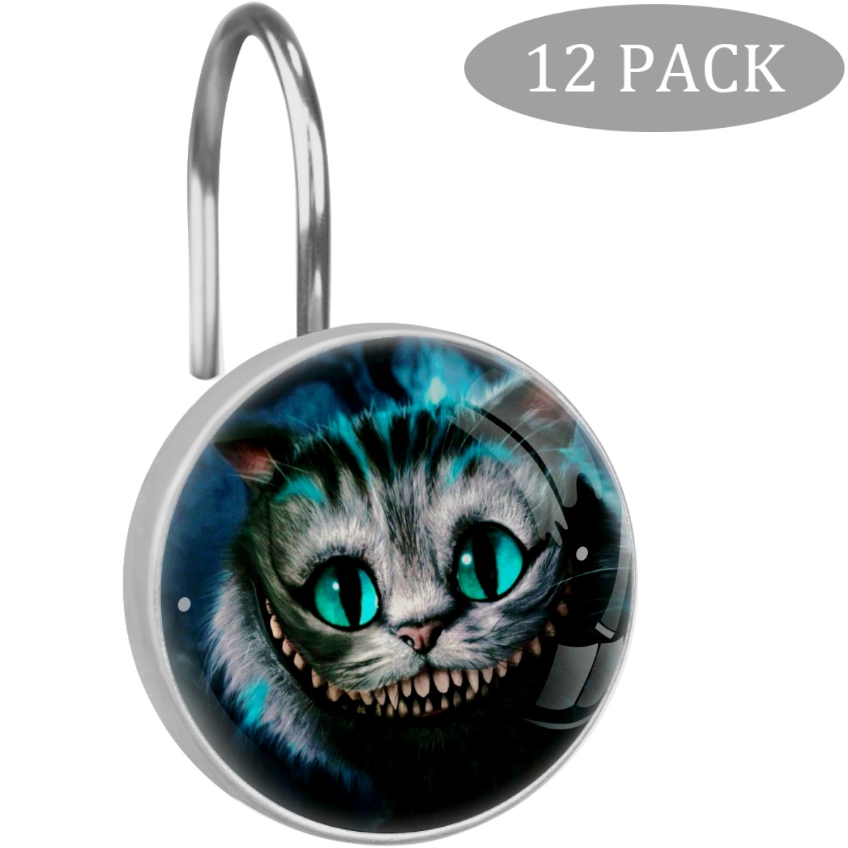 Decorative Shower Curtain Hooks Set of 12 Shark Teeth Cat Resin Shower Hooks for Curtain Shower Rings for Bathroom Home Hotel Shower Rods