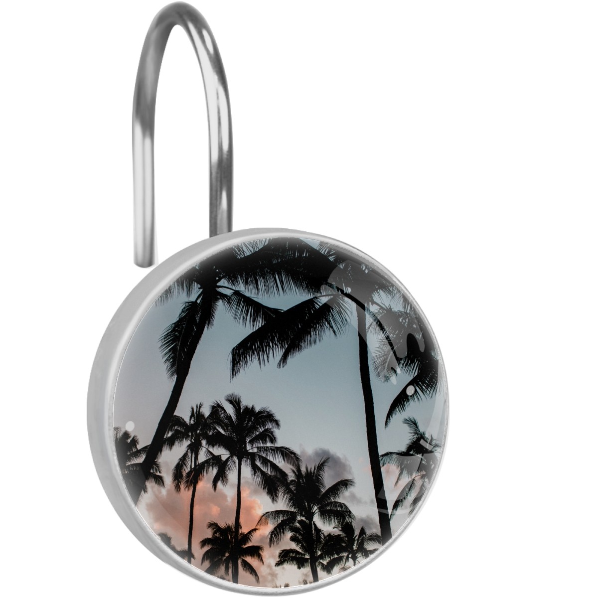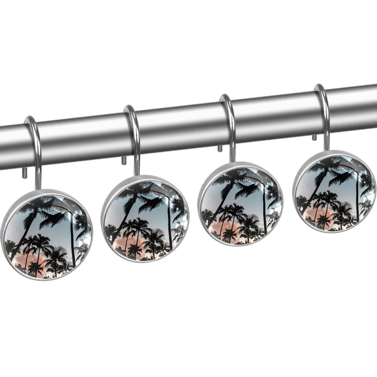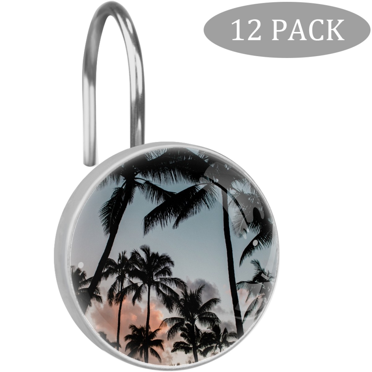 Decorative Shower Curtain Hooks Set of 12 Palm Trees Resin Shower Hooks for Curtain Shower Rings for Bathroom Home Hotel Shower Rods
