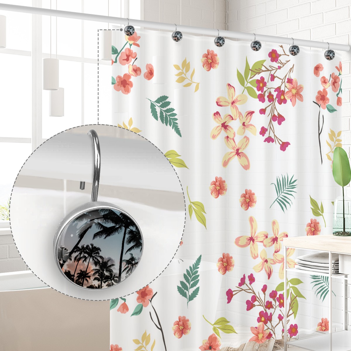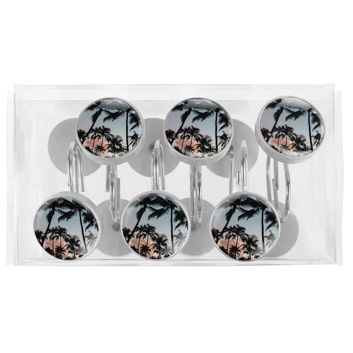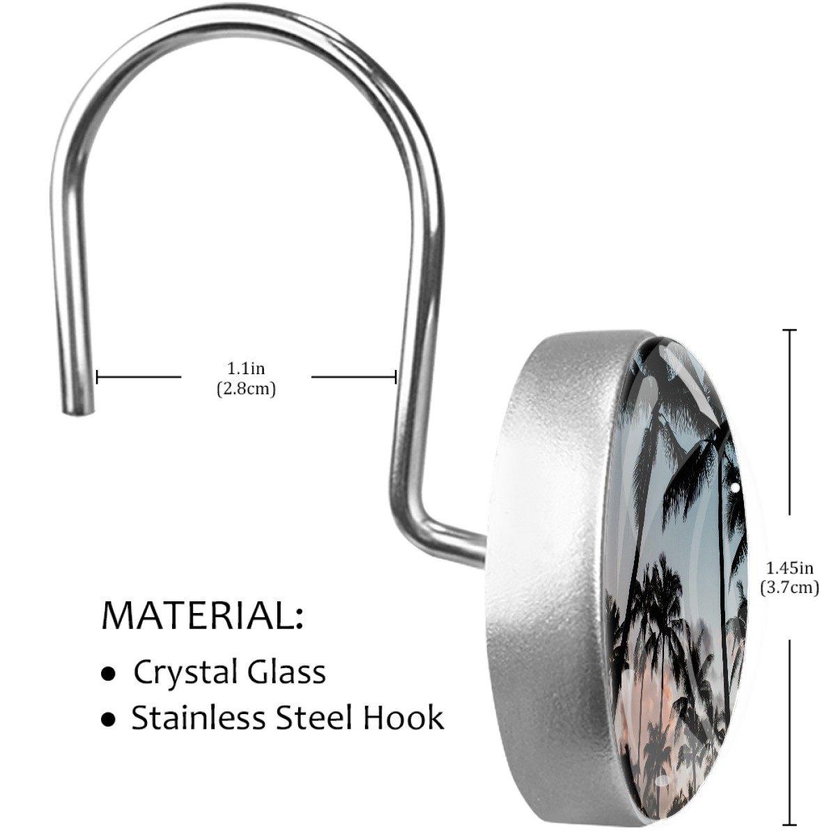 Decorative Shower Curtain Hooks Set of 12 Palm Trees Resin Shower Hooks for Curtain Shower Rings for Bathroom Home Hotel Shower Rods