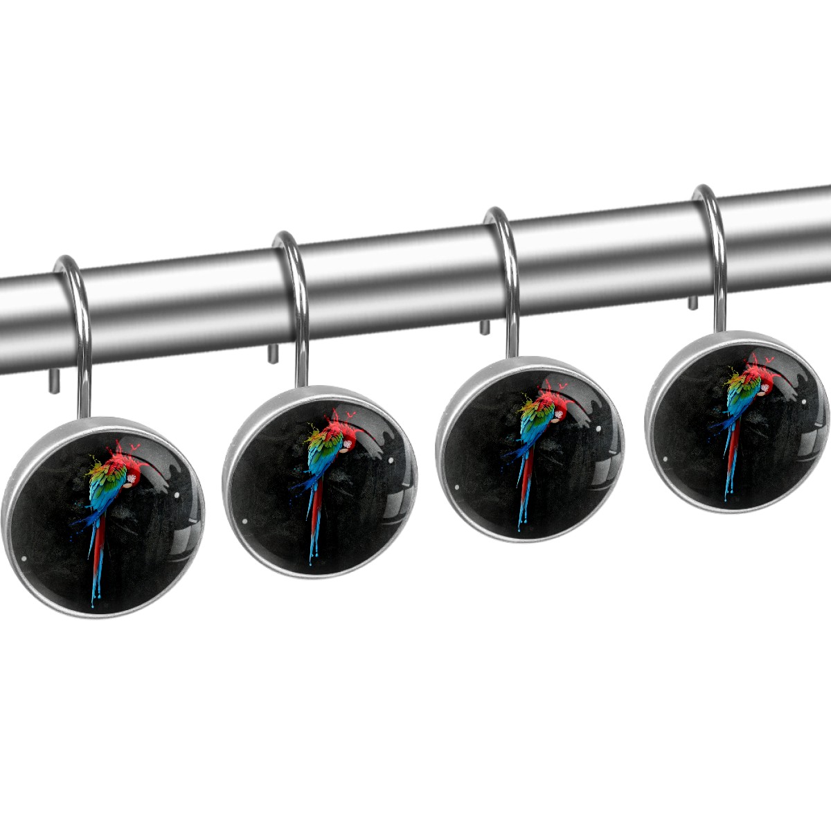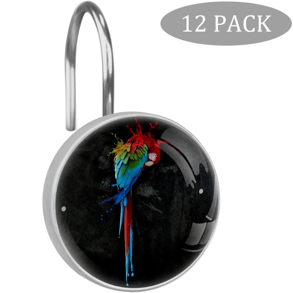Decorative Shower Curtain Hooks Set of 12 Parrot Resin Shower Hooks for Curtain Shower Rings for Bathroom Home Hotel Shower Rods