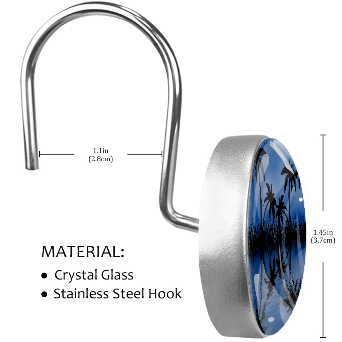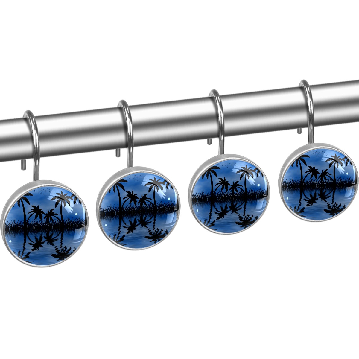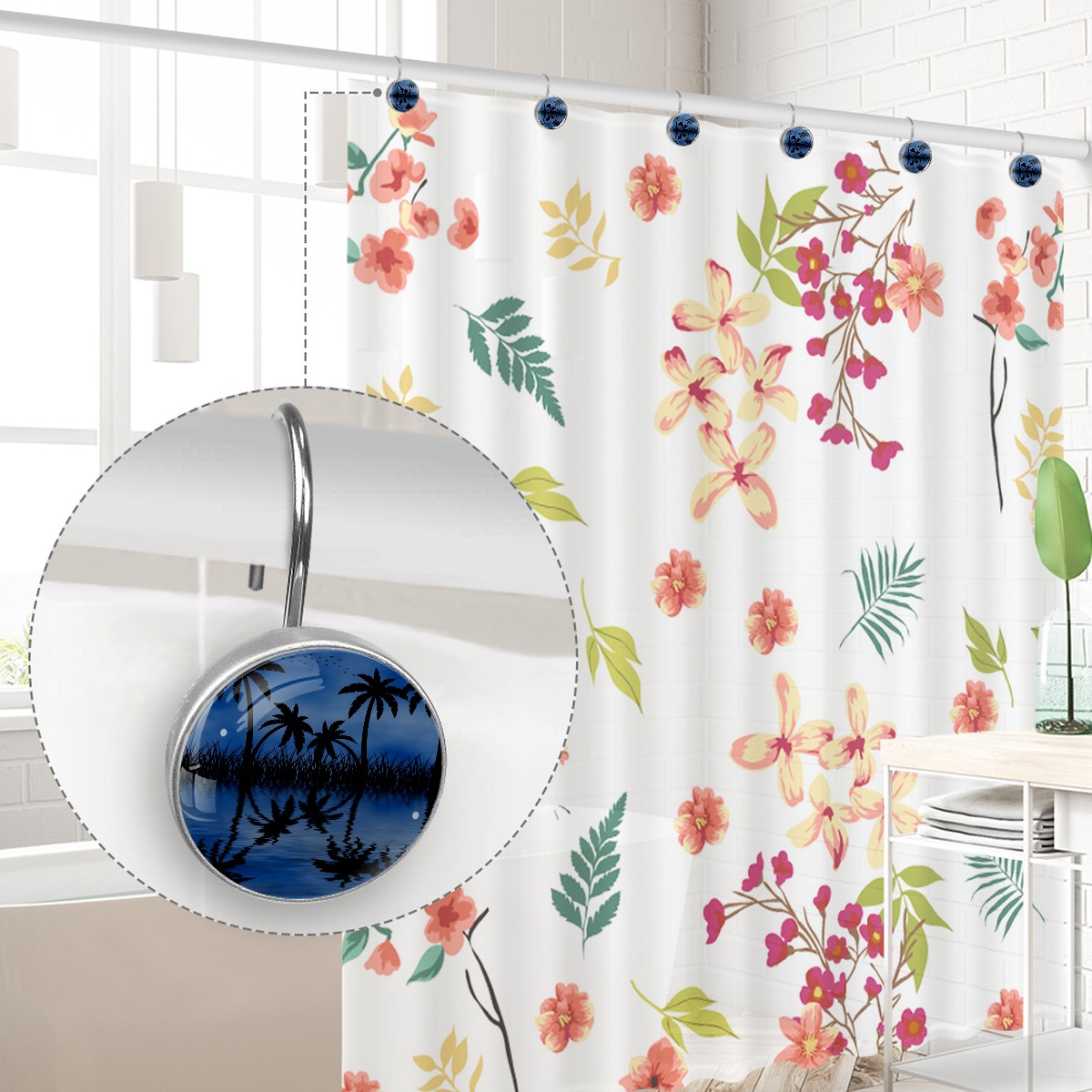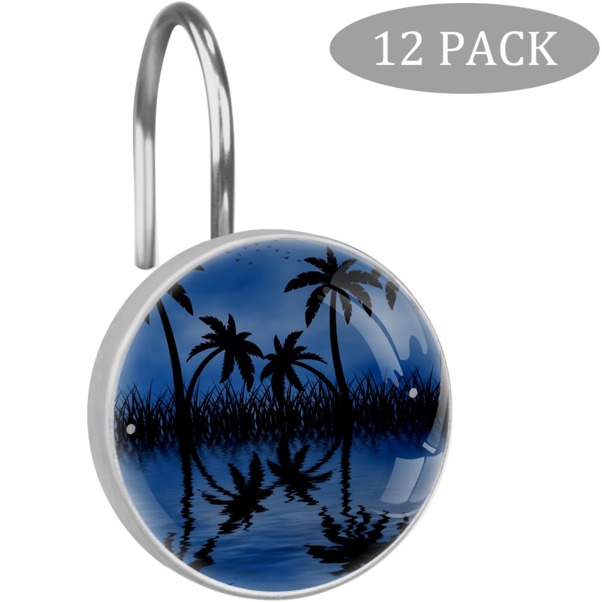 Decorative Shower Curtain Hooks Set of 12 Palm Tree Resin Shower Hooks for Curtain Shower Rings for Bathroom Home Hotel Shower Rods