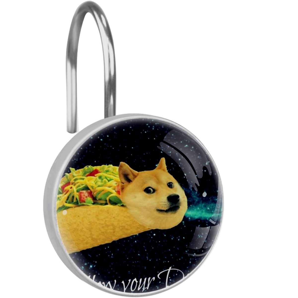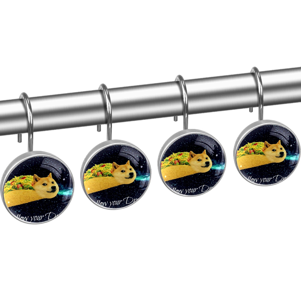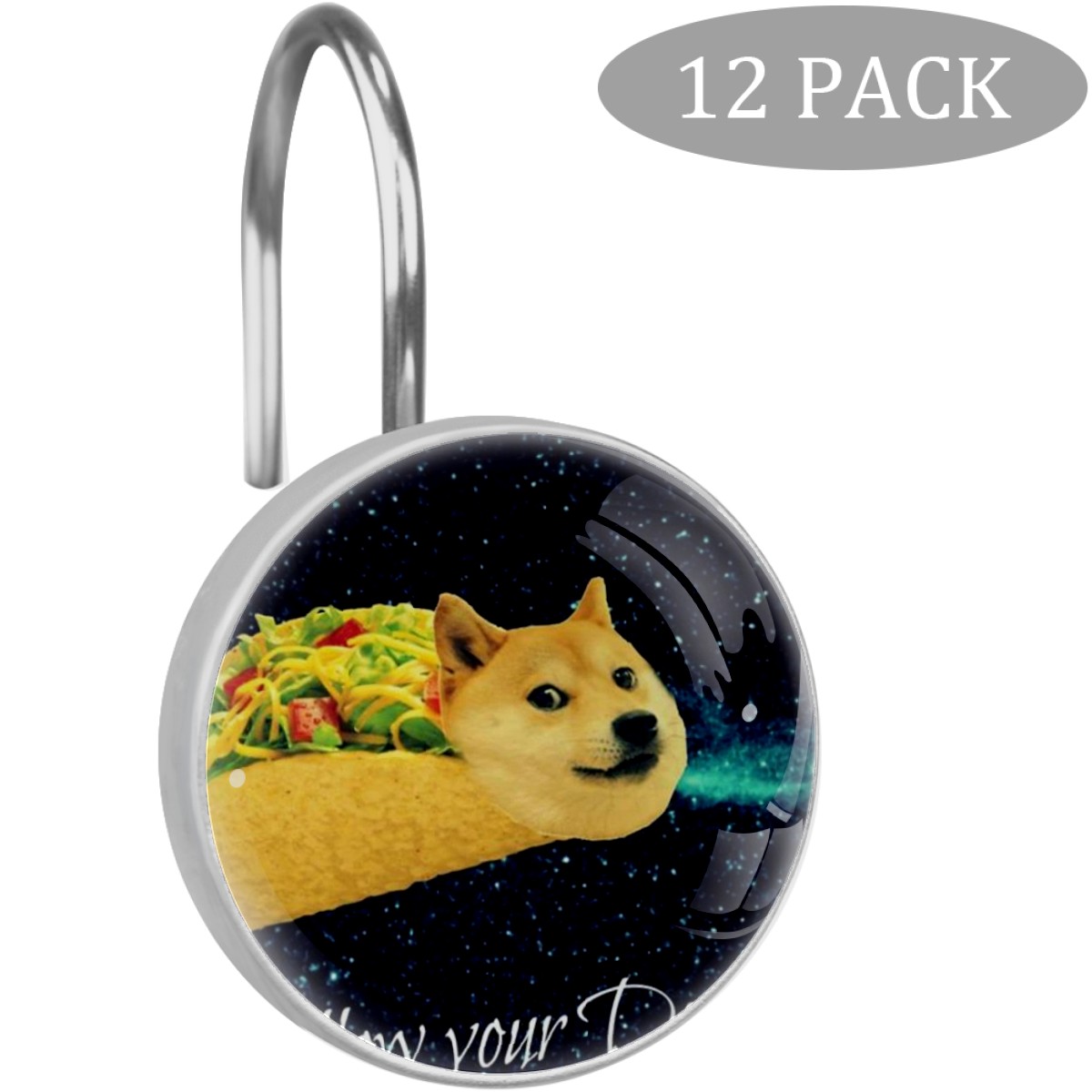 Decorative Shower Curtain Hooks Set of 12 Funny Dog Follow Your Dream Resin Shower Hooks for Curtain Shower Rings for Bathroom Home Hotel Shower Rods