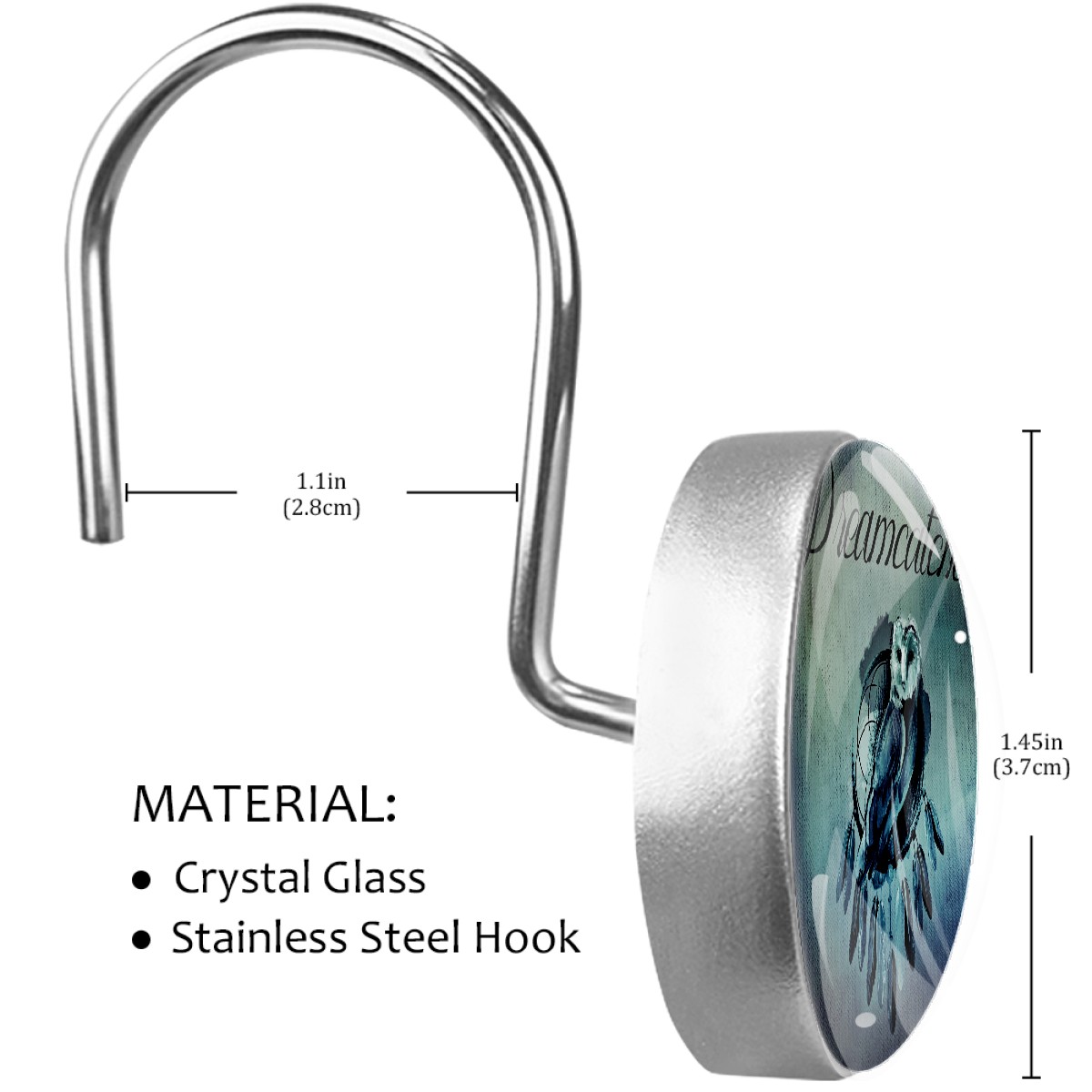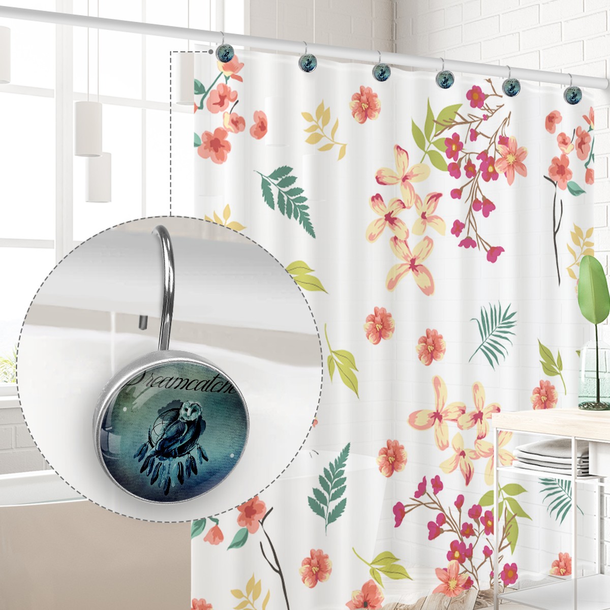 <p>This set of 12 durable hooks attach easily to any standard shower curtain, liner, and rod system to keep the curtain securely attached and evenly draped. </p><p>&nbsp;</p><p>- Impressively durable with sturdiness to hold up any shower curtain.</p><p>&nbsp;</p><p>- <b>Easy to install</b>: simply thread through existing holes and hang over shower rod.</p><p>&nbsp;</p><p>- Vibrant print on one side which adds style to your shower rod.</p><p>&nbsp;</p><p>- Astoundingly gorgeous design to <b>Decorate your bathroom</b>.</p><p>&nbsp;</p><p><b>Package Including</b></p><p>12*Shower Curtain Hooks</p><p>&nbsp;</p><p><b>Notes</b></p><p>1. Due to the different monitor and light effect, the actual color of the item might be slightly different from the color showed on the pictures. Thank you!</p><p>2. Please allow 2-3cm measuring deviation due to manual measurement.</p>
