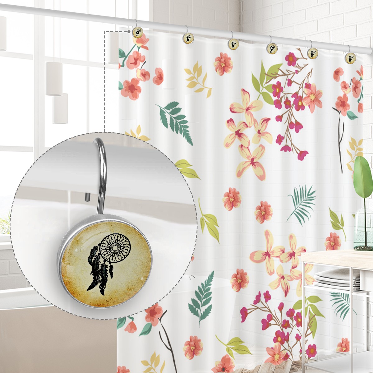 Decorative Shower Curtain Hooks Set of 12 Dream Catcher Dream Indian Resin Shower Hooks for Curtain Shower Rings for Bathroom Home Hotel Shower Rods