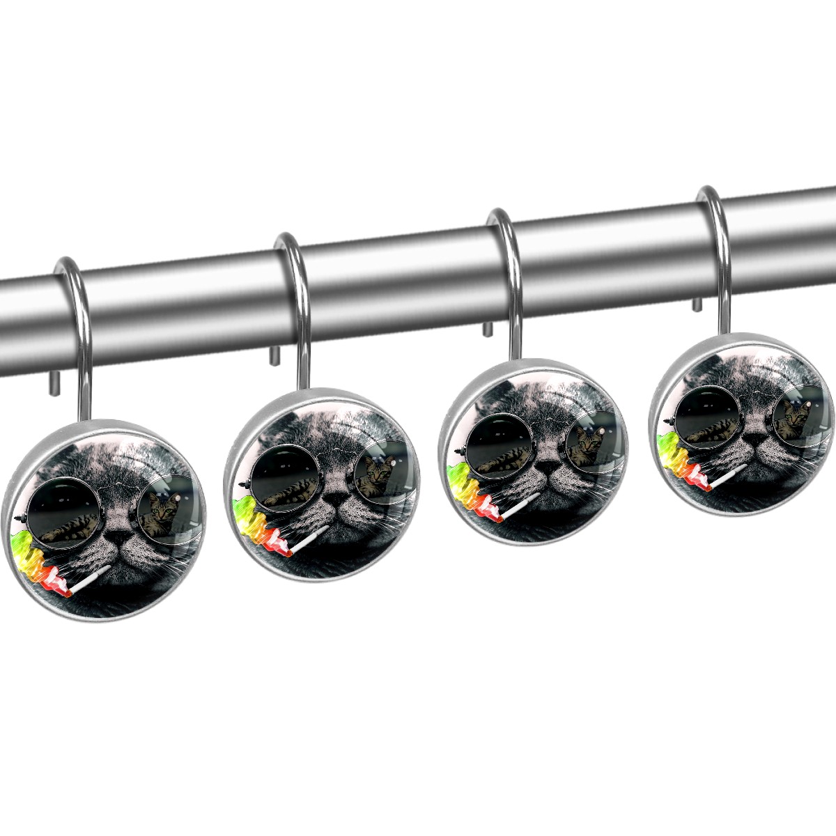 Decorative Shower Curtain Hooks Set of 12 Cool Cat Resin Shower Hooks for Curtain Shower Rings for Bathroom Home Hotel Shower Rods