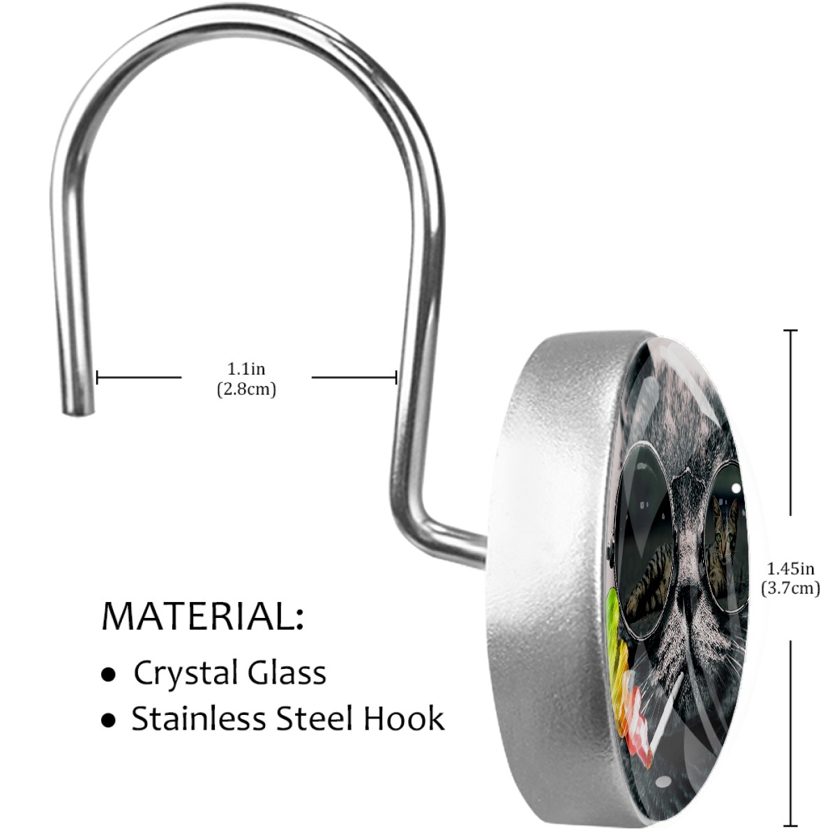 <p>This set of 12 durable hooks attach easily to any standard shower curtain, liner, and rod system to keep the curtain securely attached and evenly draped. </p><p>&nbsp;</p><p>- Impressively durable with sturdiness to hold up any shower curtain.</p><p>&nbsp;</p><p>- <b>Easy to install</b>: simply thread through existing holes and hang over shower rod.</p><p>&nbsp;</p><p>- Vibrant print on one side which adds style to your shower rod.</p><p>&nbsp;</p><p>- Astoundingly gorgeous design to <b>Decorate your bathroom</b>.</p><p>&nbsp;</p><p><b>Package Including</b></p><p>12*Shower Curtain Hooks</p><p>&nbsp;</p><p><b>Notes</b></p><p>1. Due to the different monitor and light effect, the actual color of the item might be slightly different from the color showed on the pictures. Thank you!</p><p>2. Please allow 2-3cm measuring deviation due to manual measurement.</p>