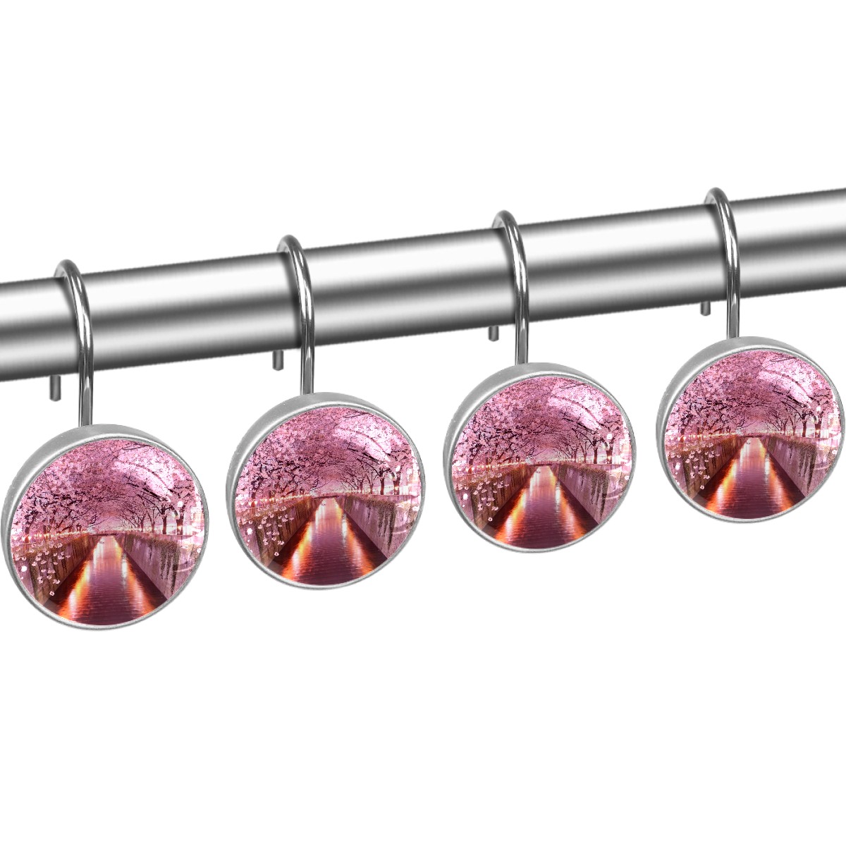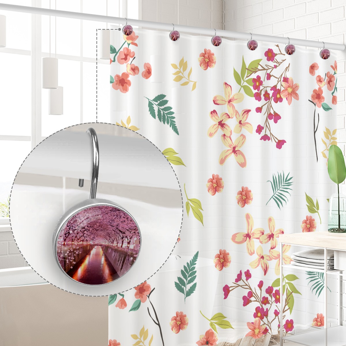 Decorative Shower Curtain Hooks Set of 12 Cherry Blossom Resin Shower Hooks for Curtain Shower Rings for Bathroom Home Hotel Shower Rods