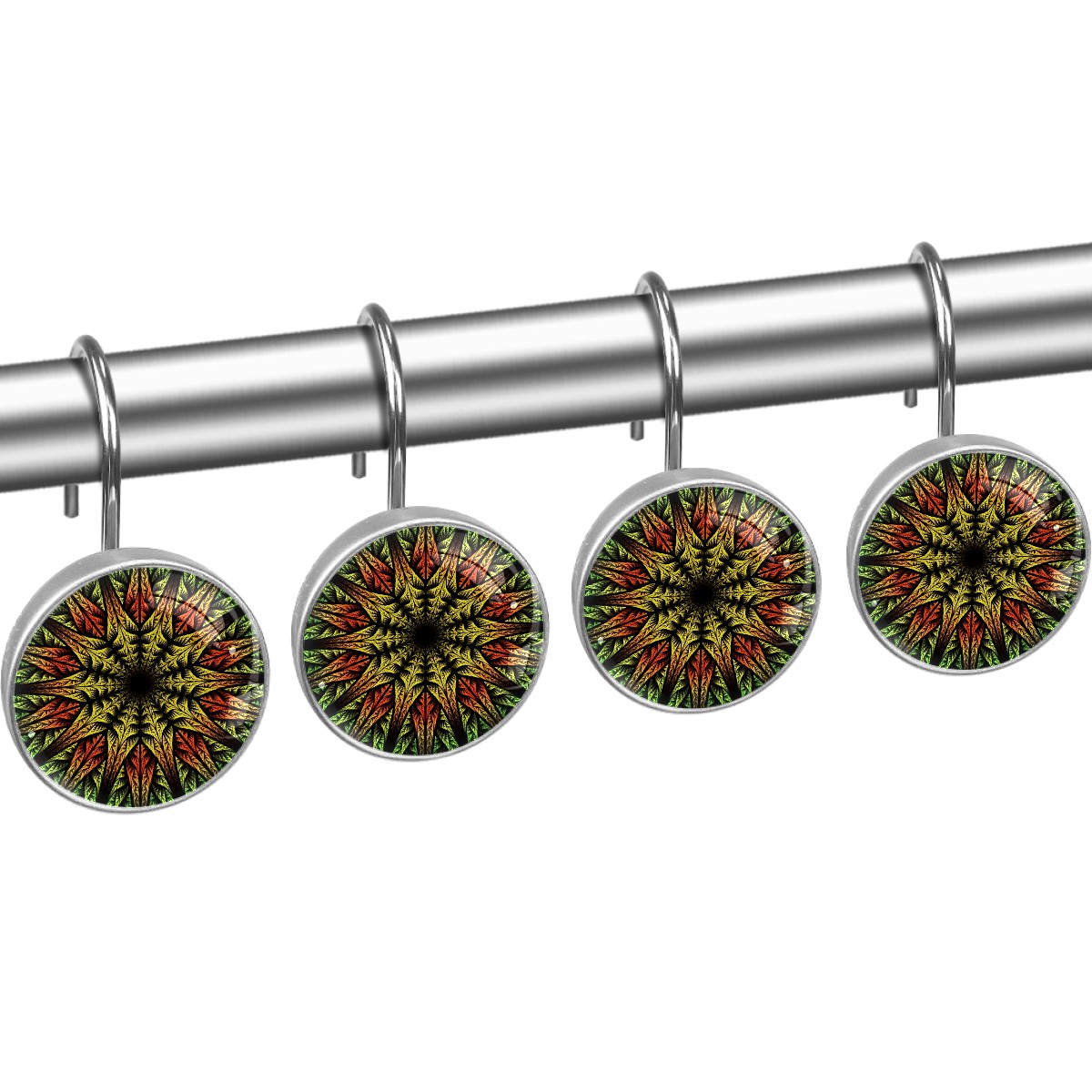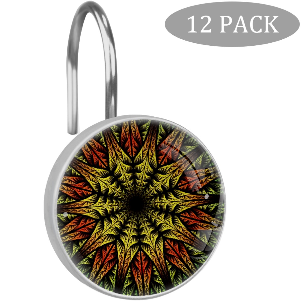 <p>This set of 12 durable hooks attach easily to any standard shower curtain, liner, and rod system to keep the curtain securely attached and evenly draped. </p><p> </p><p>- Impressively durable with sturdiness to hold up any shower curtain.</p><p> </p><p>- <b>Easy to install</b>: simply thread through existing holes and hang over shower rod.</p><p> </p><p>- Vibrant print on one side which adds style to your shower rod.</p><p> </p><p>- Astoundingly gorgeous design to <b>Decorate your bathroom</b>.</p><p> </p><p><b>Package Including</b></p><p>12*Shower Curtain Hooks</p><p> </p><p><b>Notes</b></p><p>1. Due to the different monitor and light effect, the actual color of the item might be slightly different from the color showed on the pictures. Thank you!</p><p>2. Please allow 2-3cm measuring deviation due to manual measurement.</p>