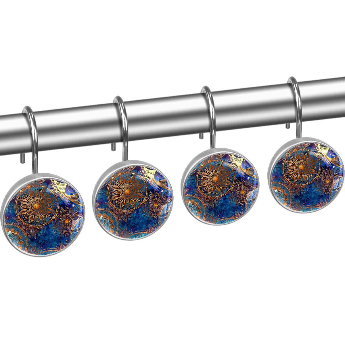 Decorative Shower Curtain Hooks Set of 12 Bohemian Resin Shower Hooks for Curtain Shower Rings for Bathroom Home Hotel Shower Rods
