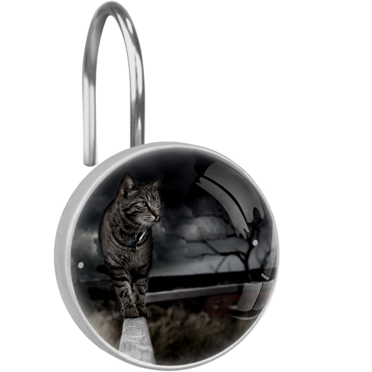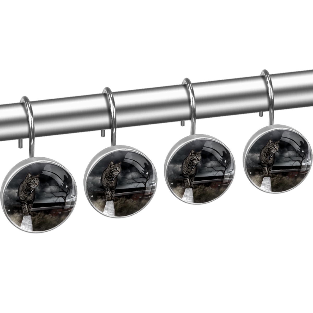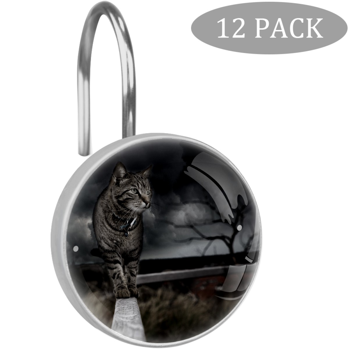 Decorative Shower Curtain Hooks Set of 12 Black Cat Storm Resin Shower Hooks for Curtain Shower Rings for Bathroom Home Hotel Shower Rods