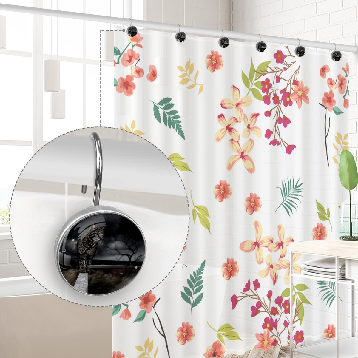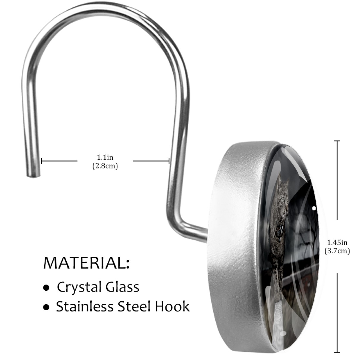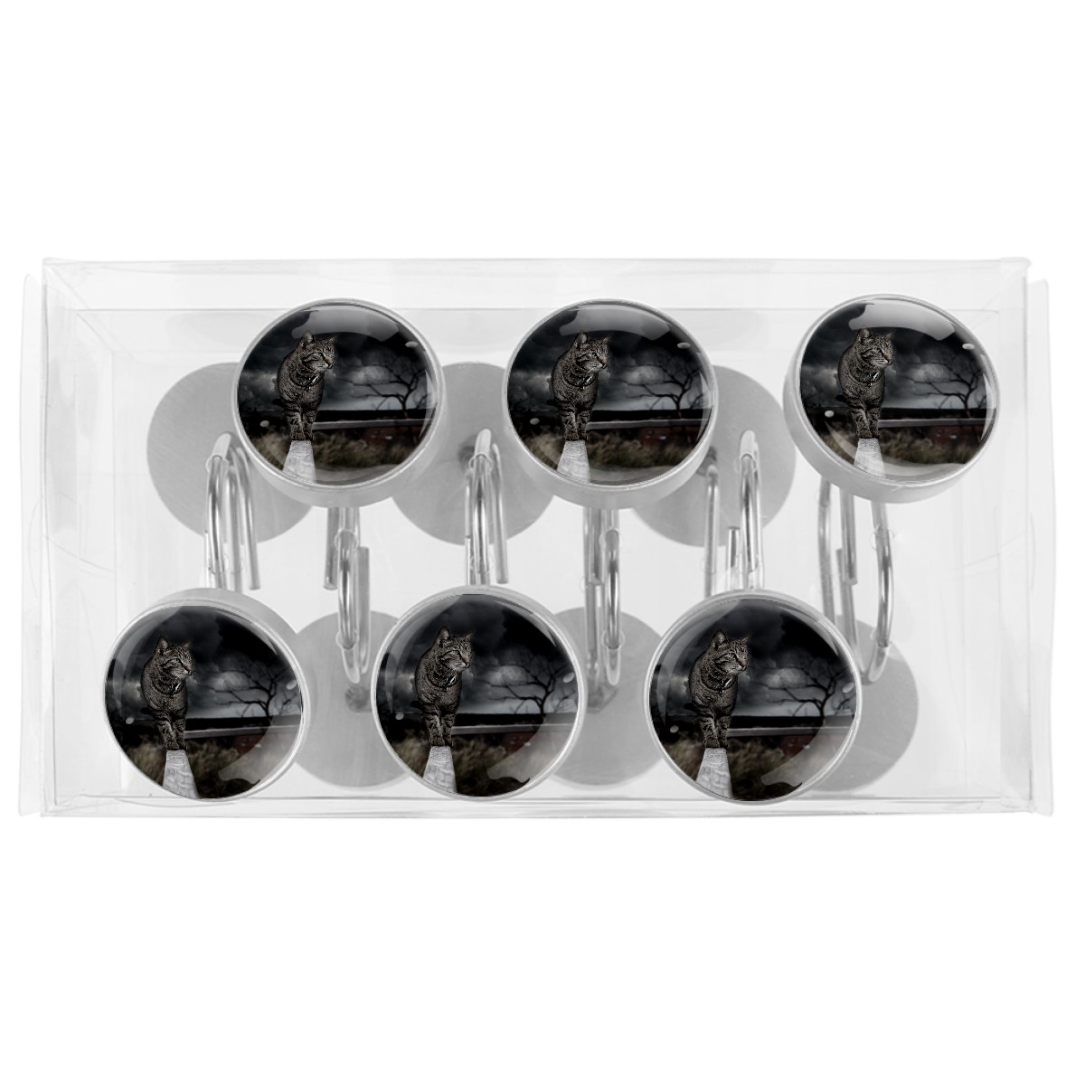Decorative Shower Curtain Hooks Set of 12 Black Cat Storm Resin Shower Hooks for Curtain Shower Rings for Bathroom Home Hotel Shower Rods