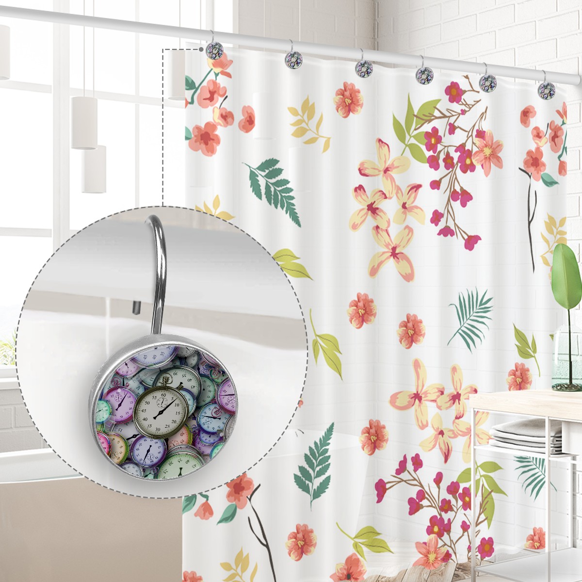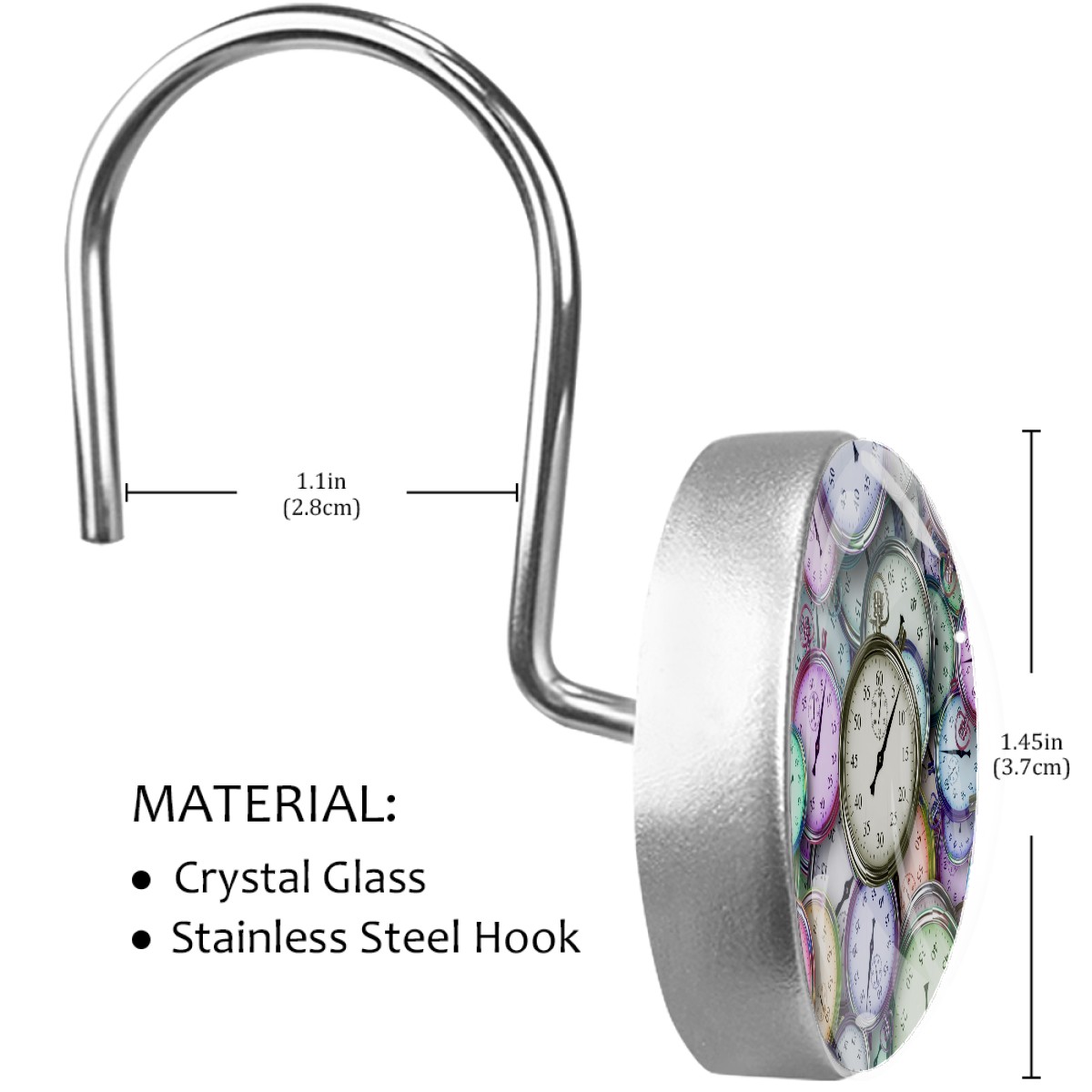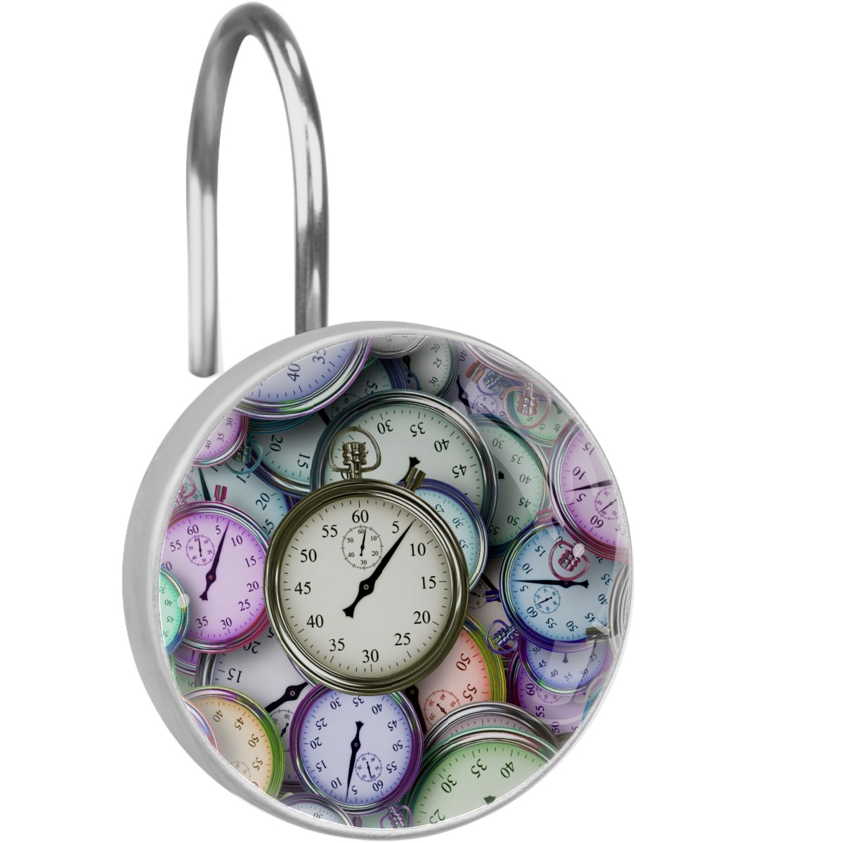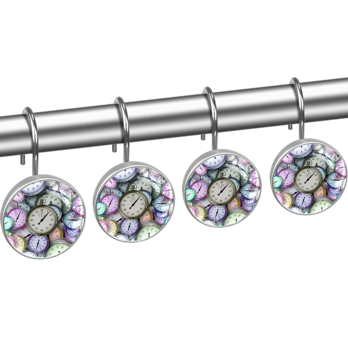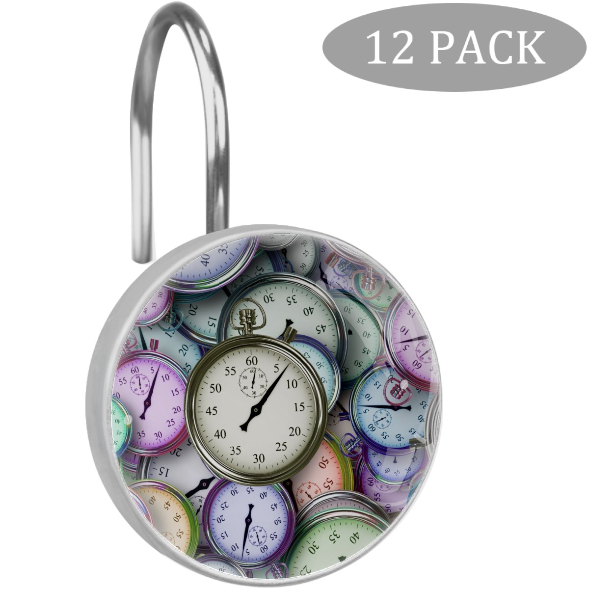 Decorative Shower Curtain Hooks Set of 12 Time Management Stopwatch Resin Shower Hooks for Curtain Shower Rings for Bathroom Home Hotel Shower Rods