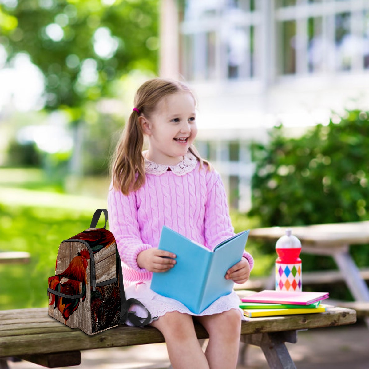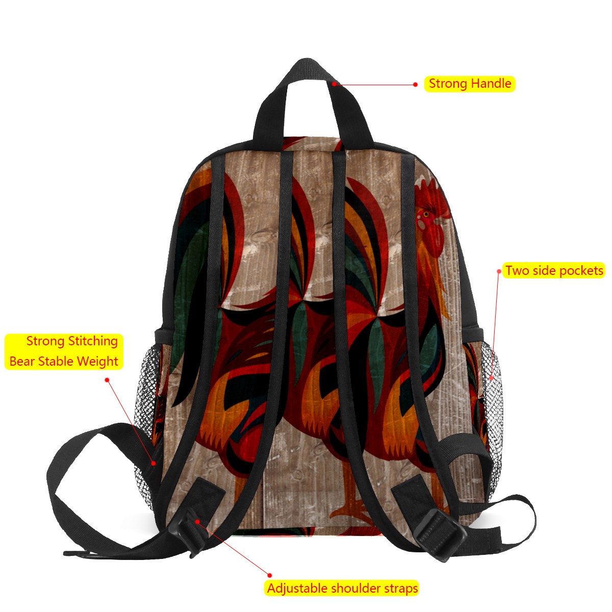 Mini Backpack Rooster And Wooden Board Cute Lightweight School Bags Small Daypack Purse Travel Backpacks Woman Shoulder Bag for Kids Girls Boys(3-8 Years Old)