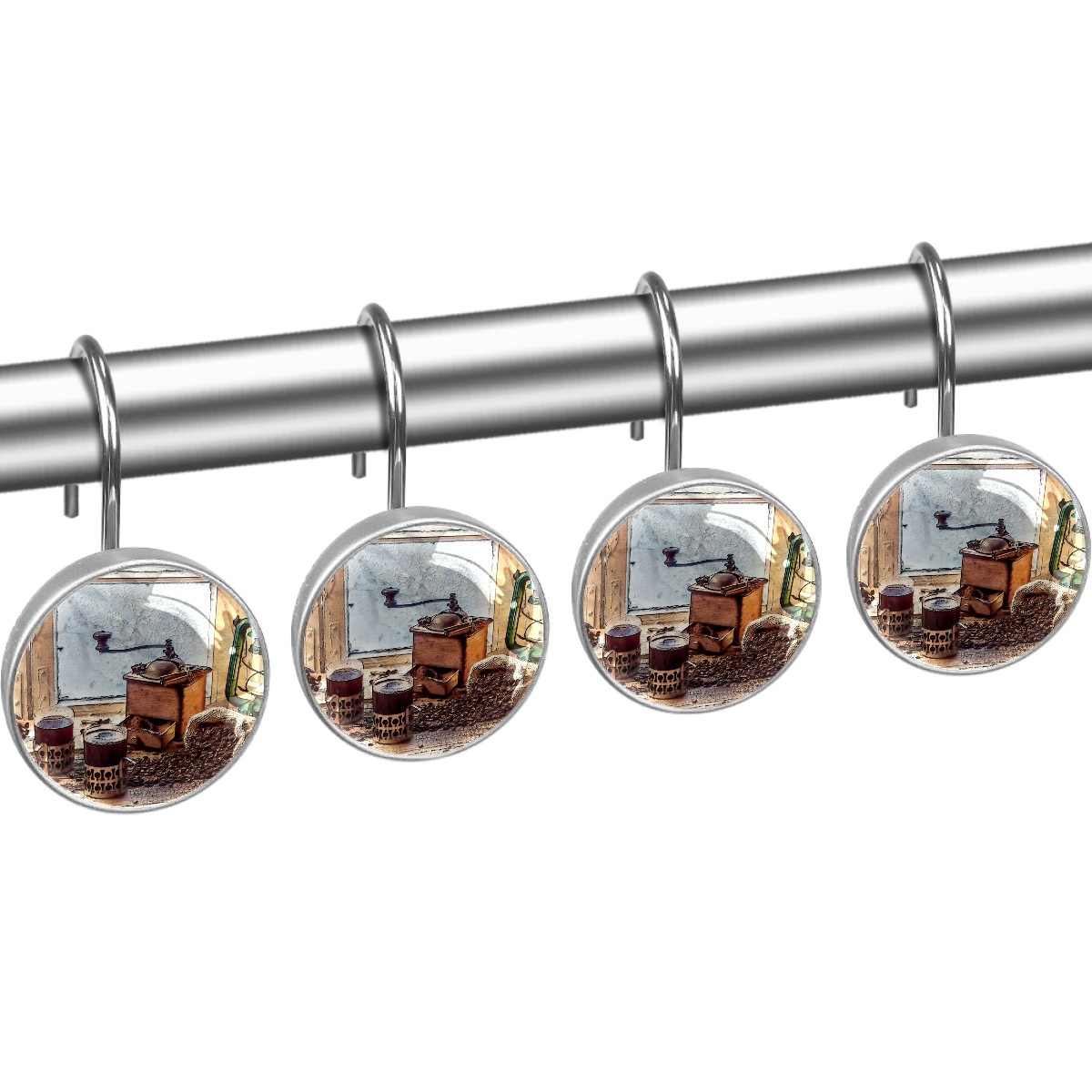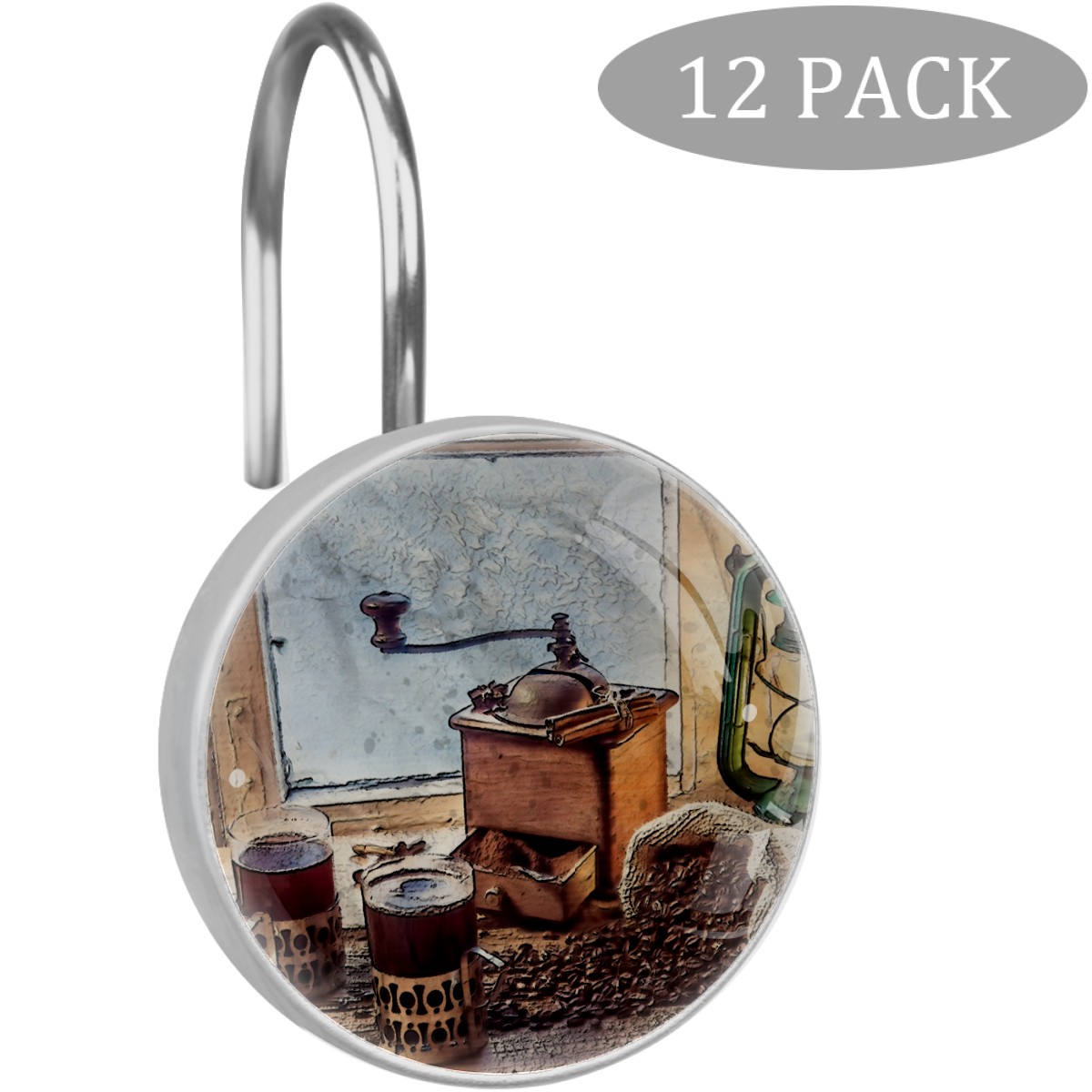 Decorative Shower Curtain Hooks Set of 12 Vintage Old Lantern Light Window Resin Shower Hooks for Curtain Shower Rings for Bathroom Home Hotel Shower Rods