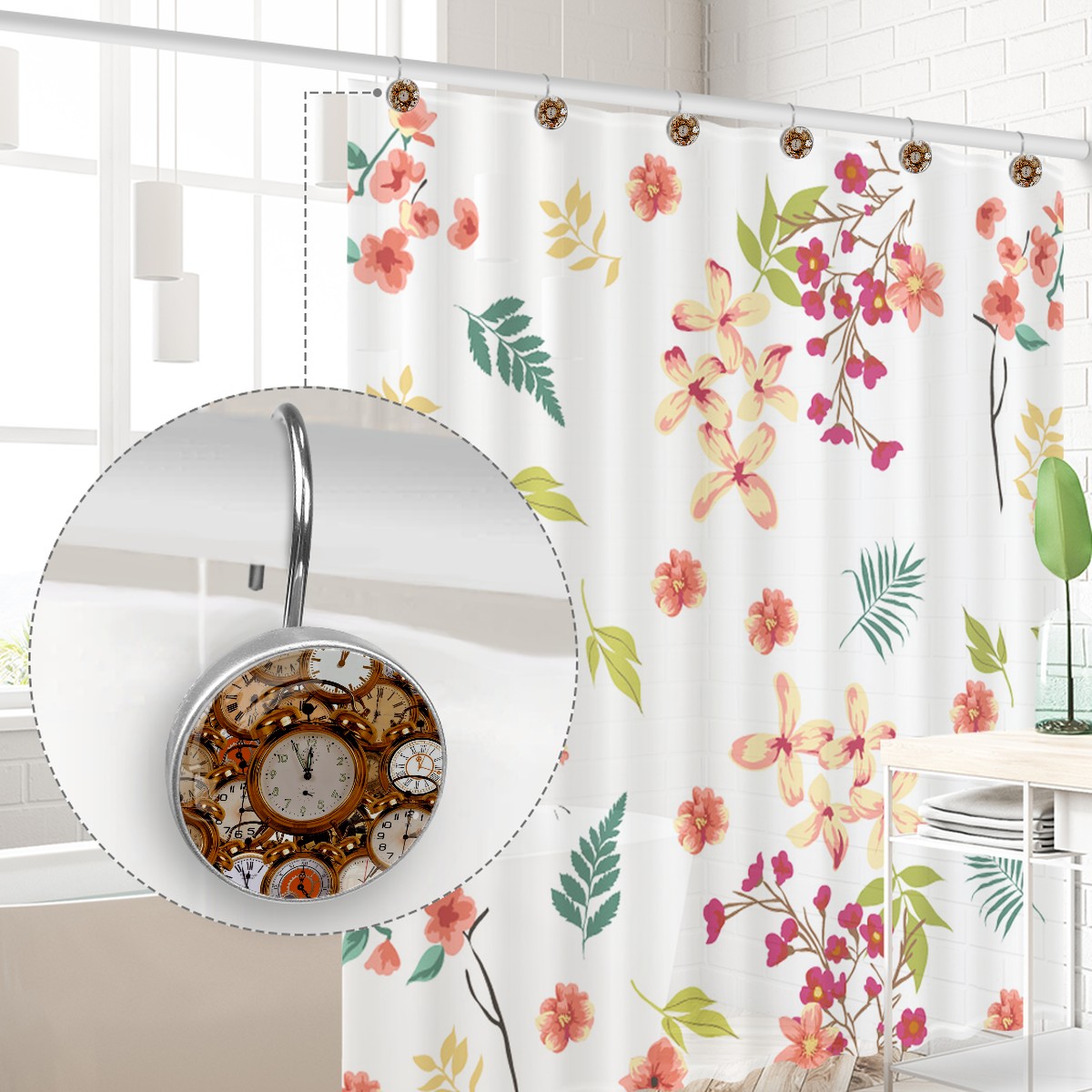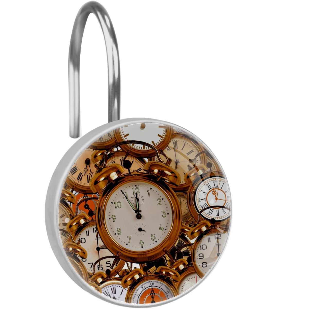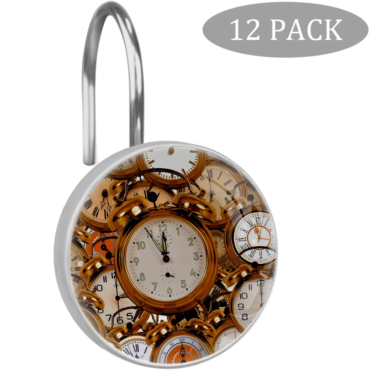 Decorative Shower Curtain Hooks Set of 12 Time Clock Watches Time Resin Shower Hooks for Curtain Shower Rings for Bathroom Home Hotel Shower Rods