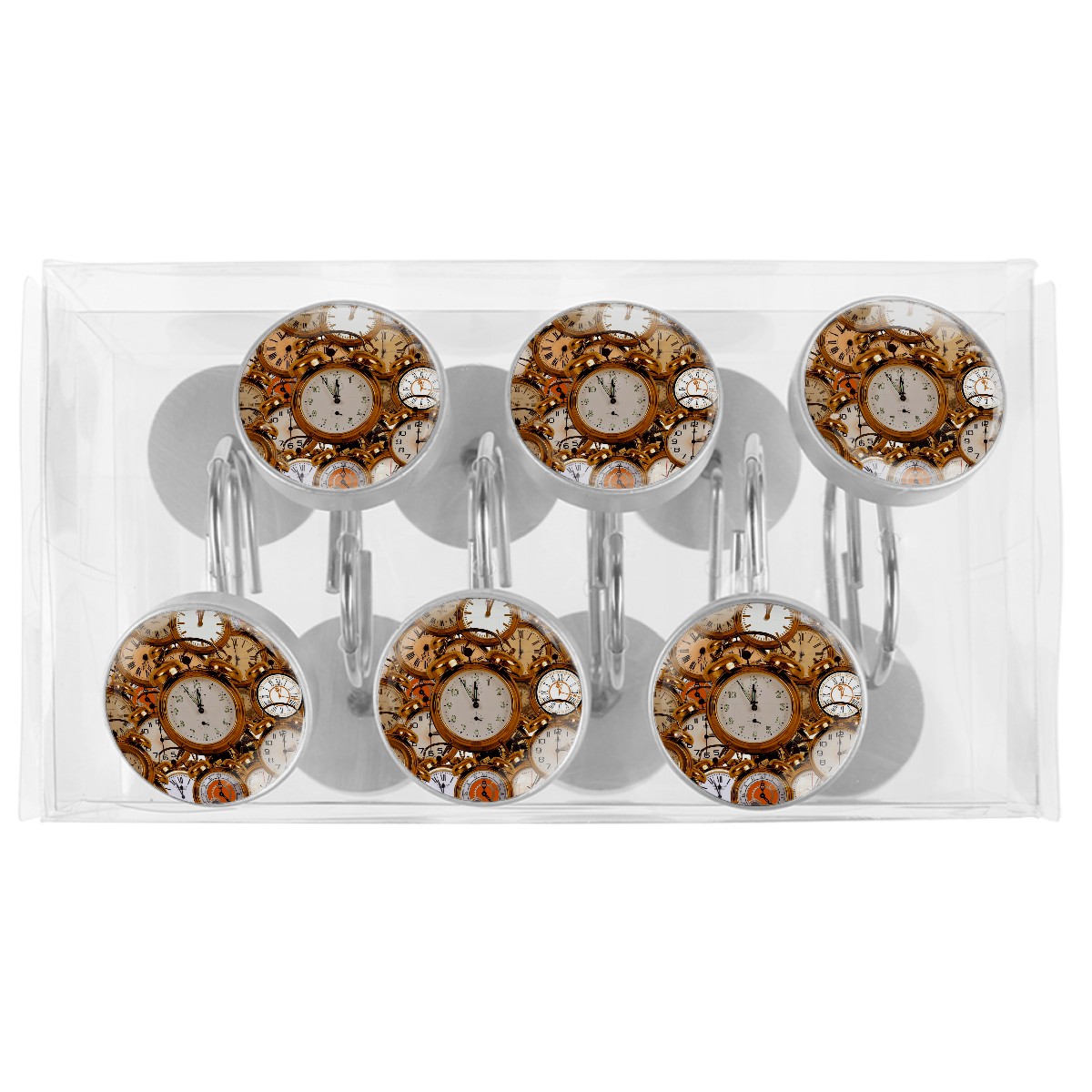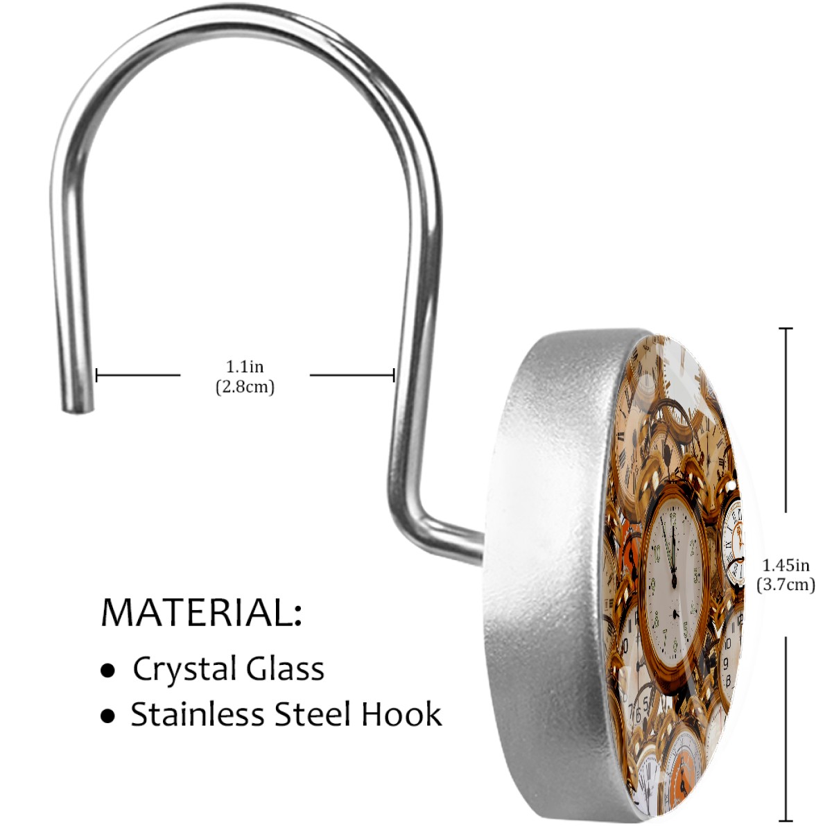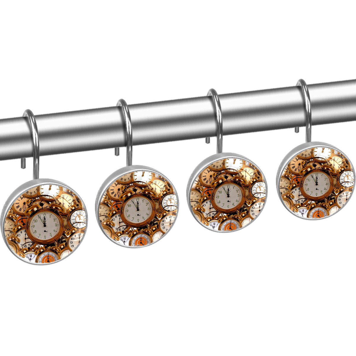 Decorative Shower Curtain Hooks Set of 12 Time Clock Watches Time Resin Shower Hooks for Curtain Shower Rings for Bathroom Home Hotel Shower Rods