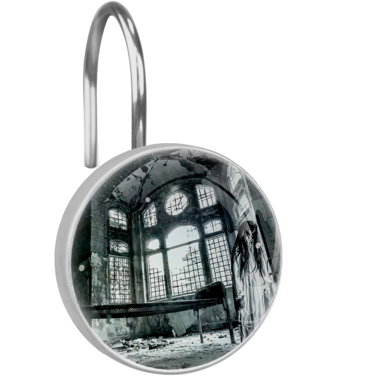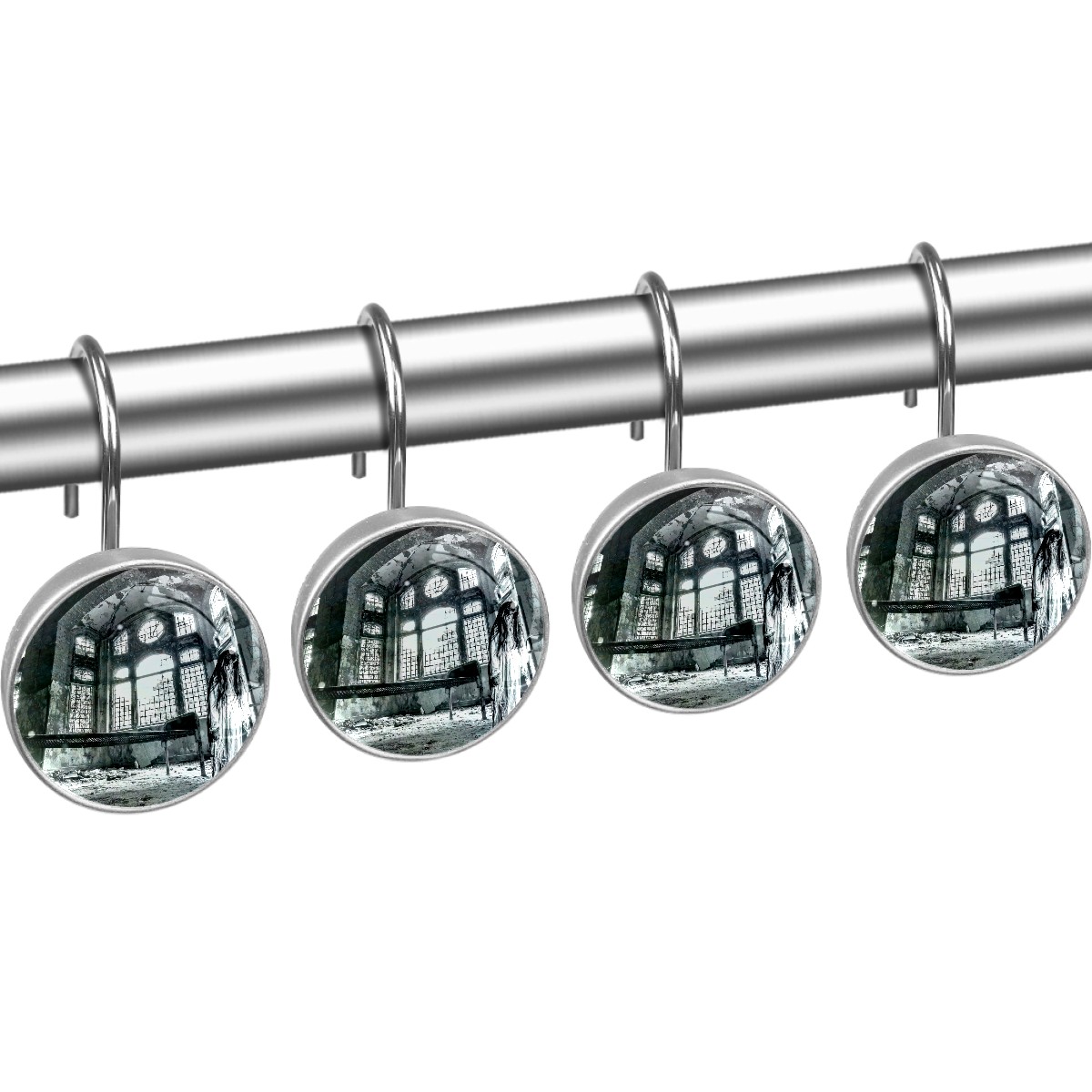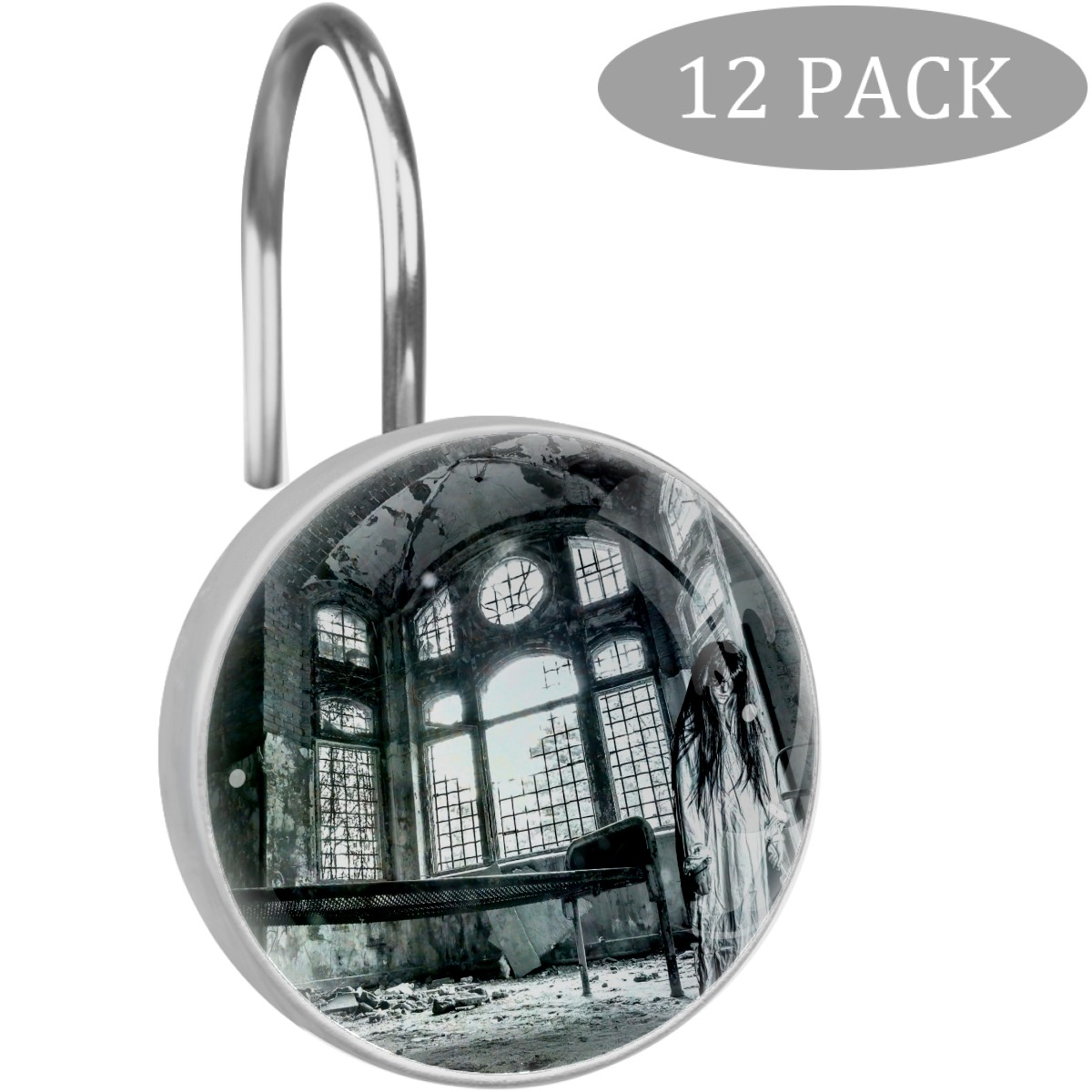 Decorative Shower Curtain Hooks Set of 12 Horror Fantasy Dark Girl Resin Shower Hooks for Curtain Shower Rings for Bathroom Home Hotel Shower Rods