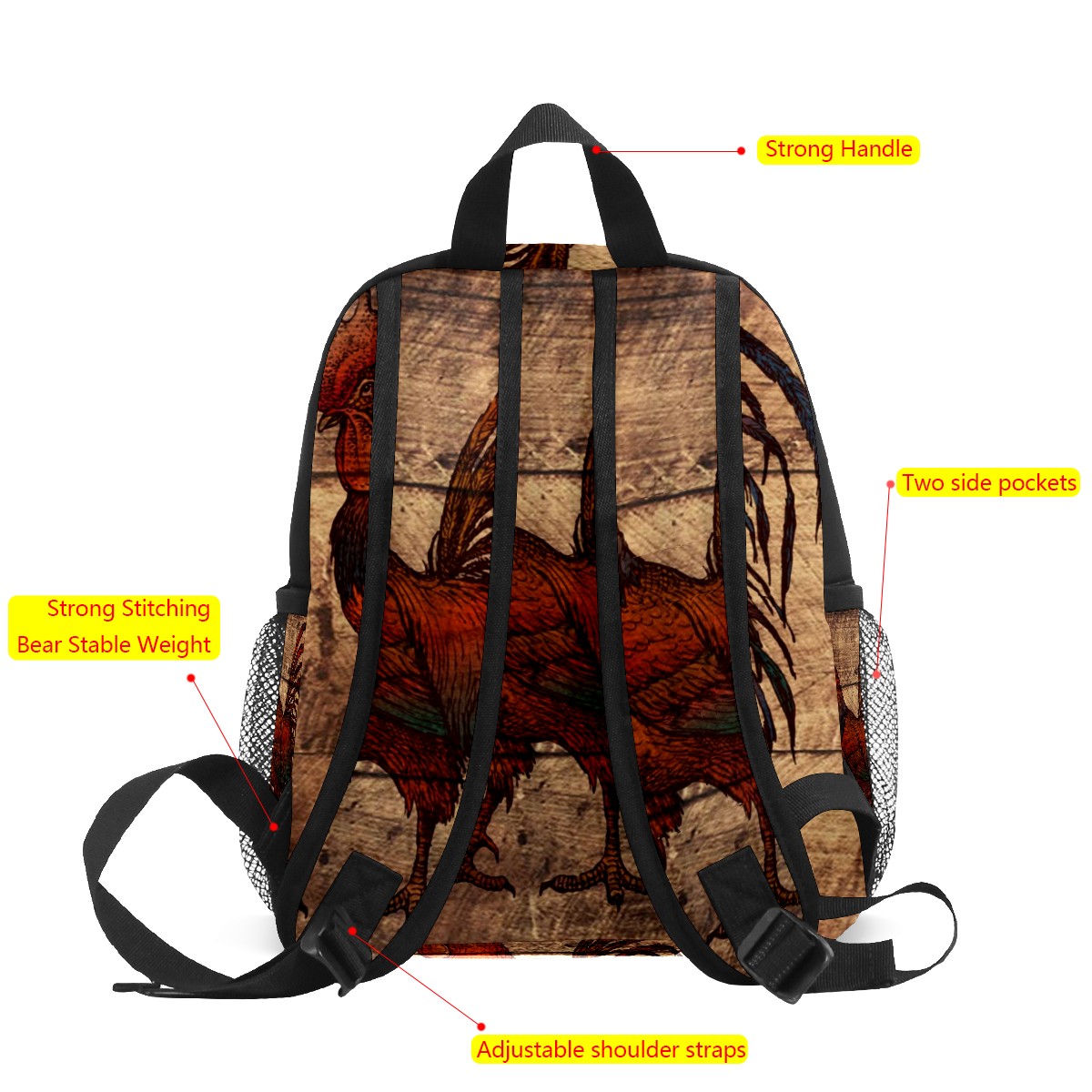 Mini Backpack Rooster And Wooden Board Cute Lightweight School Bags Small Daypack Purse Travel Backpacks Woman Shoulder Bag for Kids Girls Boys(3-8 Years Old)