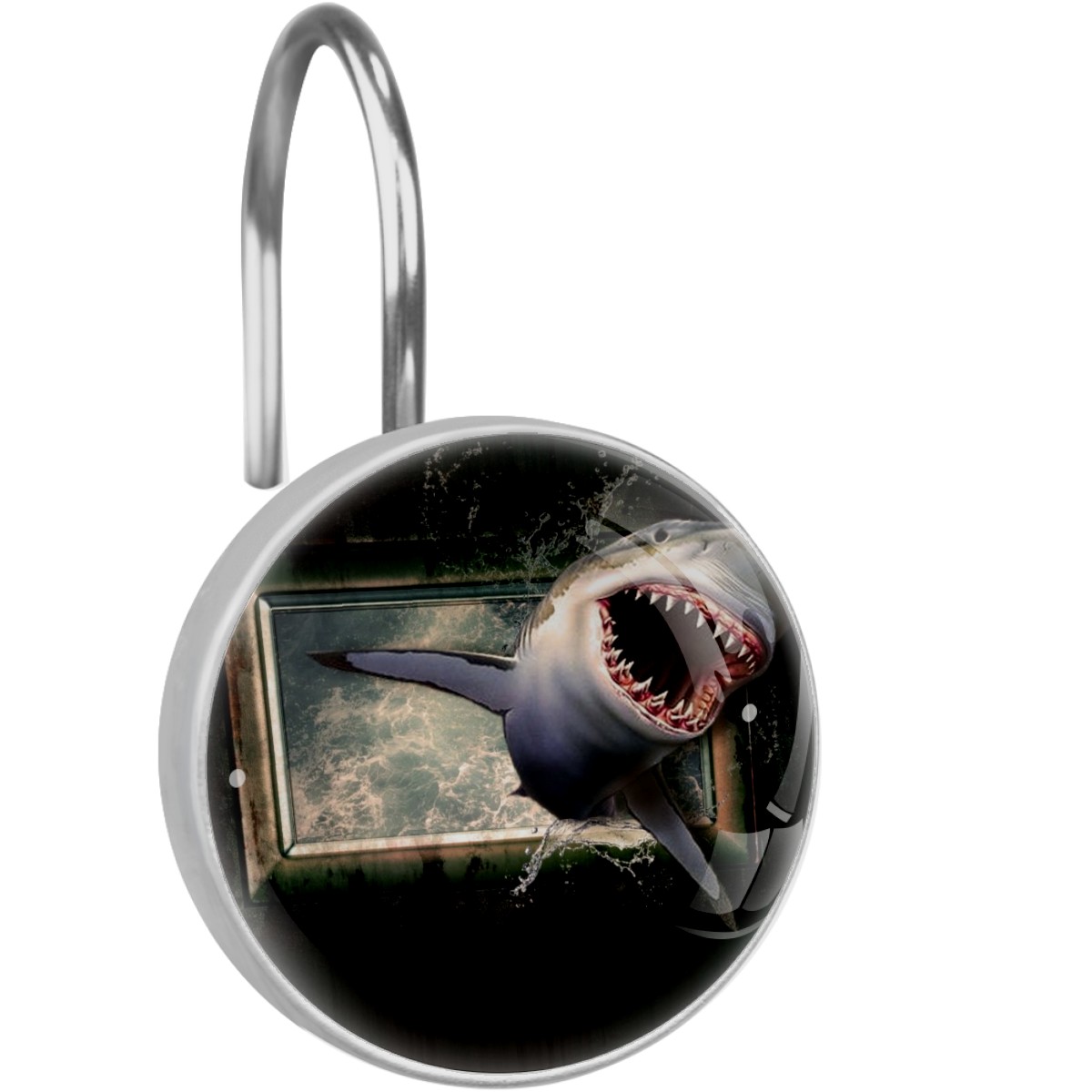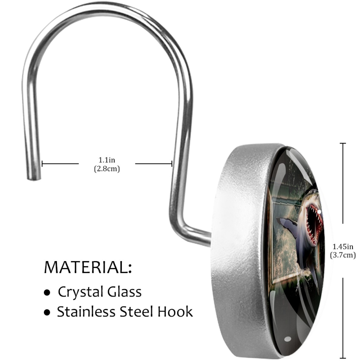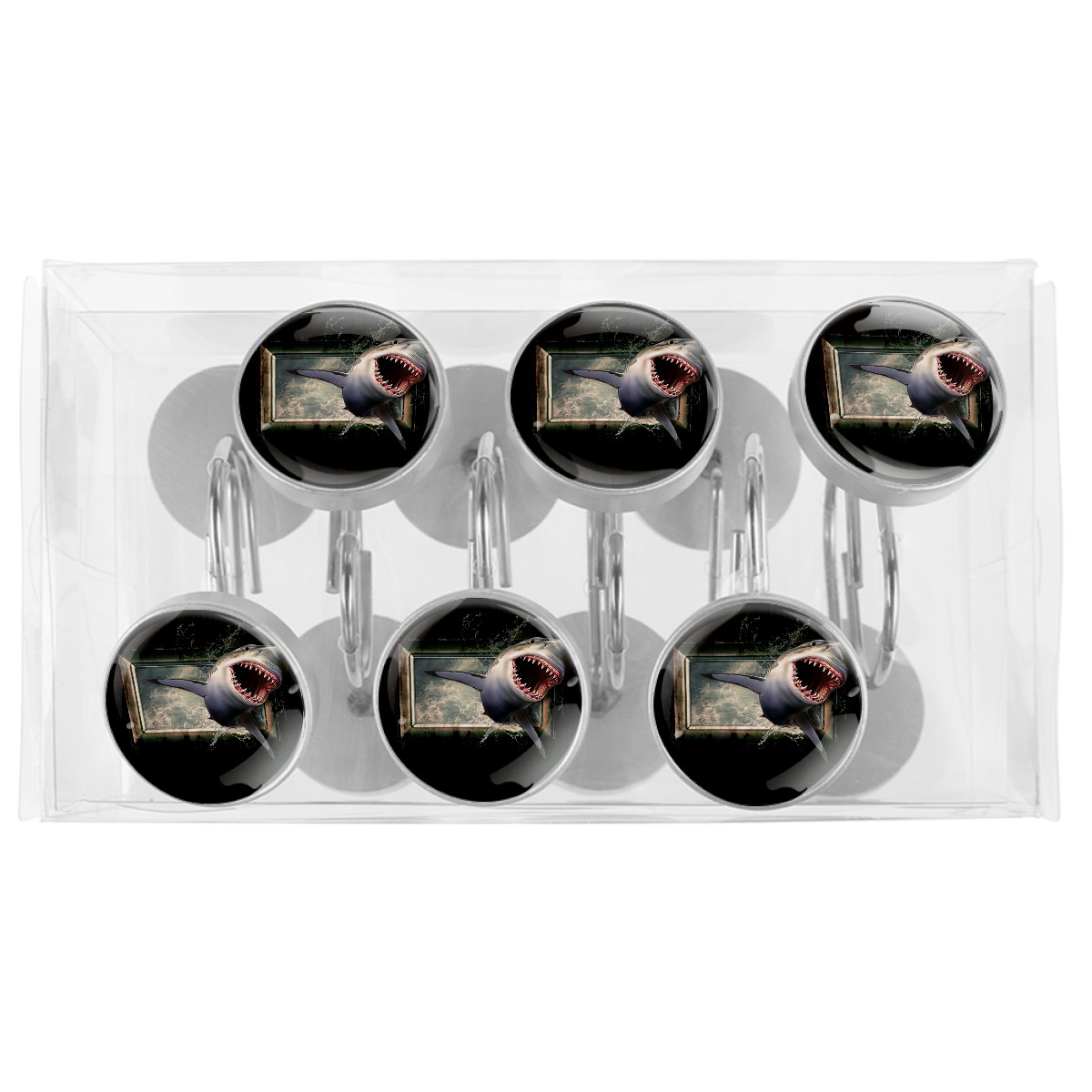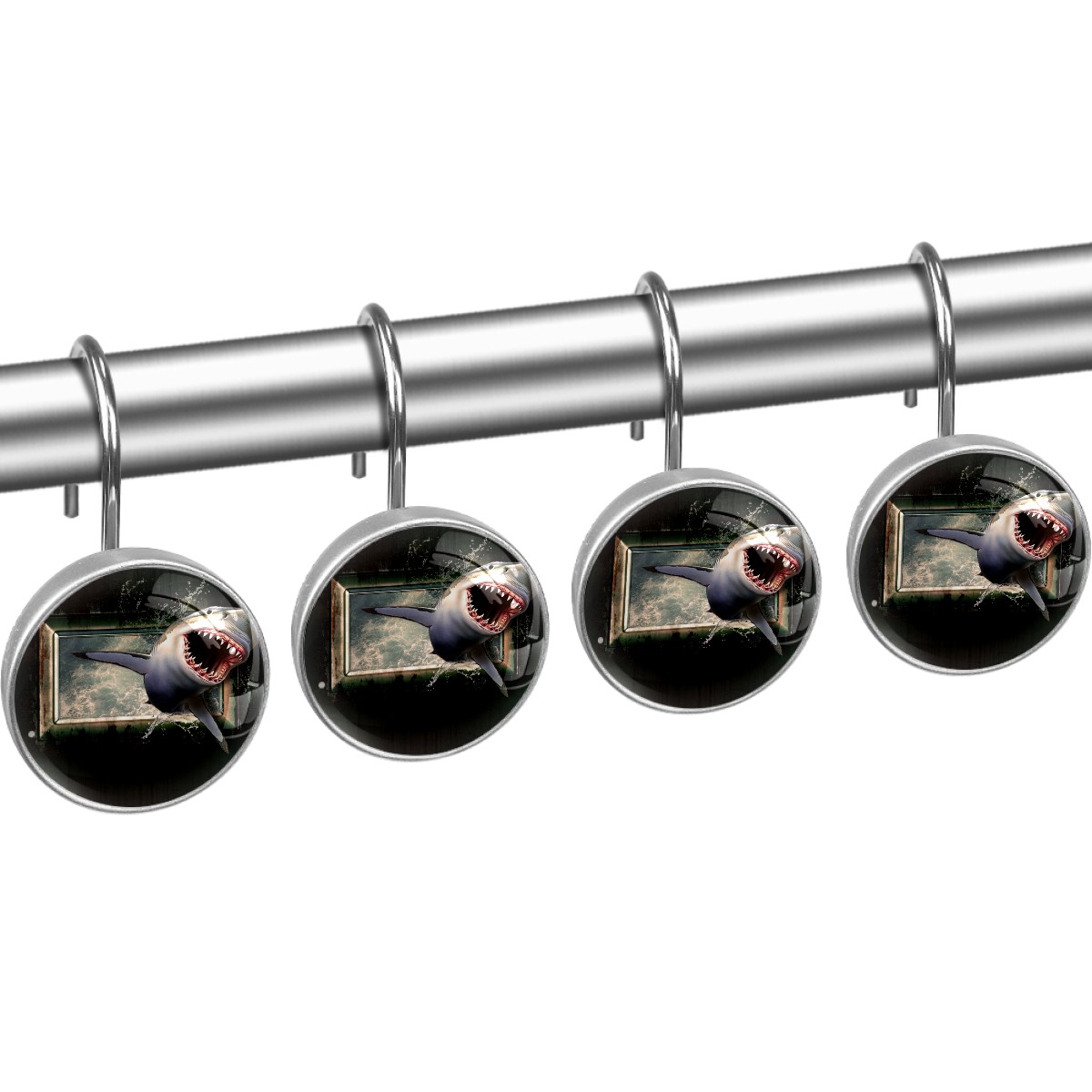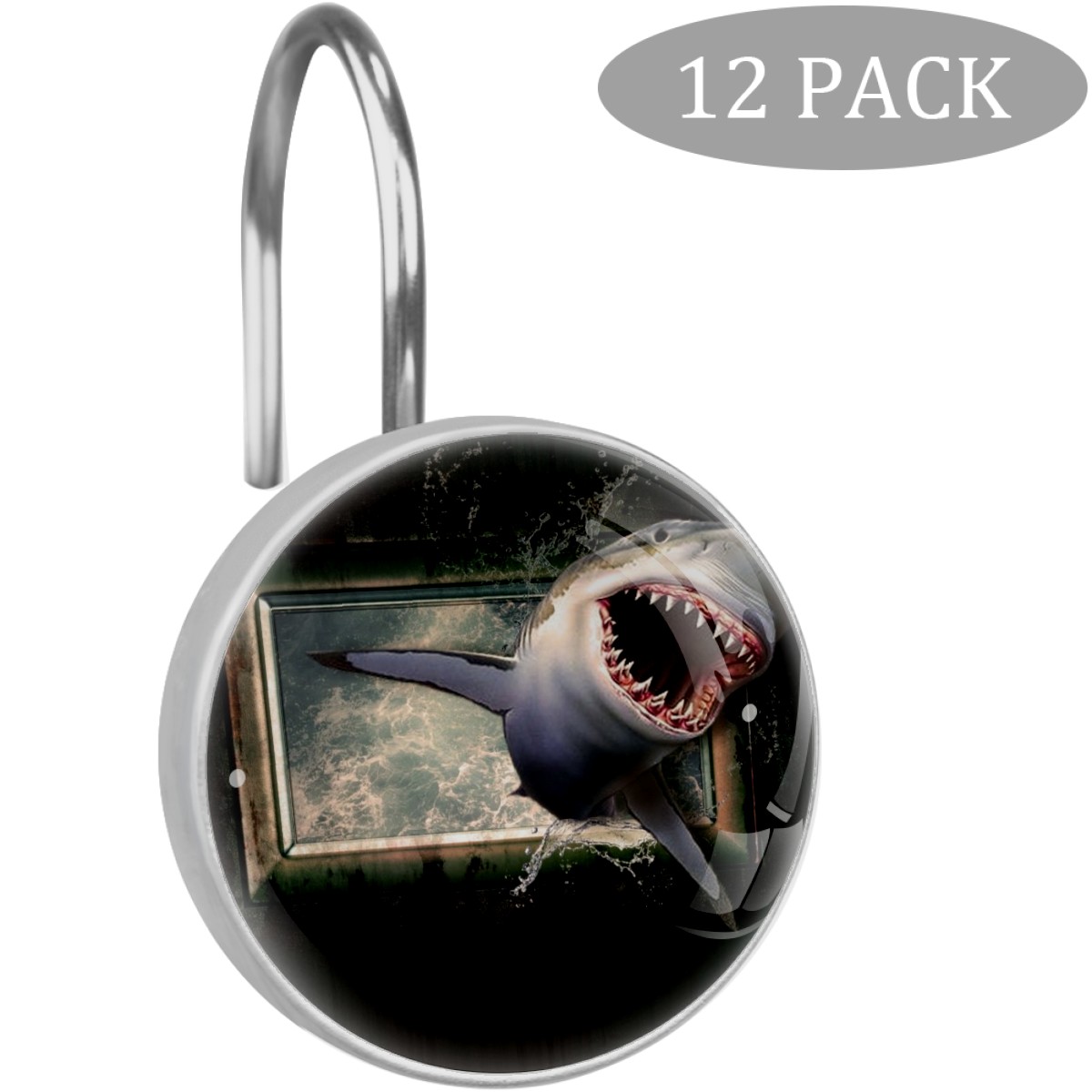 Decorative Shower Curtain Hooks Set of 12 Shark Wallpaper Water Sea Window Resin Shower Hooks for Curtain Shower Rings for Bathroom Home Hotel Shower Rods