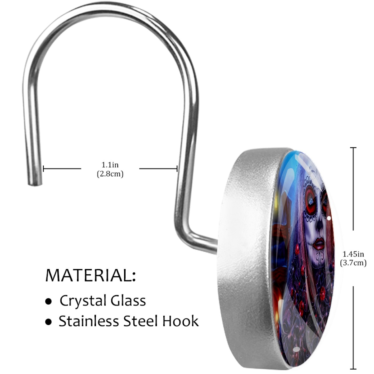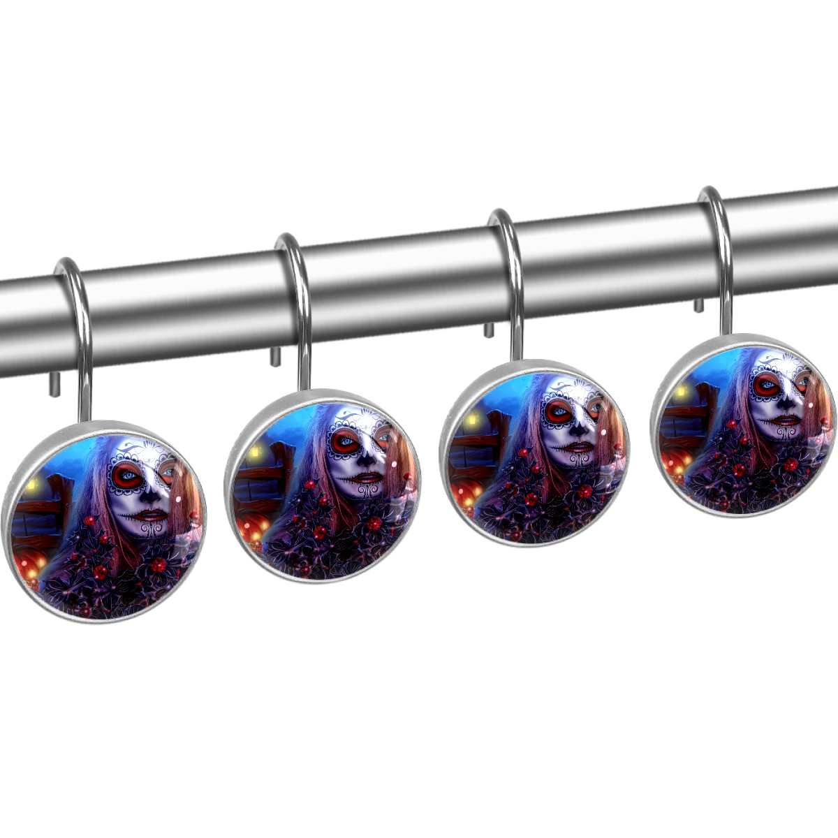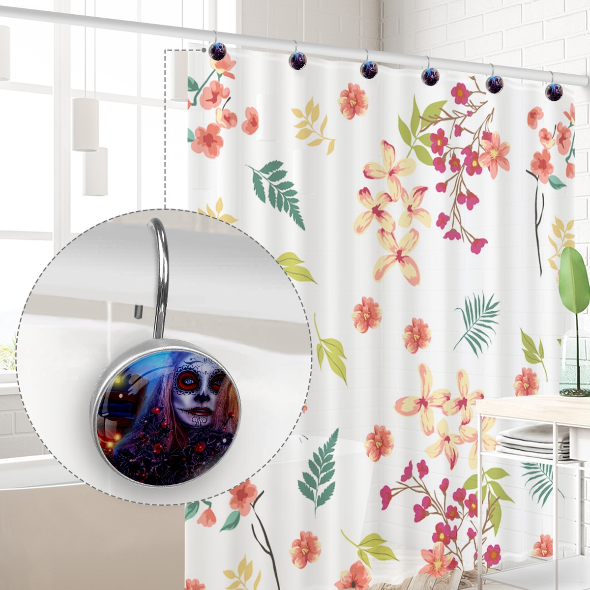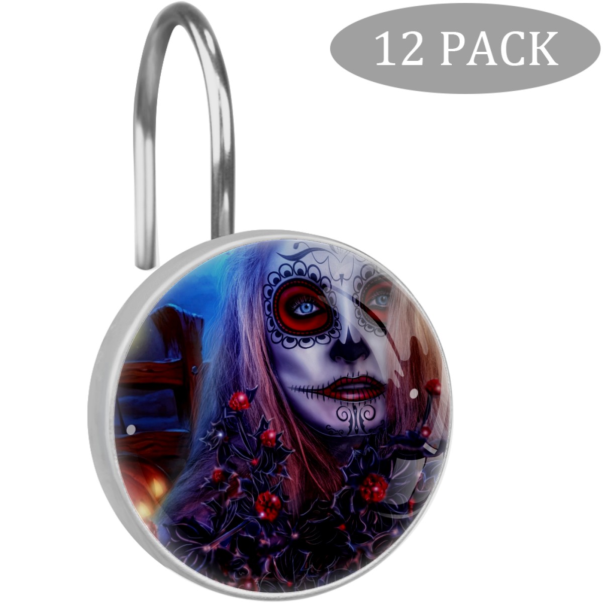Decorative Shower Curtain Hooks Set of 12 Halloween Girl All Saints Day Resin Shower Hooks for Curtain Shower Rings for Bathroom Home Hotel Shower Rods