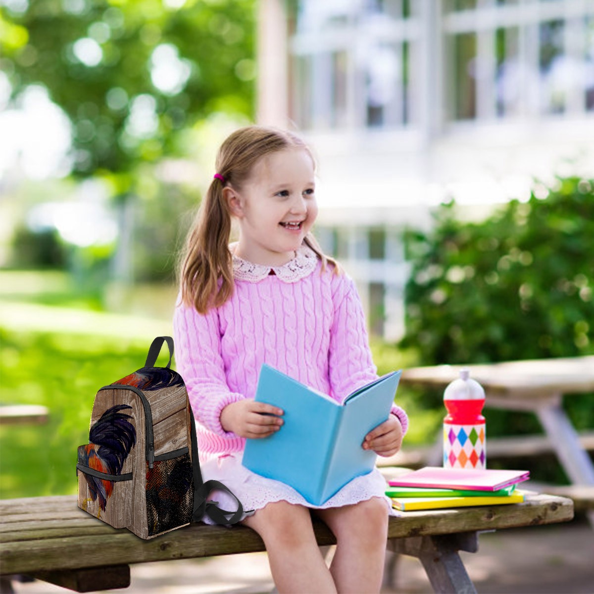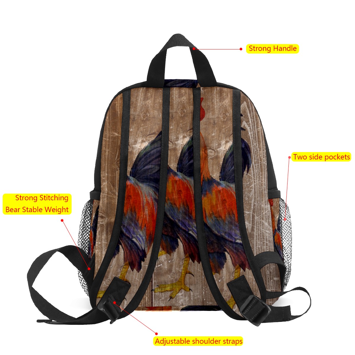 Mini Backpack Rooster And Wooden Board Cute Lightweight School Bags Small Daypack Purse Travel Backpacks Woman Shoulder Bag for Kids Girls Boys(3-8 Years Old)