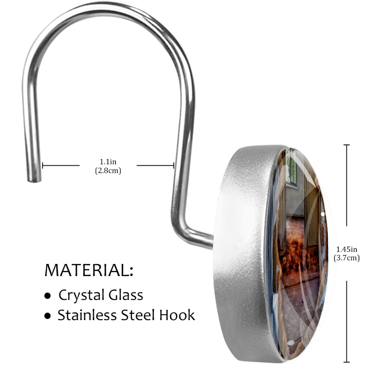 <p>This set of 12 durable hooks attach easily to any standard shower curtain, liner, and rod system to keep the curtain securely attached and evenly draped. </p><p> </p><p>- Impressively durable with sturdiness to hold up any shower curtain.</p><p> </p><p>- <b>Easy to install</b>: simply thread through existing holes and hang over shower rod.</p><p> </p><p>- Vibrant print on one side which adds style to your shower rod.</p><p> </p><p>- Astoundingly gorgeous design to <b>Decorate your bathroom</b>.</p><p> </p><p><b>Package Including</b></p><p>12*Shower Curtain Hooks</p><p> </p><p><b>Notes</b></p><p>1. Due to the different monitor and light effect, the actual color of the item might be slightly different from the color showed on the pictures. Thank you!</p><p>2. Please allow 2-3cm measuring deviation due to manual measurement.</p>