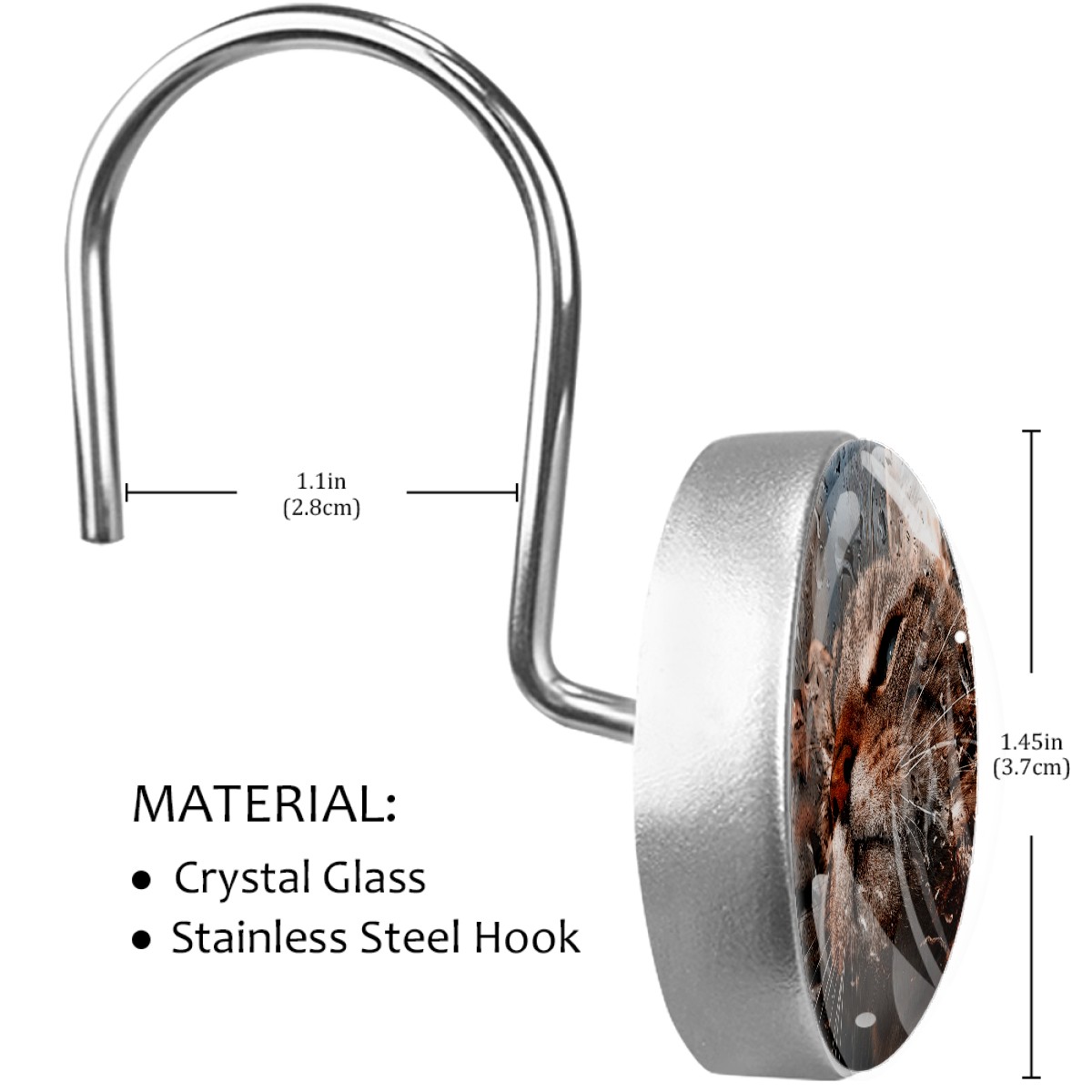 <p>This set of 12 durable hooks attach easily to any standard shower curtain, liner, and rod system to keep the curtain securely attached and evenly draped. </p><p>&nbsp;</p><p>- Impressively durable with sturdiness to hold up any shower curtain.</p><p>&nbsp;</p><p>- <b>Easy to install</b>: simply thread through existing holes and hang over shower rod.</p><p>&nbsp;</p><p>- Vibrant print on one side which adds style to your shower rod.</p><p>&nbsp;</p><p>- Astoundingly gorgeous design to <b>Decorate your bathroom</b>.</p><p>&nbsp;</p><p><b>Package Including</b></p><p>12*Shower Curtain Hooks</p><p>&nbsp;</p><p><b>Notes</b></p><p>1. Due to the different monitor and light effect, the actual color of the item might be slightly different from the color showed on the pictures. Thank you!</p><p>2. Please allow 2-3cm measuring deviation due to manual measurement.</p>