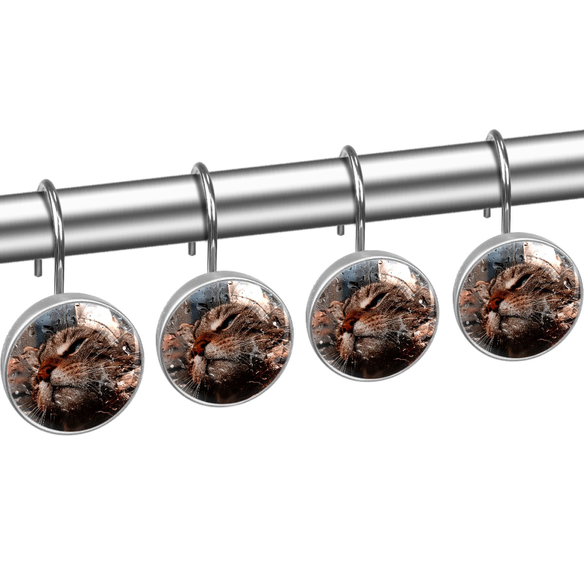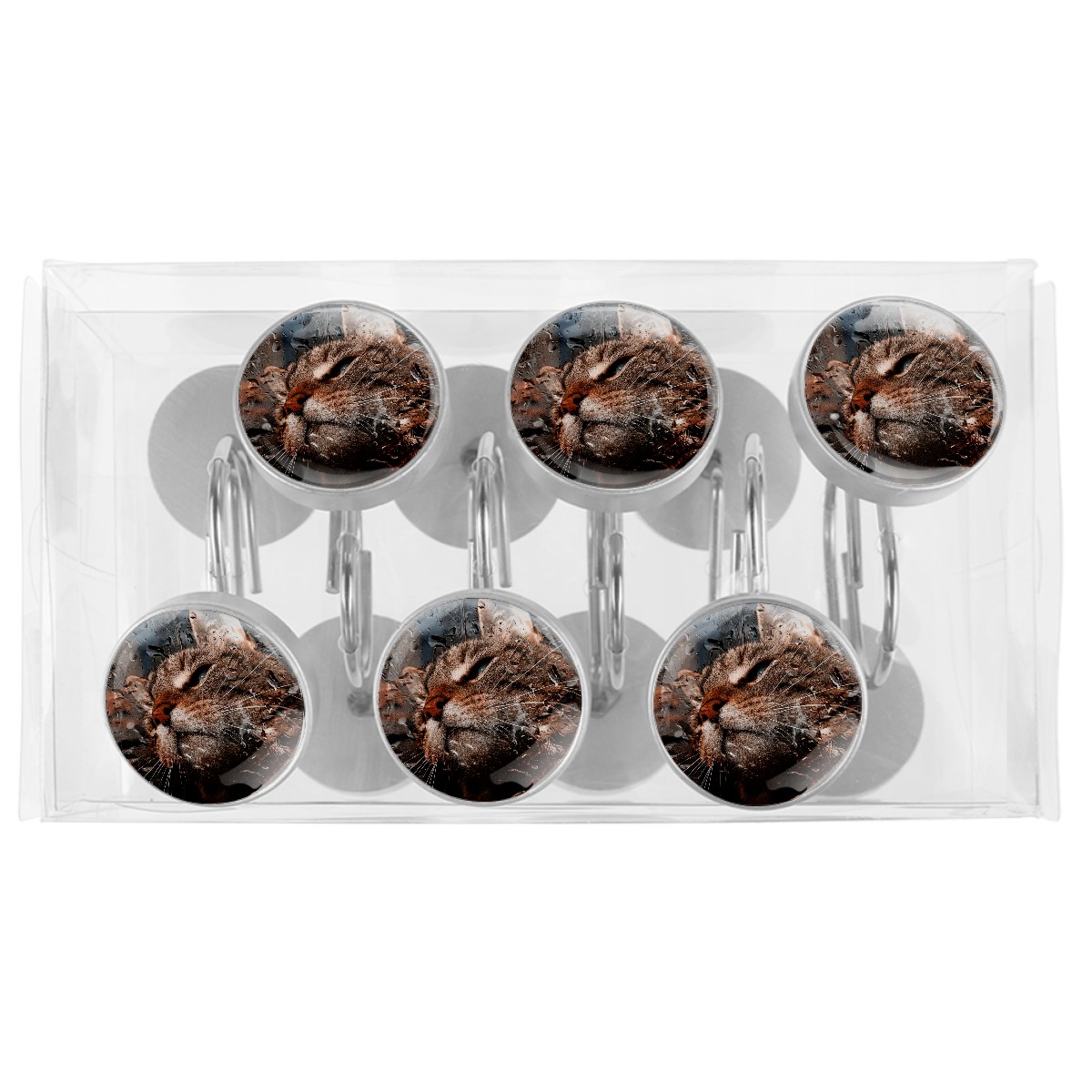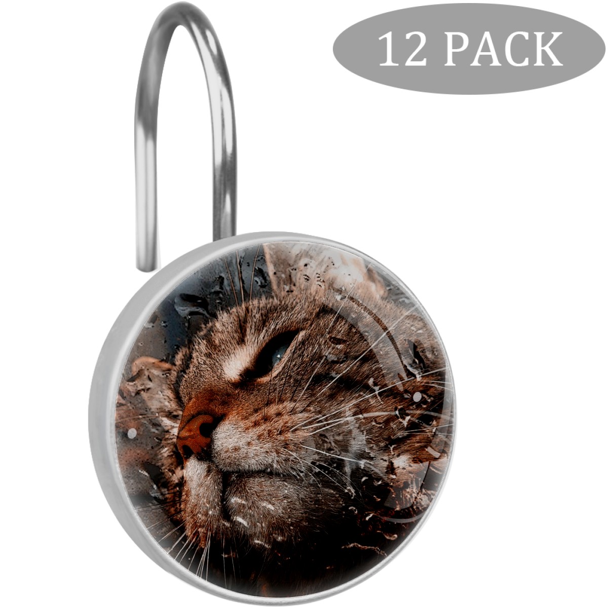 Decorative Shower Curtain Hooks Set of 12 Cat Window Pane View Raindrops Resin Shower Hooks for Curtain Shower Rings for Bathroom Home Hotel Shower Rods