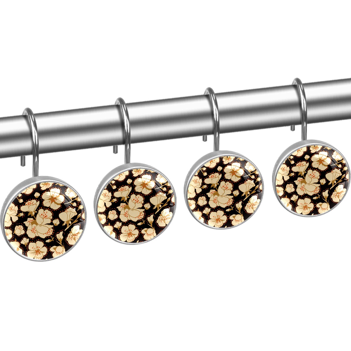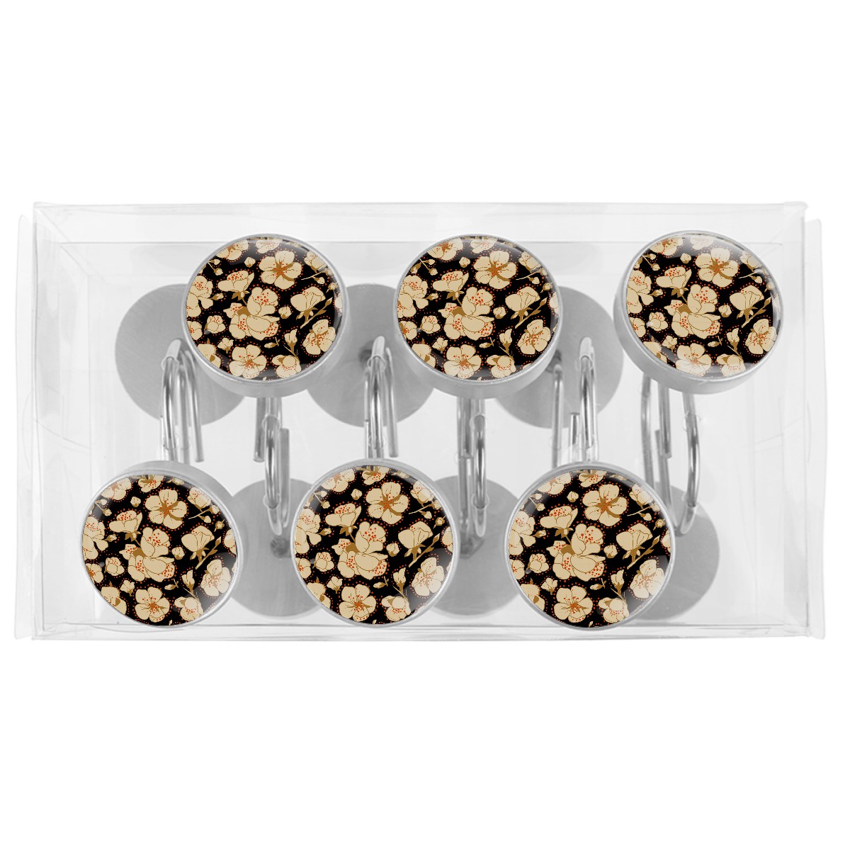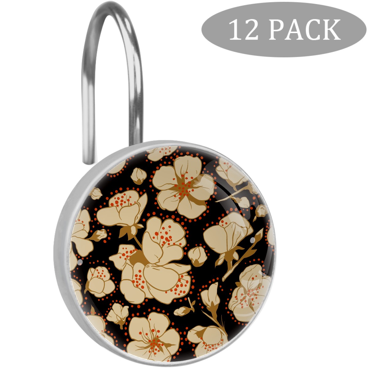 • <p>This set of 12 durable hooks attach easily to any standard shower curtain, liner, and rod system to keep the curtain securely attached and evenly draped. </p><p>&nbsp;</p><p>- Impressively durable with sturdiness to hold up any shower curtain.</p><p>&nbsp;</p><p>- <b>Easy to install</b>: simply thread through existing holes and hang over shower rod.</p><p>&nbsp;</p><p>- Vibrant print on one side which adds style to your shower rod.</p><p>&nbsp;</p><p>- Astoundingly gorgeous design to <b>Decorate your bathroom</b>.</p><p>&nbsp;</p><p><b>Package Including</b></p><p>12*Shower Curtain Hooks</p><p>&nbsp;</p><p><b>Notes</b></p><p>1. Due to the different monitor and light effect, the actual color of the item might be slightly different from the color showed on the pictures. Thank you!</p><p>2. Please allow 2-3cm measuring deviation due to manual measurement.</p>