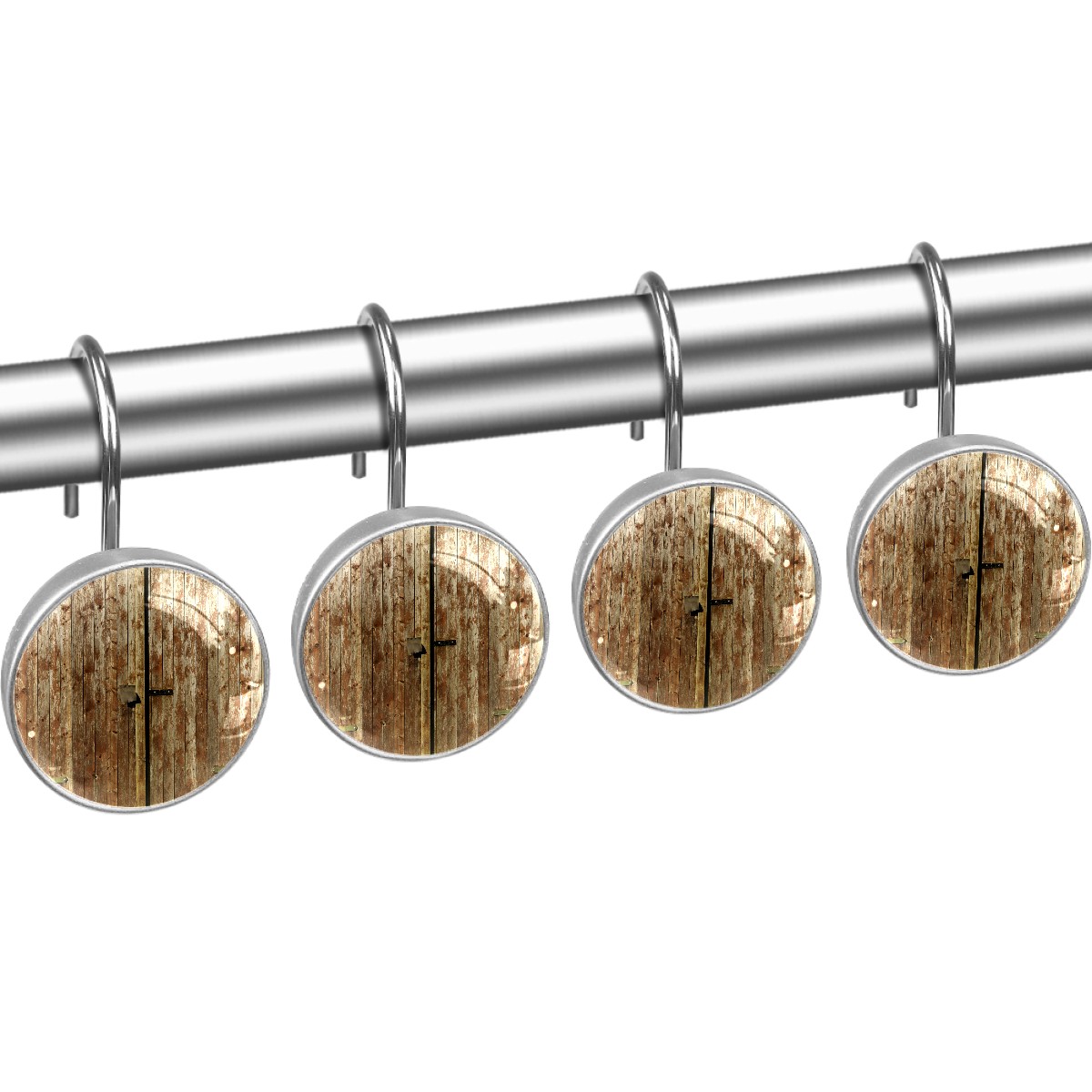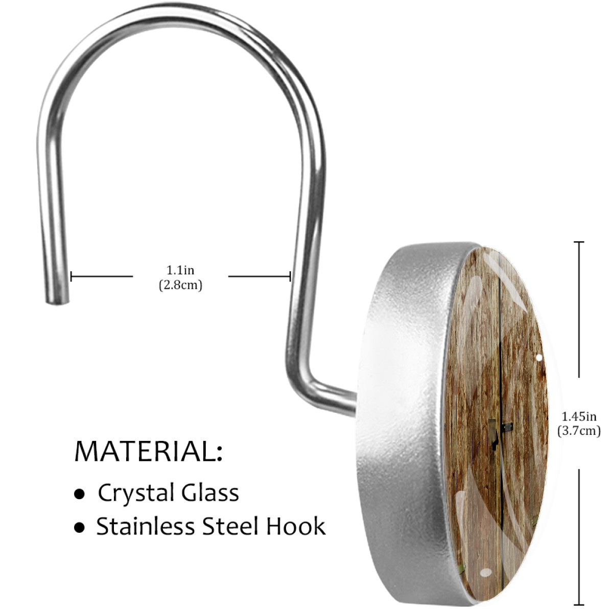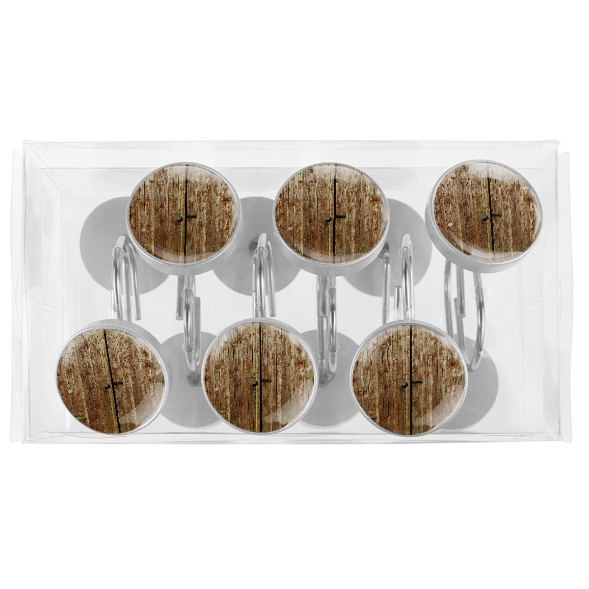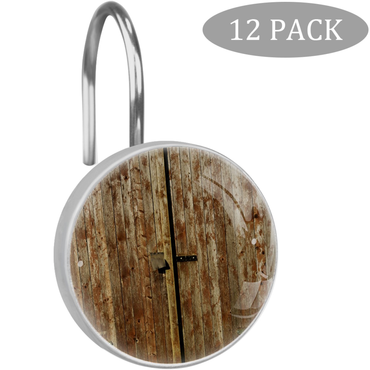 Decorative Shower Curtain Hooks Set of 12 Wooden Boards Resin Shower Hooks for Curtain Shower Rings for Bathroom Home Hotel Shower Rods