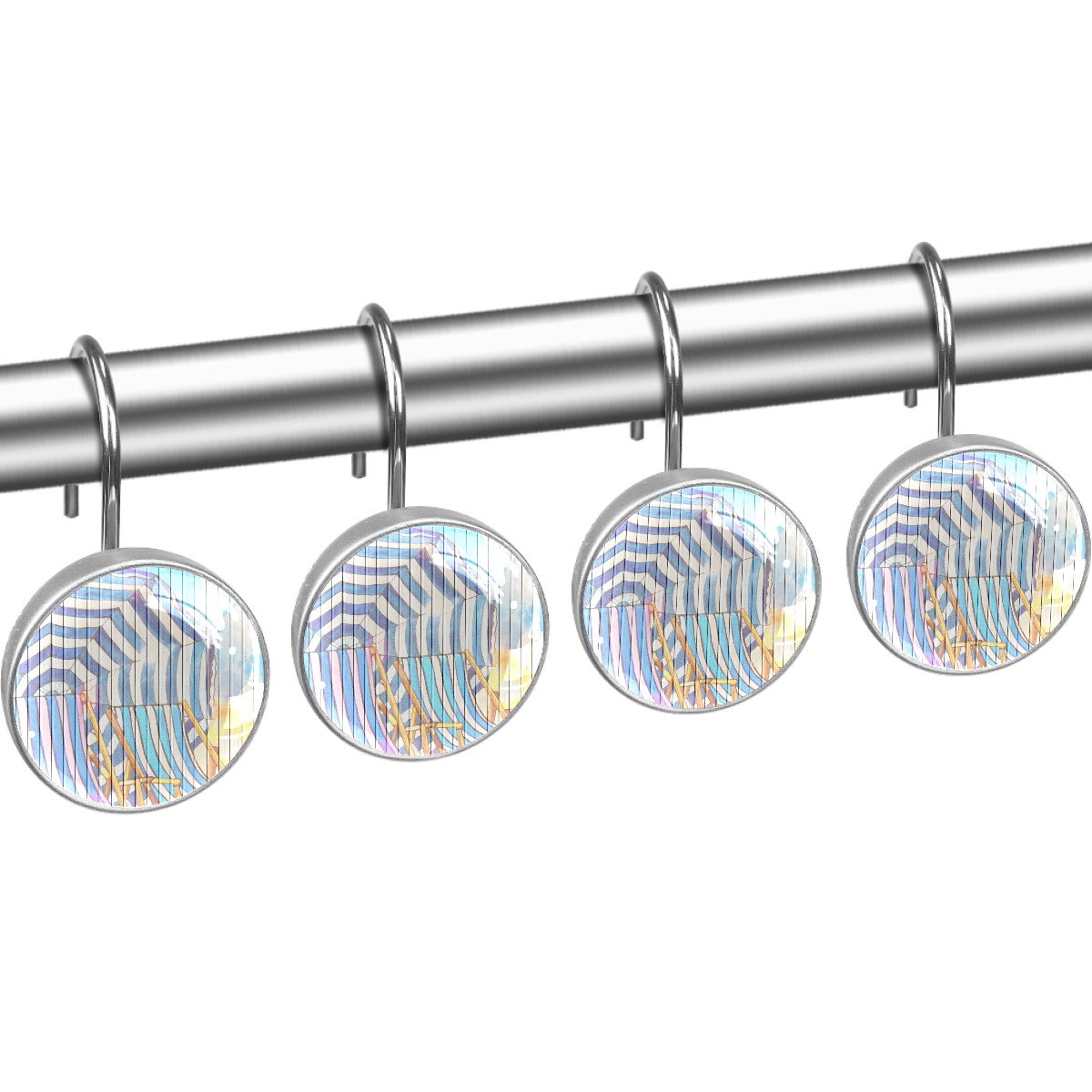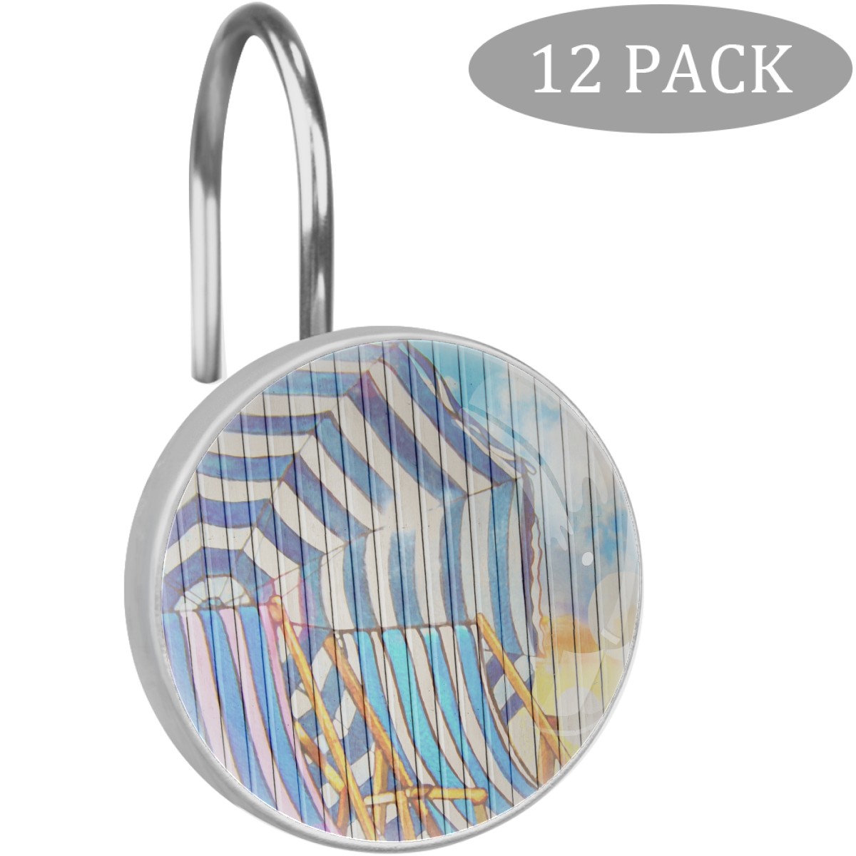 • <p>This set of 12 durable hooks attach easily to any standard shower curtain, liner, and rod system to keep the curtain securely attached and evenly draped. </p><p>&nbsp;</p><p>- Impressively durable with sturdiness to hold up any shower curtain.</p><p>&nbsp;</p><p>- <b>Easy to install</b>: simply thread through existing holes and hang over shower rod.</p><p>&nbsp;</p><p>- Vibrant print on one side which adds style to your shower rod.</p><p>&nbsp;</p><p>- Astoundingly gorgeous design to <b>Decorate your bathroom</b>.</p><p>&nbsp;</p><p><b>Package Including</b></p><p>12*Shower Curtain Hooks</p><p>&nbsp;</p><p><b>Notes</b></p><p>1. Due to the different monitor and light effect, the actual color of the item might be slightly different from the color showed on the pictures. Thank you!</p><p>2. Please allow 2-3cm measuring deviation due to manual measurement.</p>