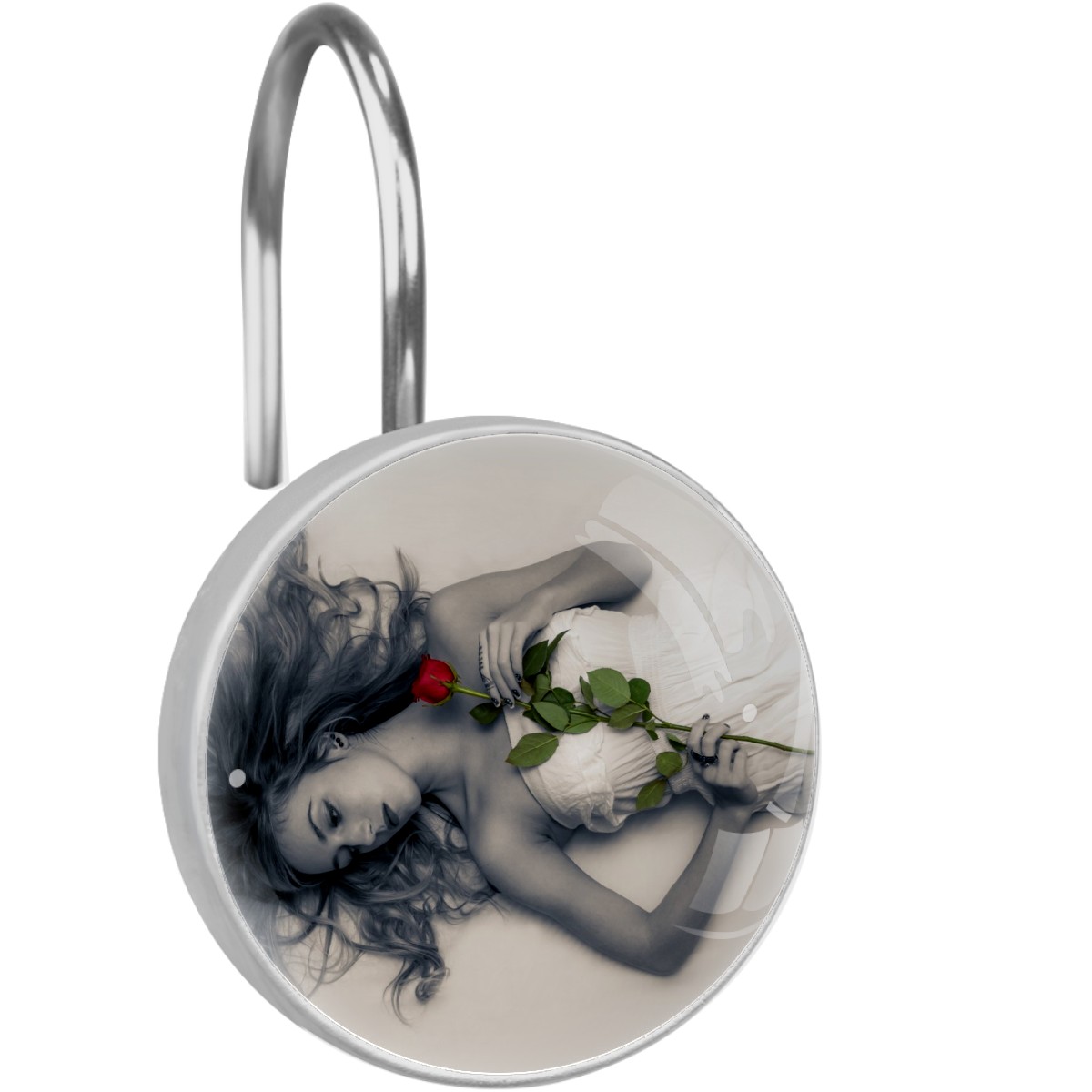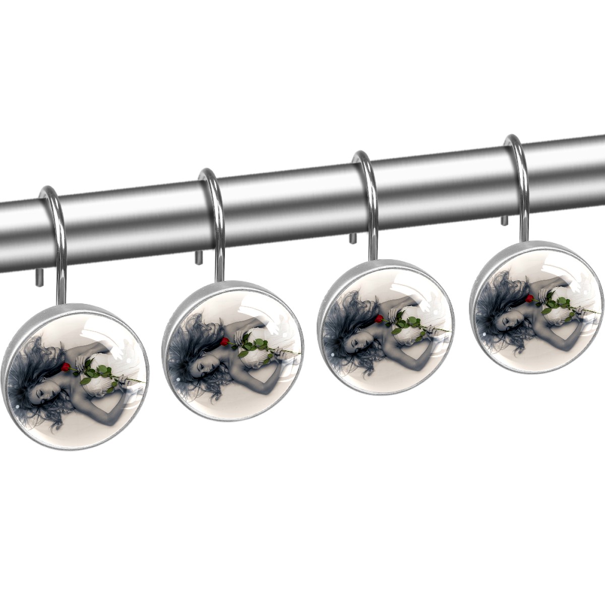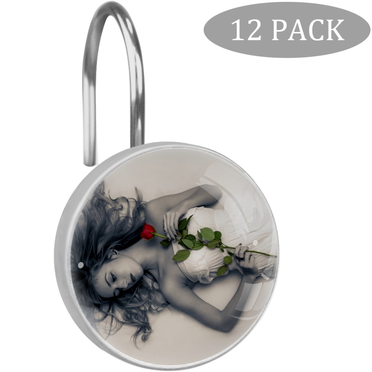 Decorative Shower Curtain Hooks Set of 12 Woman Model Young Rose Resin Shower Hooks for Curtain Shower Rings for Bathroom Home Hotel Shower Rods