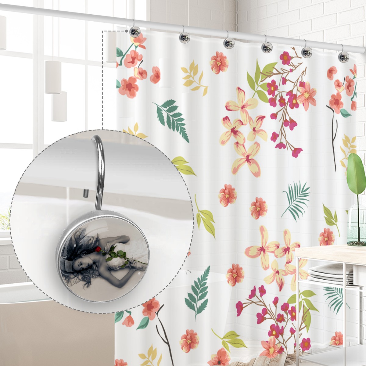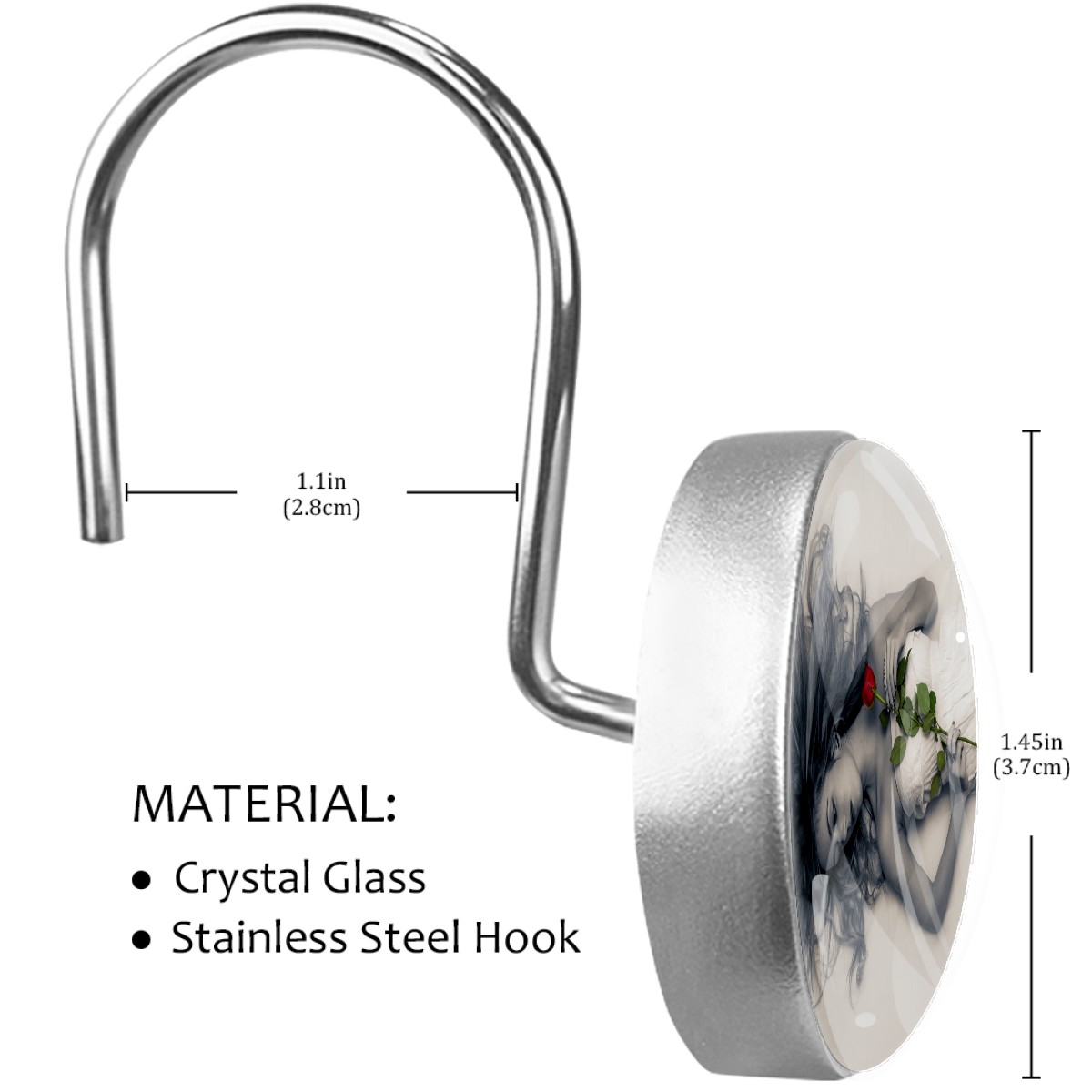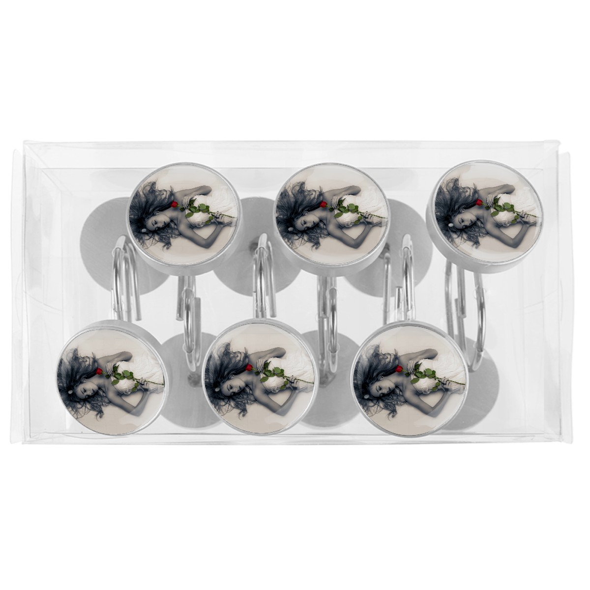 Decorative Shower Curtain Hooks Set of 12 Woman Model Young Rose Resin Shower Hooks for Curtain Shower Rings for Bathroom Home Hotel Shower Rods