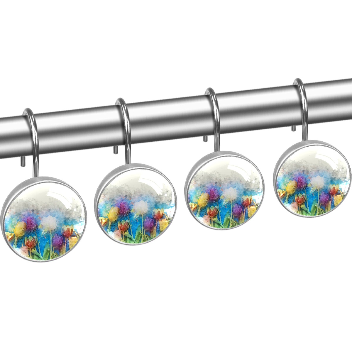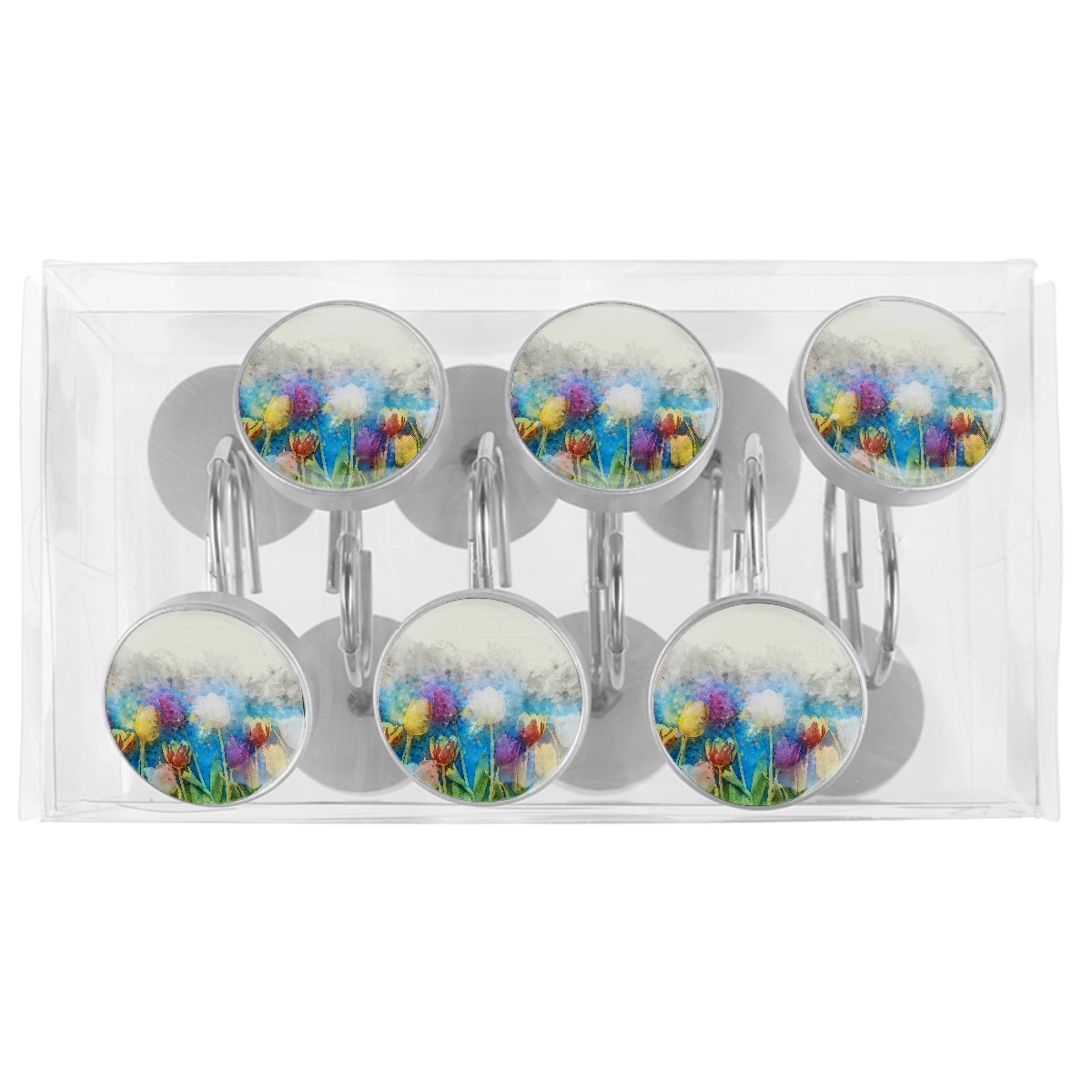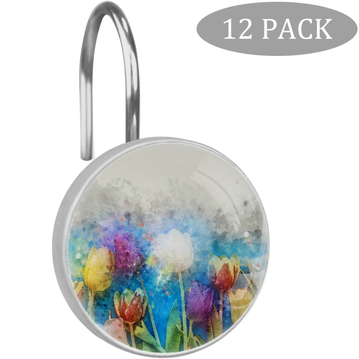 • <p>This set of 12 durable hooks attach easily to any standard shower curtain, liner, and rod system to keep the curtain securely attached and evenly draped. </p><p>&nbsp;</p><p>- Impressively durable with sturdiness to hold up any shower curtain.</p><p>&nbsp;</p><p>- <b>Easy to install</b>: simply thread through existing holes and hang over shower rod.</p><p>&nbsp;</p><p>- Vibrant print on one side which adds style to your shower rod.</p><p>&nbsp;</p><p>- Astoundingly gorgeous design to <b>Decorate your bathroom</b>.</p><p>&nbsp;</p><p><b>Package Including</b></p><p>12*Shower Curtain Hooks</p><p>&nbsp;</p><p><b>Notes</b></p><p>1. Due to the different monitor and light effect, the actual color of the item might be slightly different from the color showed on the pictures. Thank you!</p><p>2. Please allow 2-3cm measuring deviation due to manual measurement.</p>