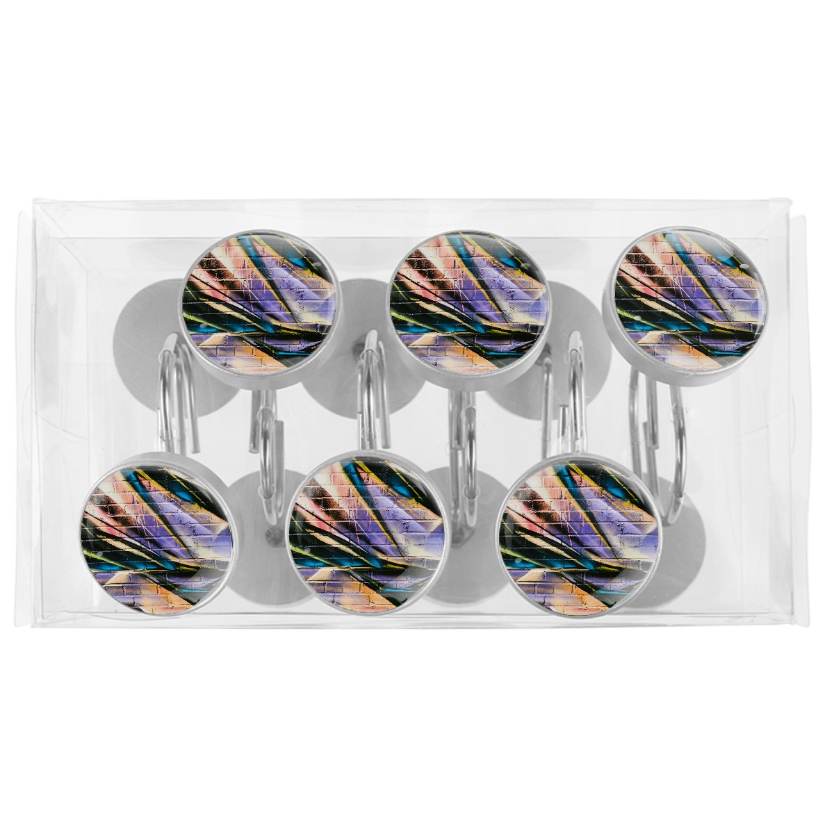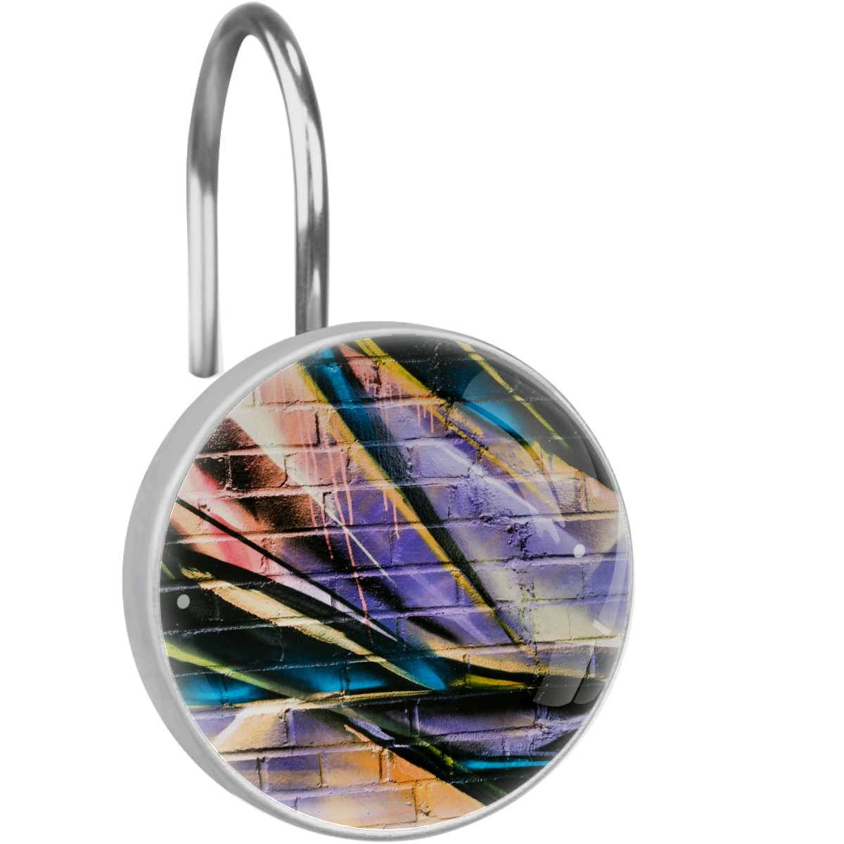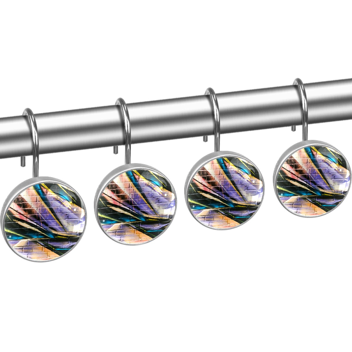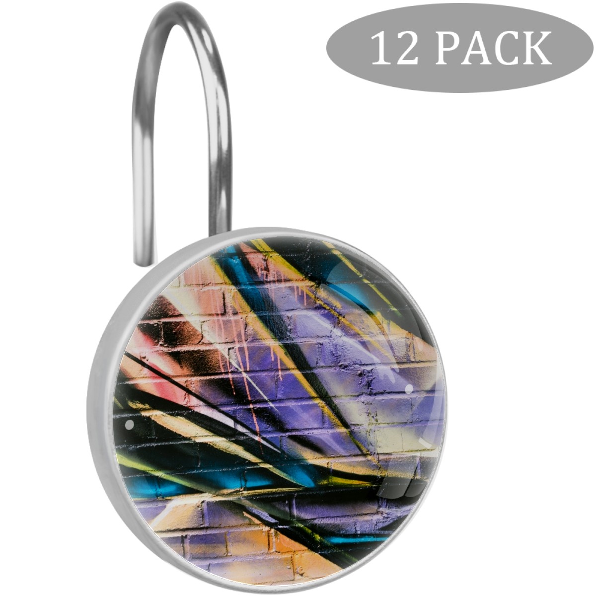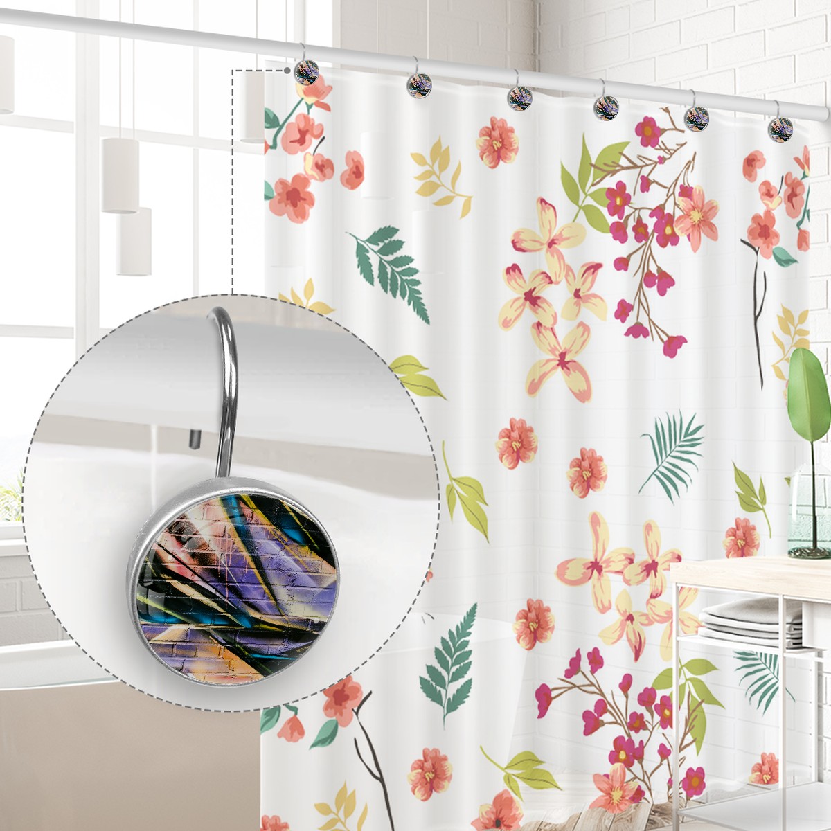 Decorative Shower Curtain Hooks Set of 12 Wall Graffiti Resin Shower Hooks for Curtain Shower Rings for Bathroom Home Hotel Shower Rods