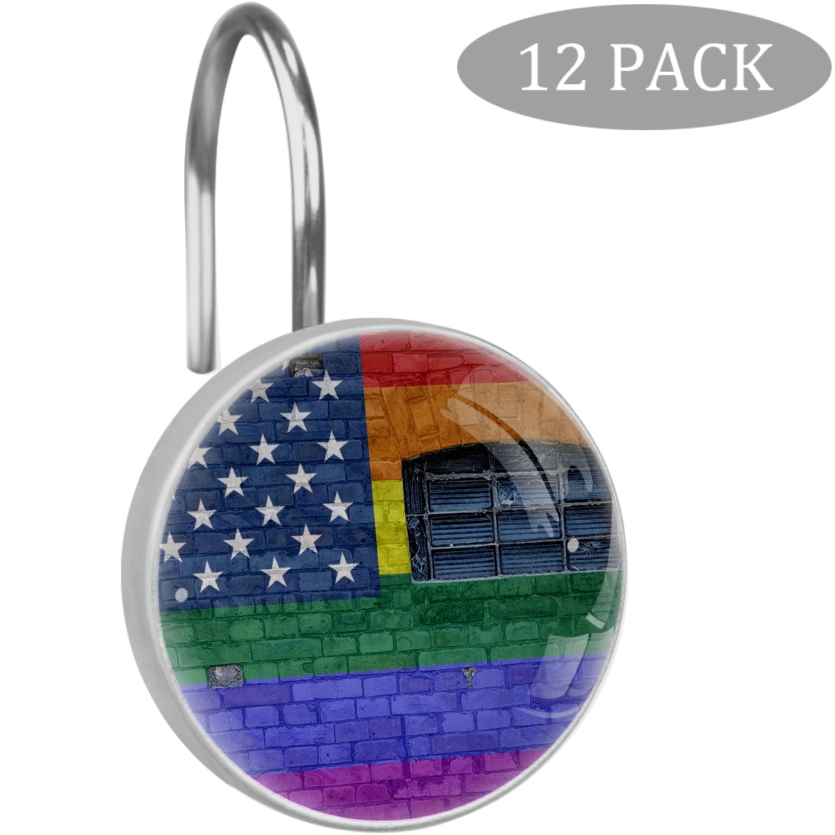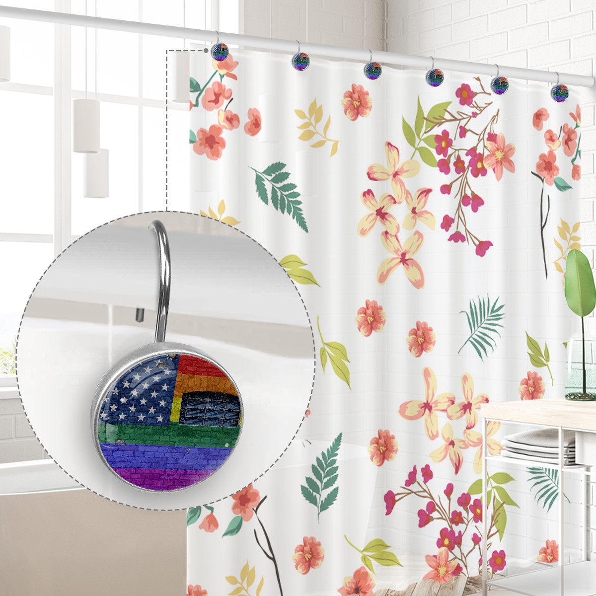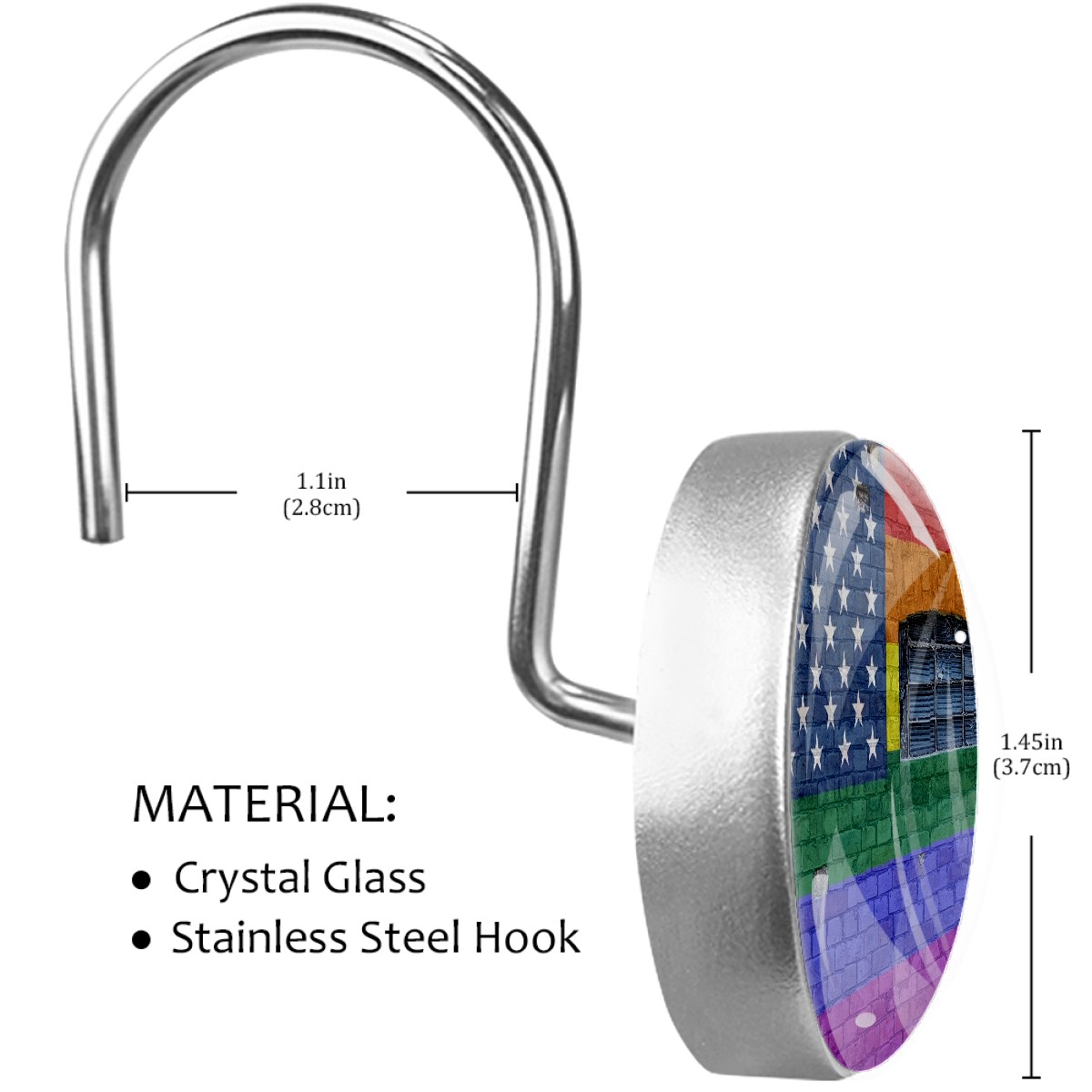 Decorative Shower Curtain Hooks Set of 12 Wall Flag Art Resin Shower Hooks for Curtain Shower Rings for Bathroom Home Hotel Shower Rods