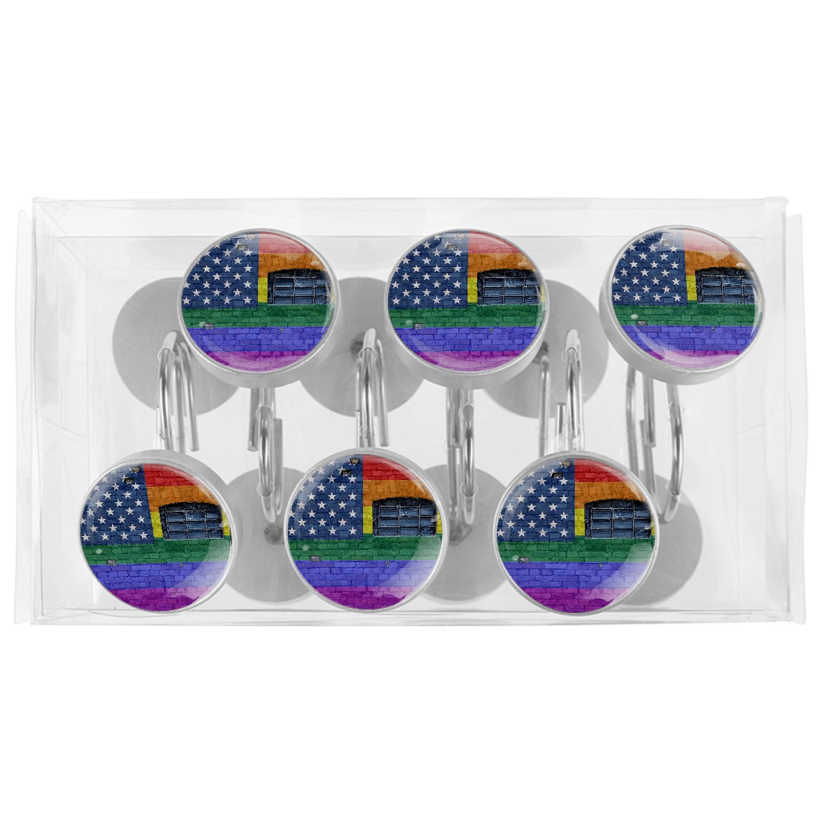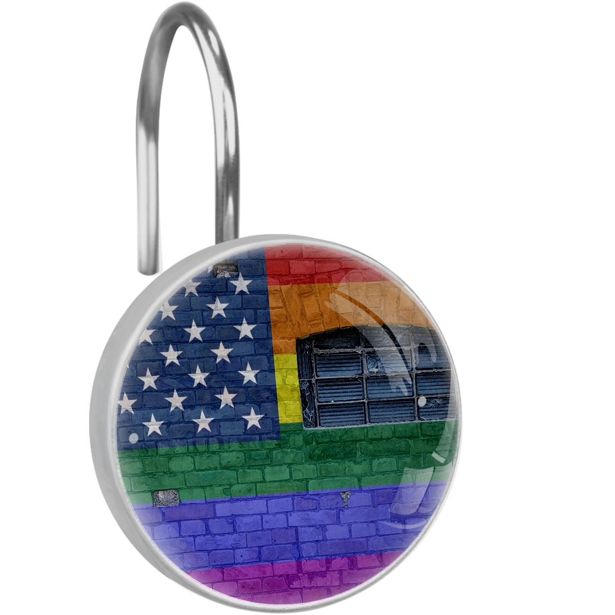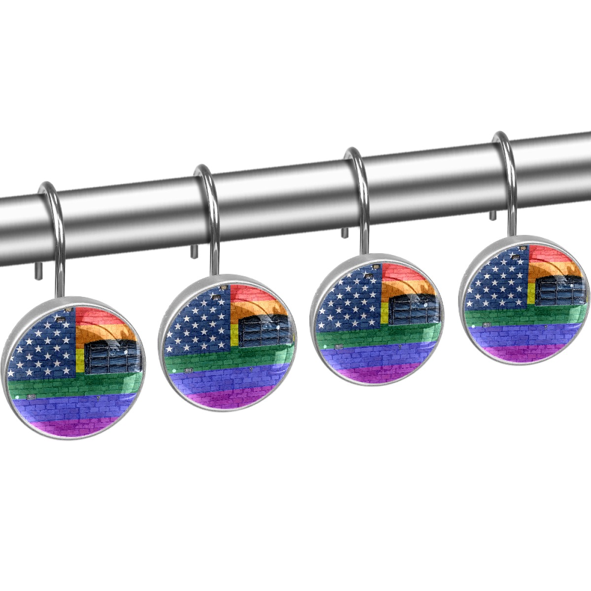 Decorative Shower Curtain Hooks Set of 12 Wall Flag Art Resin Shower Hooks for Curtain Shower Rings for Bathroom Home Hotel Shower Rods