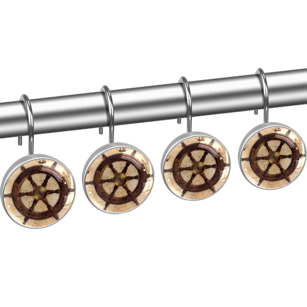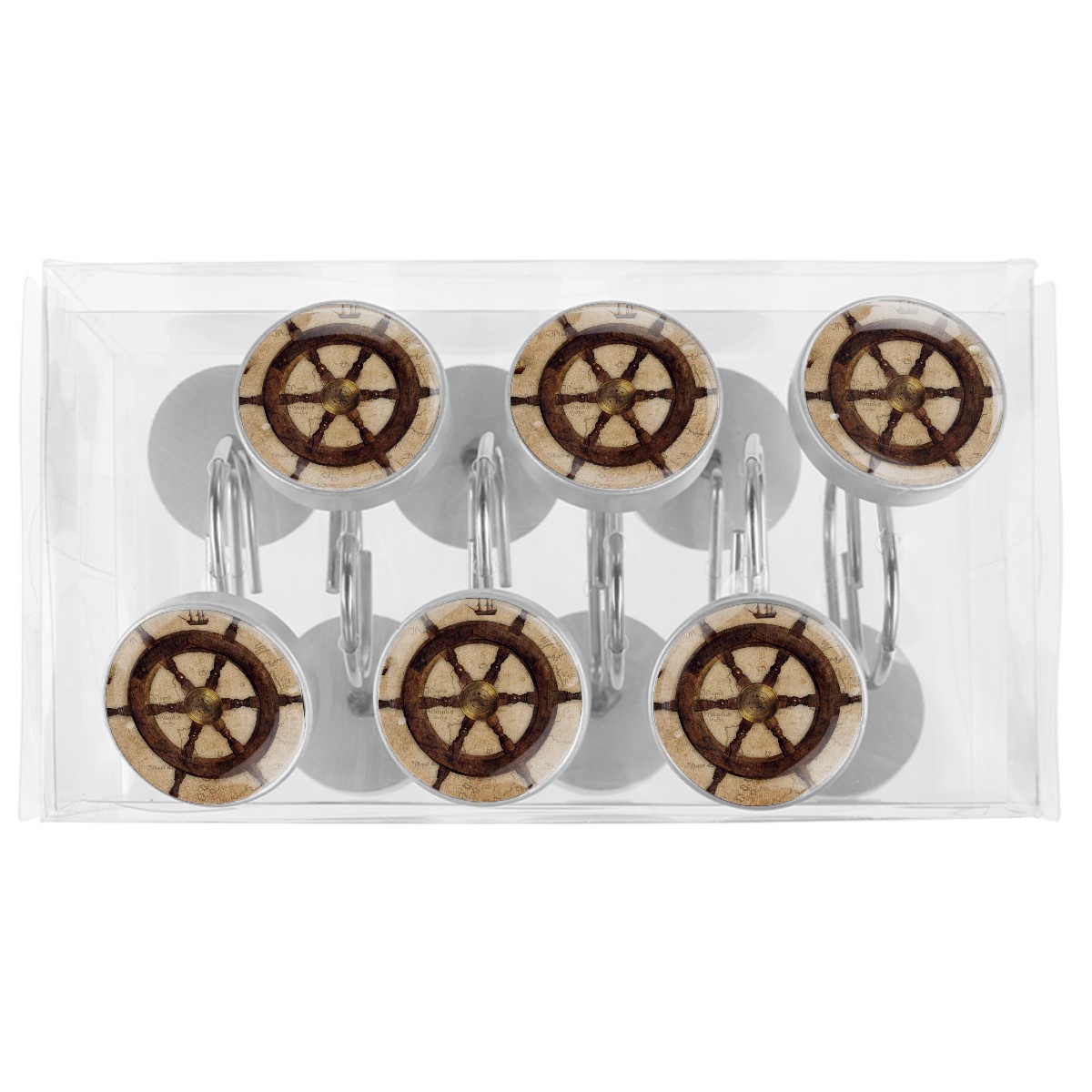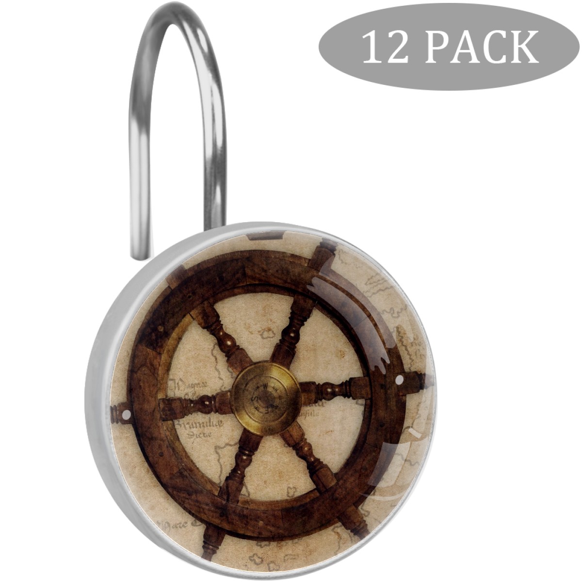 Decorative Shower Curtain Hooks Set of 12 Vintage Helm Sextant Sailing Ships Resin Shower Hooks for Curtain Shower Rings for Bathroom Home Hotel Shower Rods