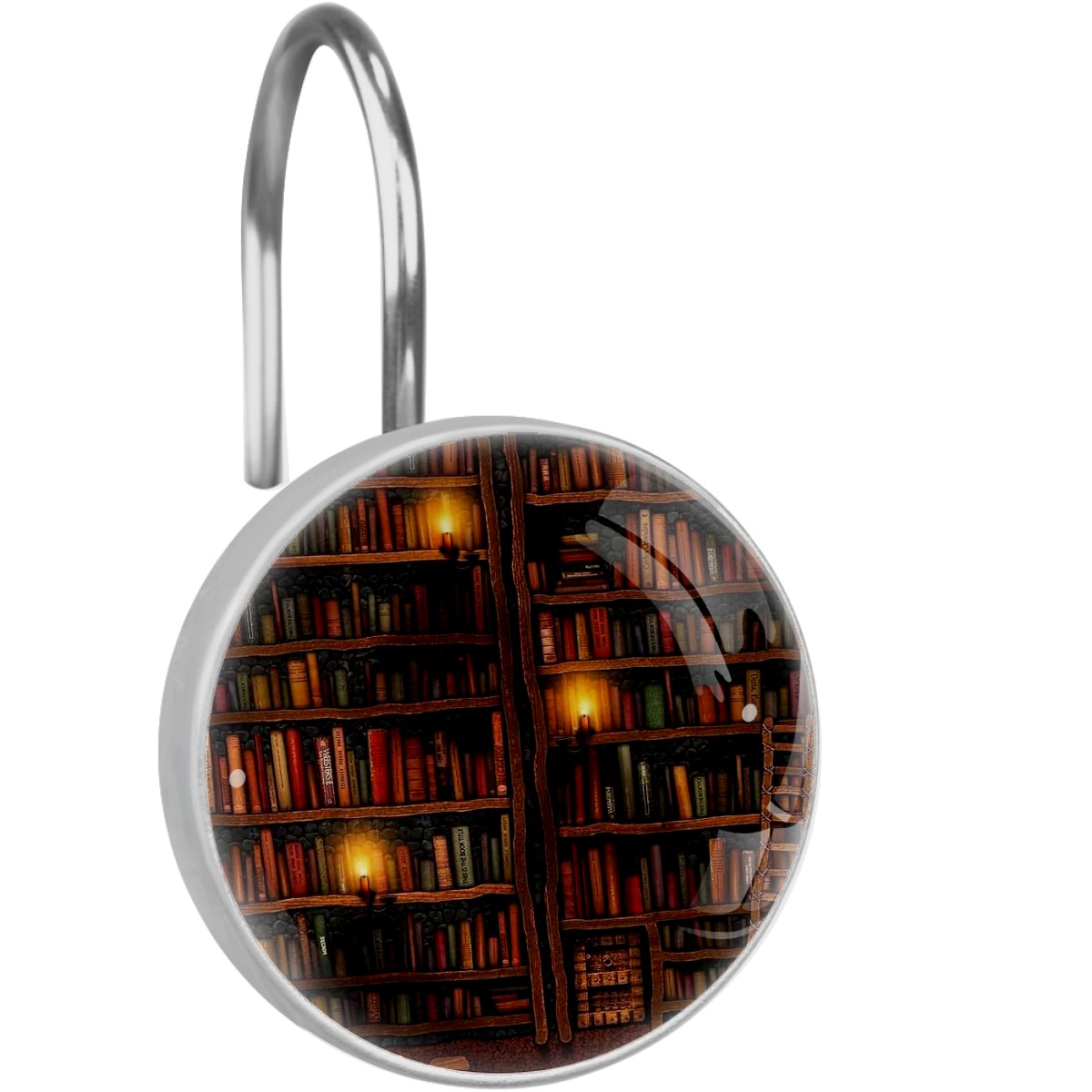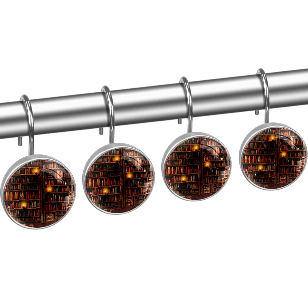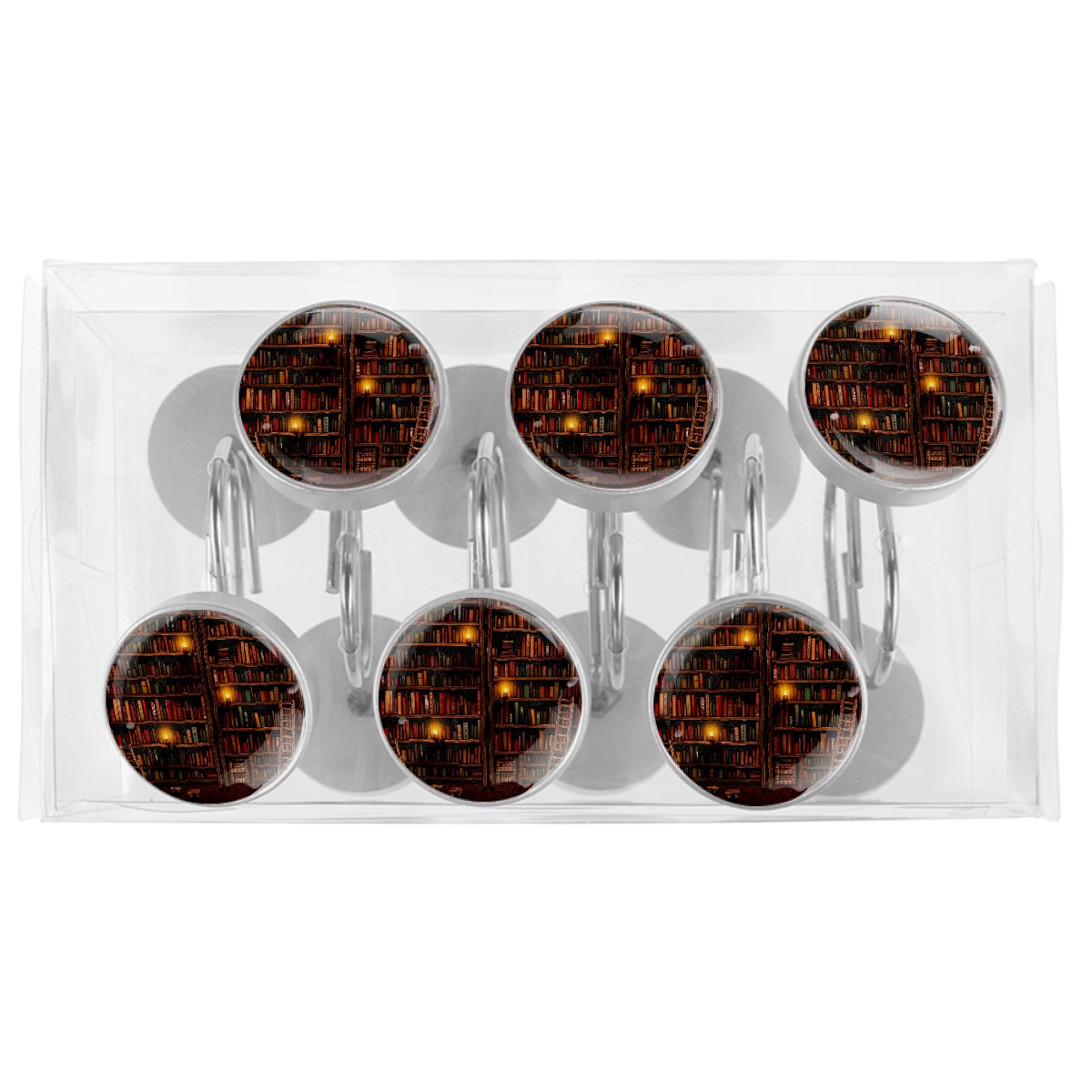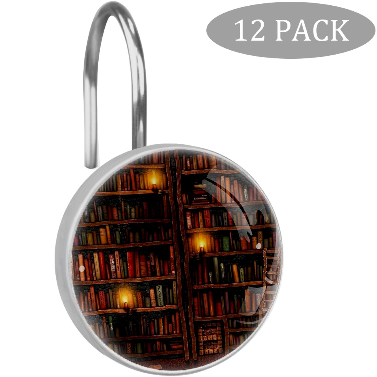 Decorative Shower Curtain Hooks Set of 12 Vintage Library Books Shelf Resin Shower Hooks for Curtain Shower Rings for Bathroom Home Hotel Shower Rods