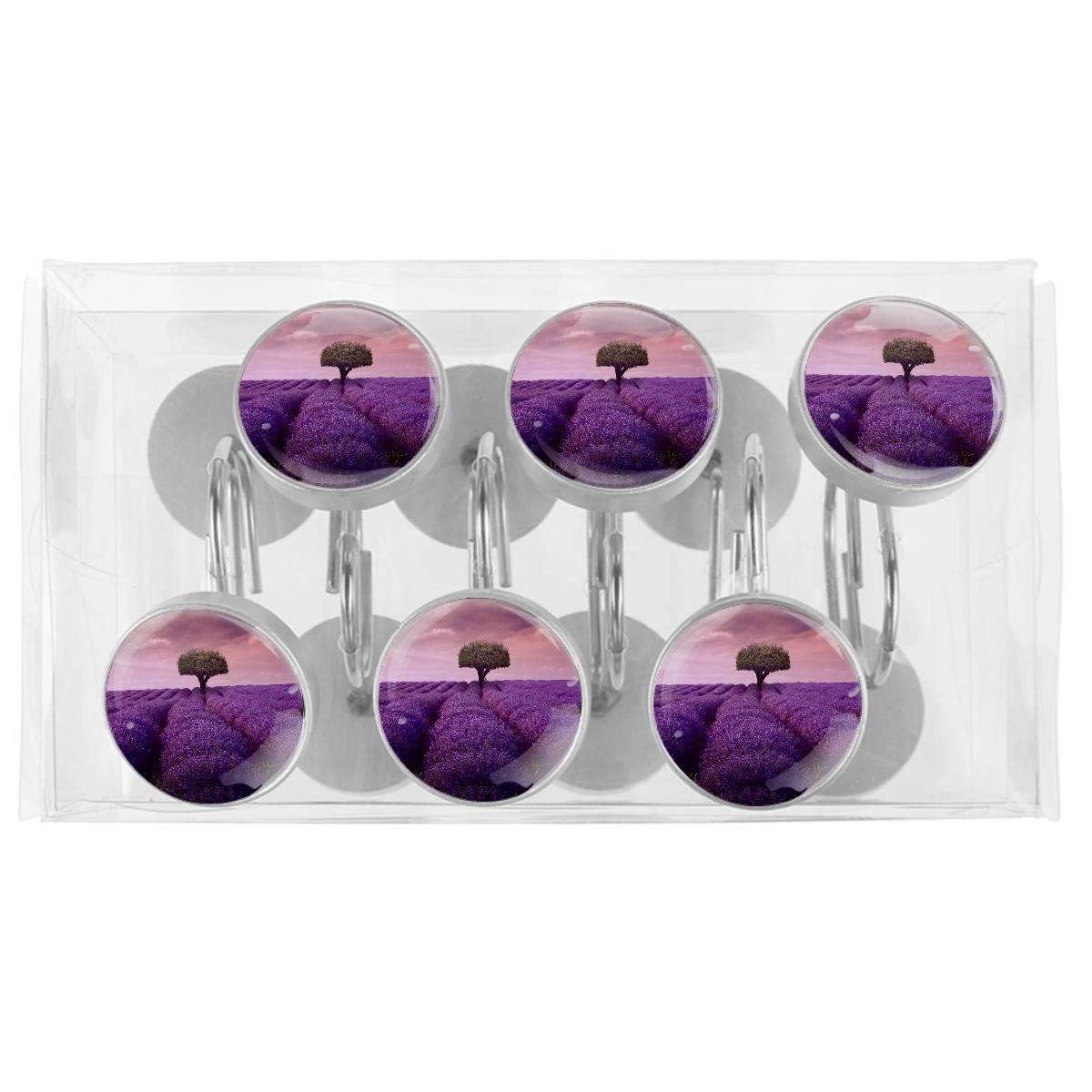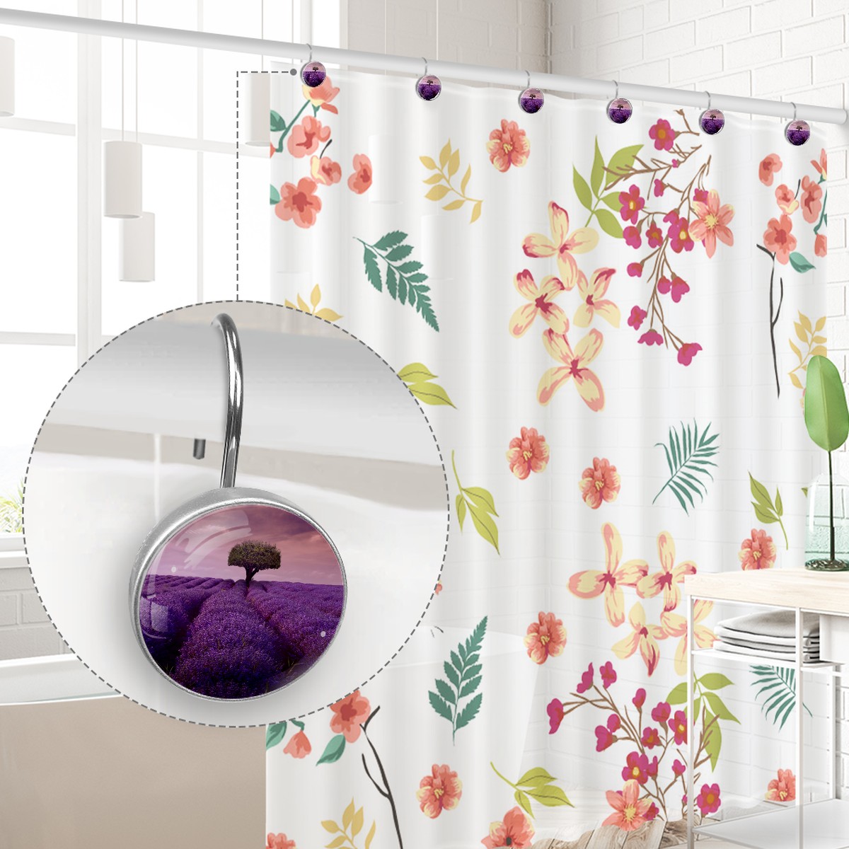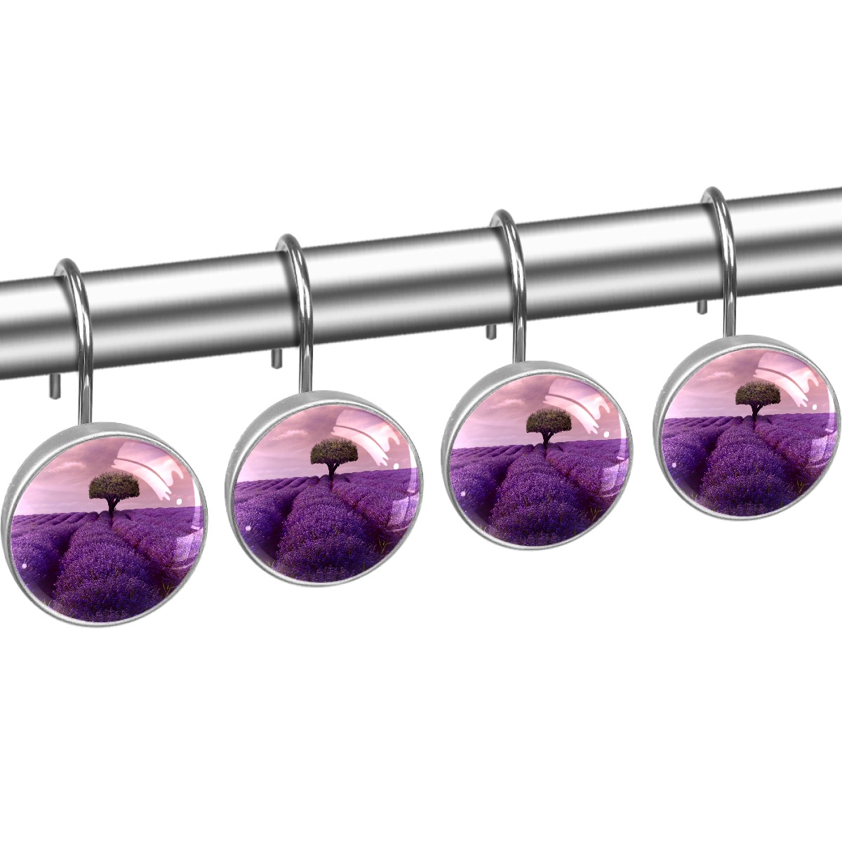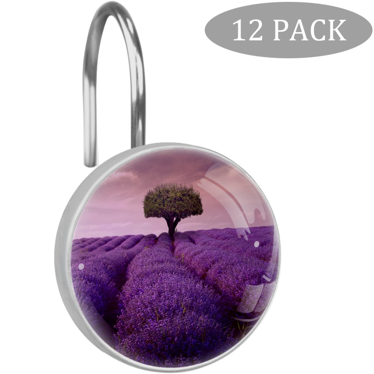 Decorative Shower Curtain Hooks Set of 12 Tree Lavender Lonely Artwork Art Resin Shower Hooks for Curtain Shower Rings for Bathroom Home Hotel Shower Rods
