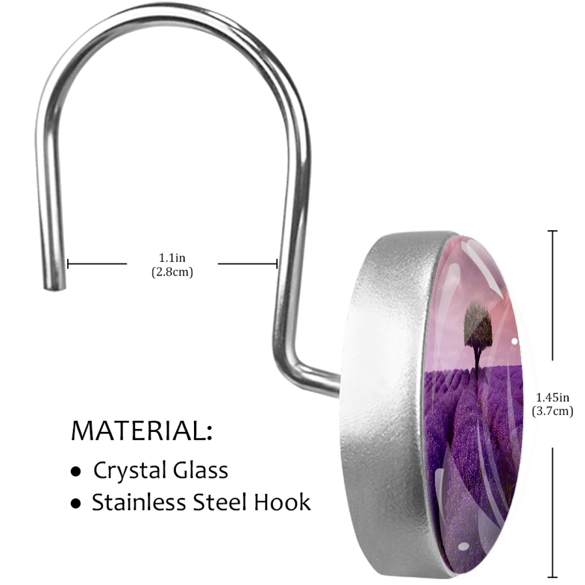 <p>This set of 12 durable hooks attach easily to any standard shower curtain, liner, and rod system to keep the curtain securely attached and evenly draped. </p><p>&nbsp;</p><p>- Impressively durable with sturdiness to hold up any shower curtain.</p><p>&nbsp;</p><p>- <b>Easy to install</b>: simply thread through existing holes and hang over shower rod.</p><p>&nbsp;</p><p>- Vibrant print on one side which adds style to your shower rod.</p><p>&nbsp;</p><p>- Astoundingly gorgeous design to <b>Decorate your bathroom</b>.</p><p>&nbsp;</p><p><b>Package Including</b></p><p>12*Shower Curtain Hooks</p><p>&nbsp;</p><p><b>Notes</b></p><p>1. Due to the different monitor and light effect, the actual color of the item might be slightly different from the color showed on the pictures. Thank you!</p><p>2. Please allow 2-3cm measuring deviation due to manual measurement.</p>