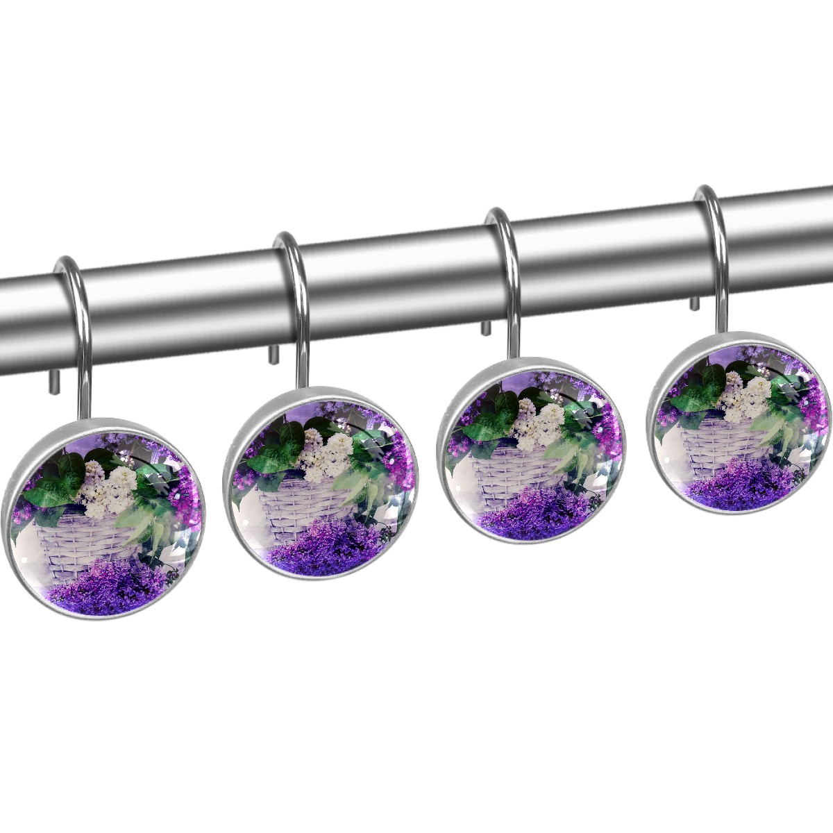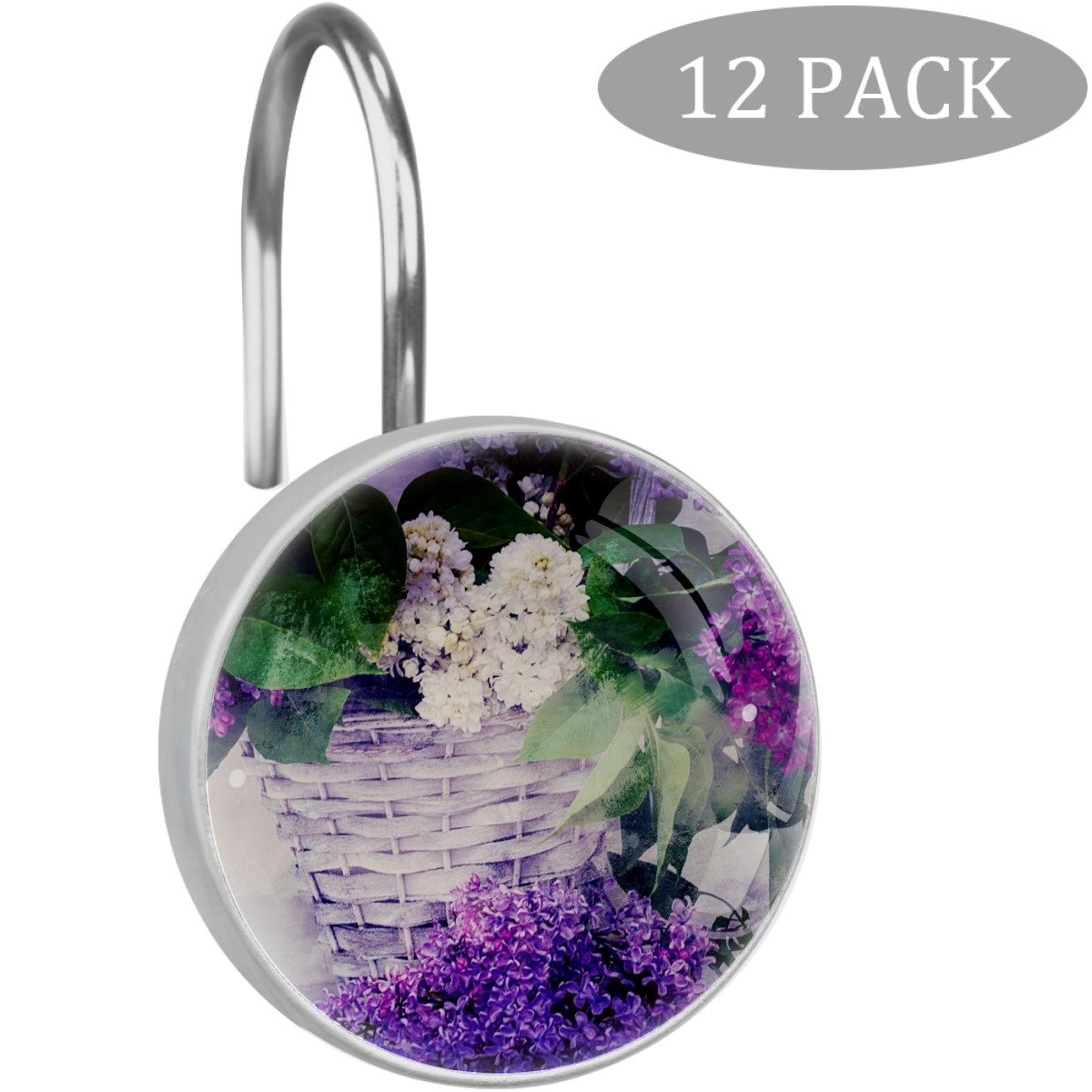 Decorative Shower Curtain Hooks Set of 12 Texture Background Lilac Resin Shower Hooks for Curtain Shower Rings for Bathroom Home Hotel Shower Rods